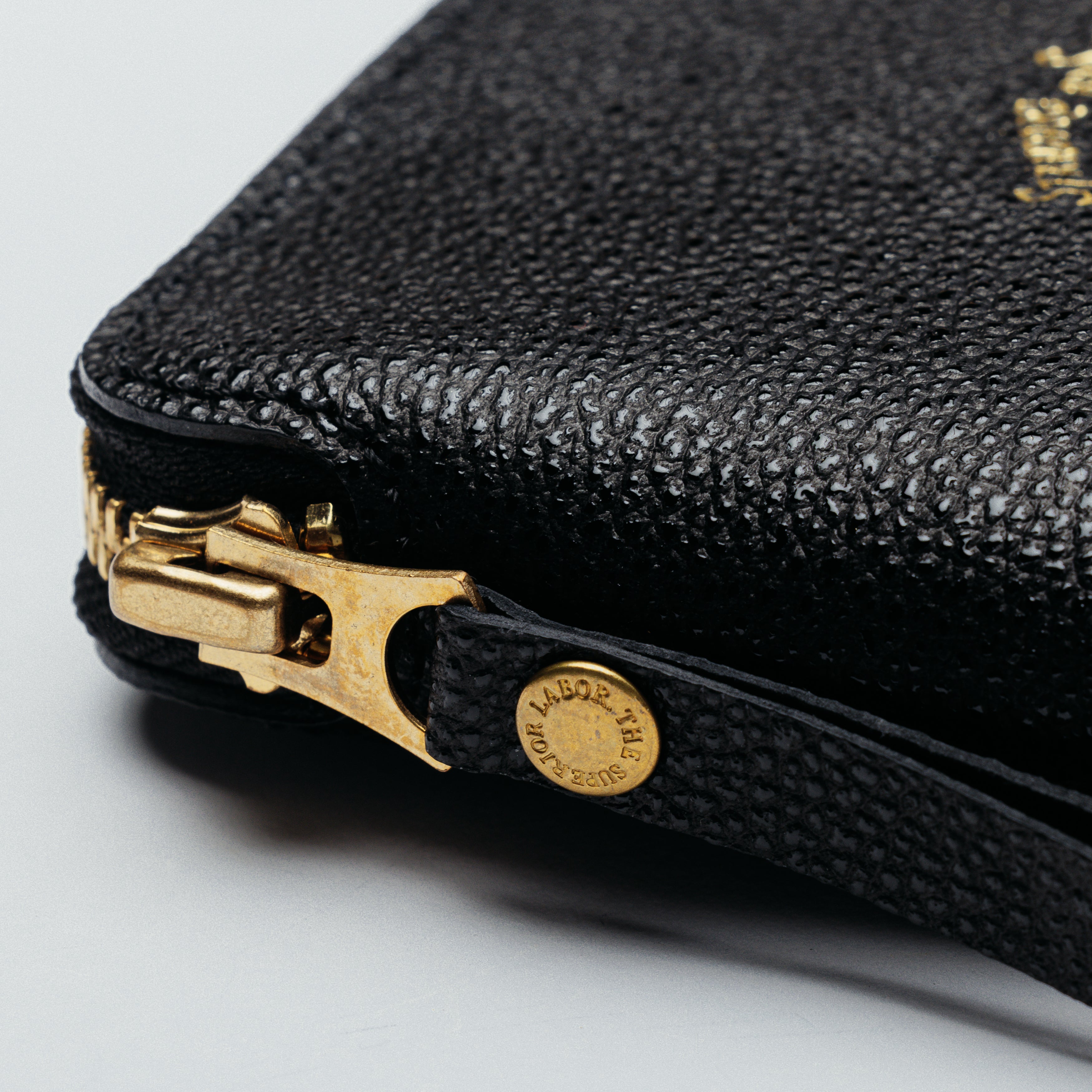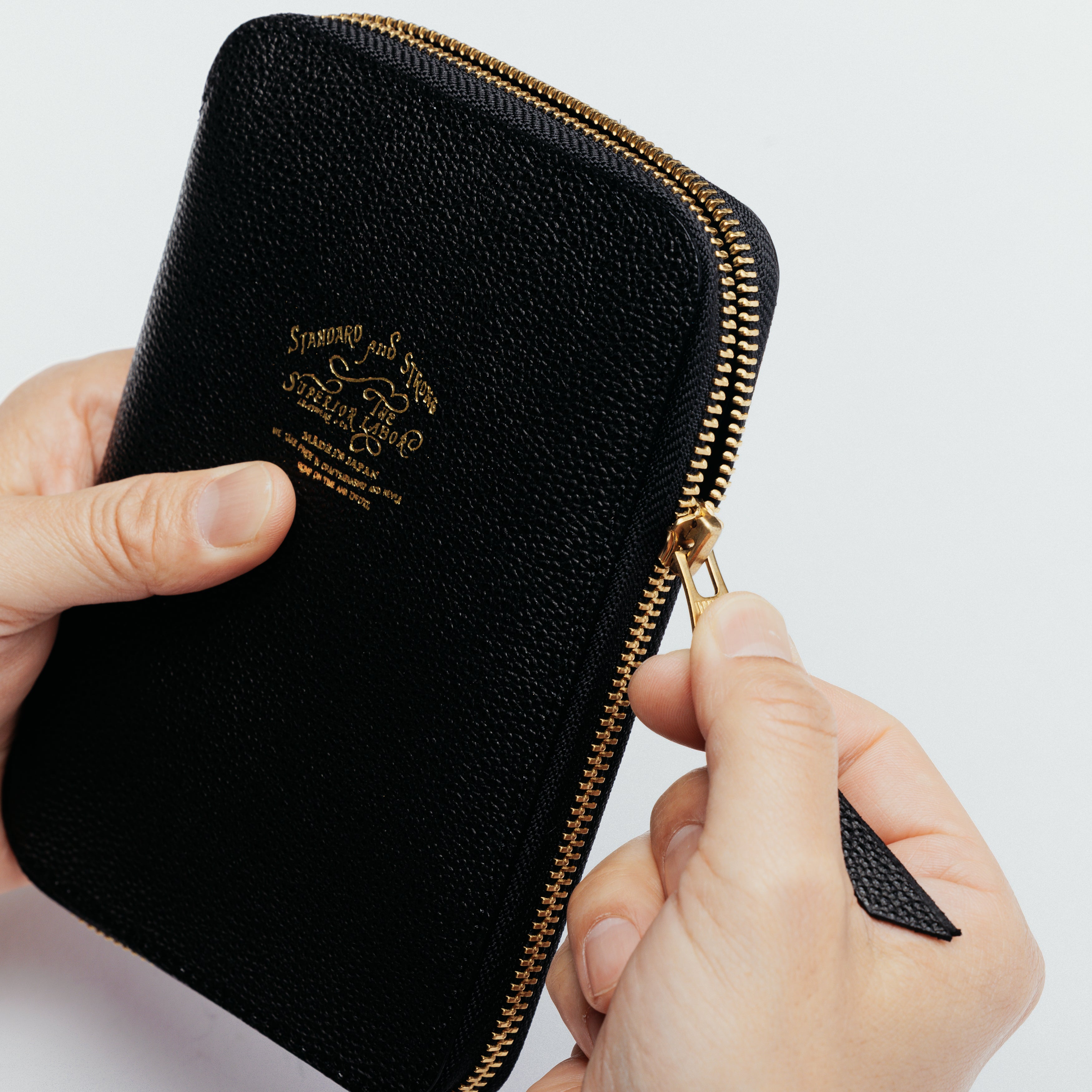 This leather is made from Japanese black cattle skin and finished with traditional white tanning and lacquer coating, which is known as the black diamond of leather.