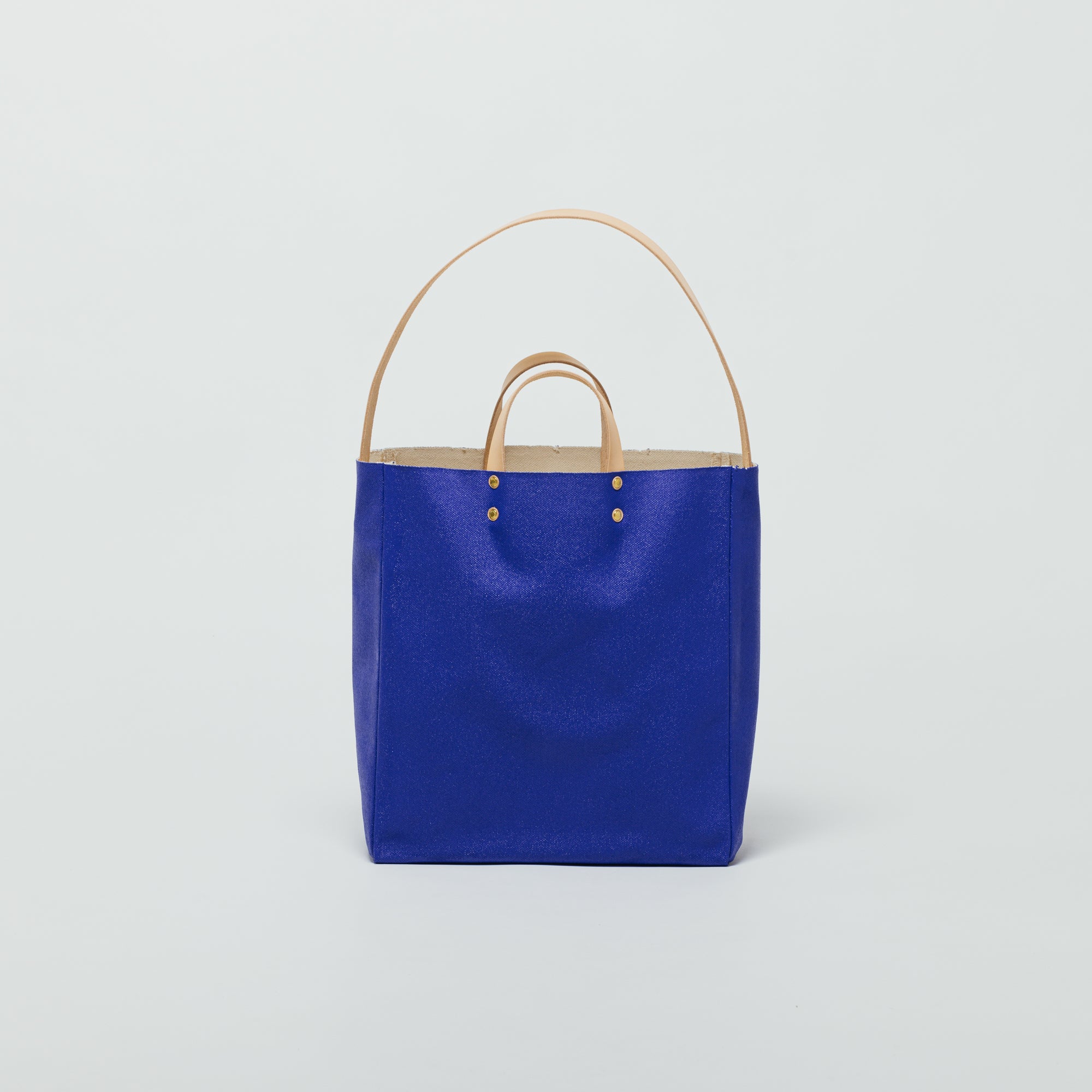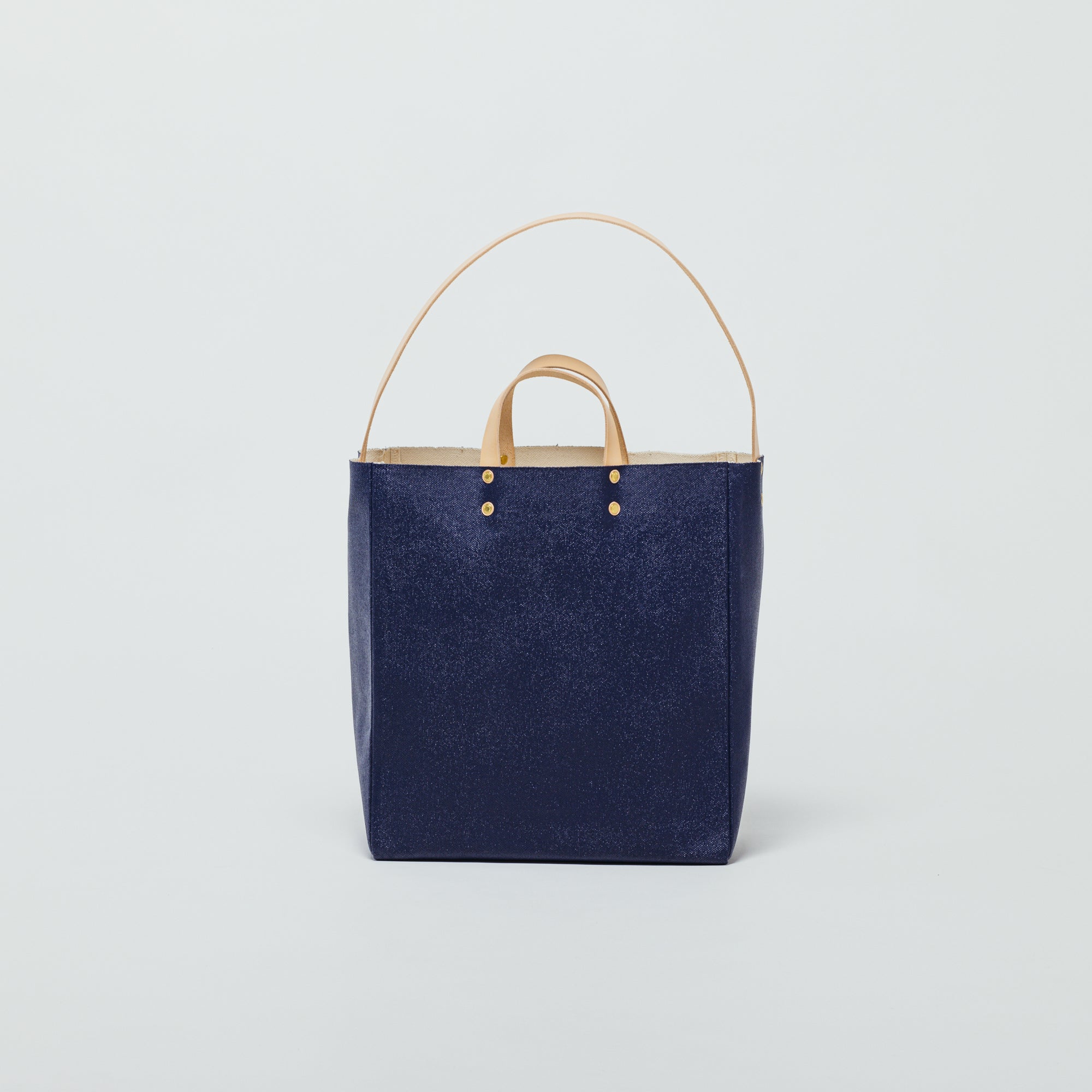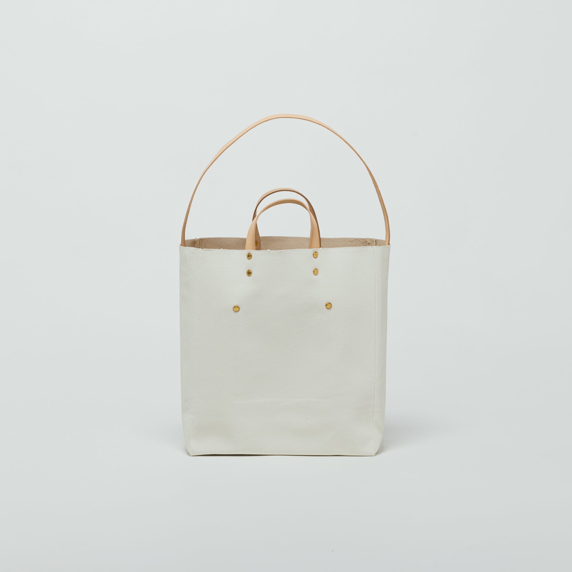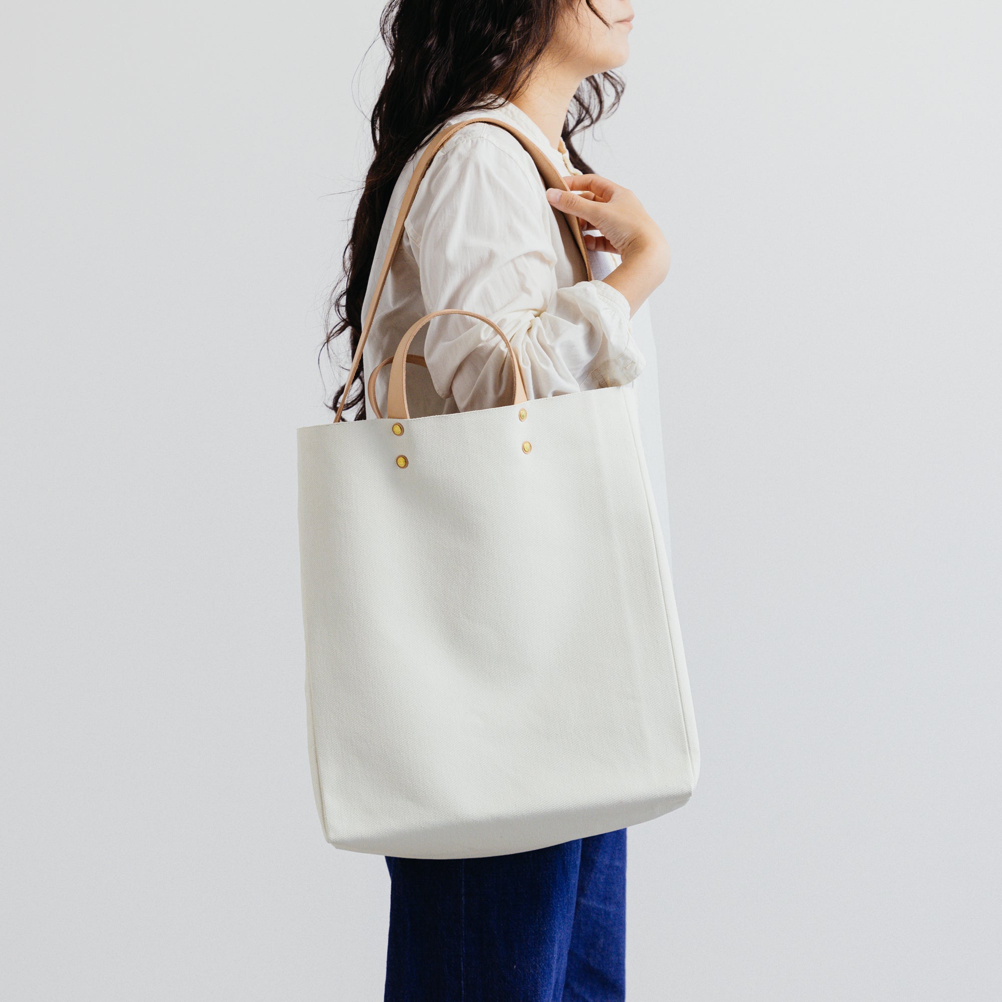 The shoulder strap has no metal fittings and can be tucked inside to carry it as a clean-looking tote bag, or pulled out for use as a shoulder bag.