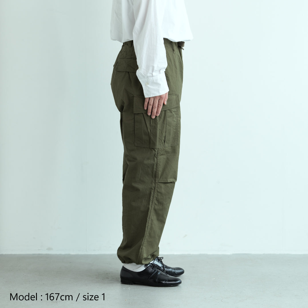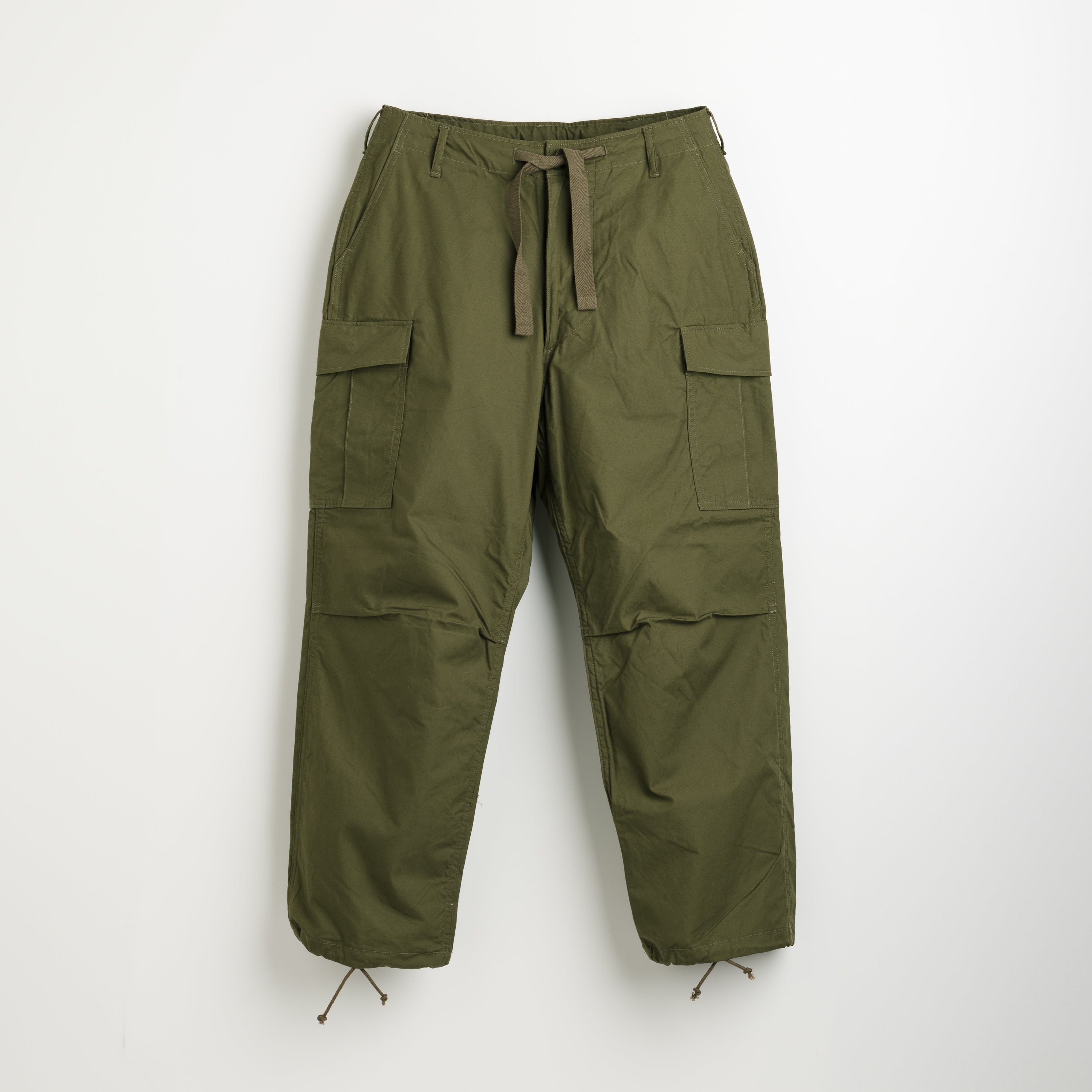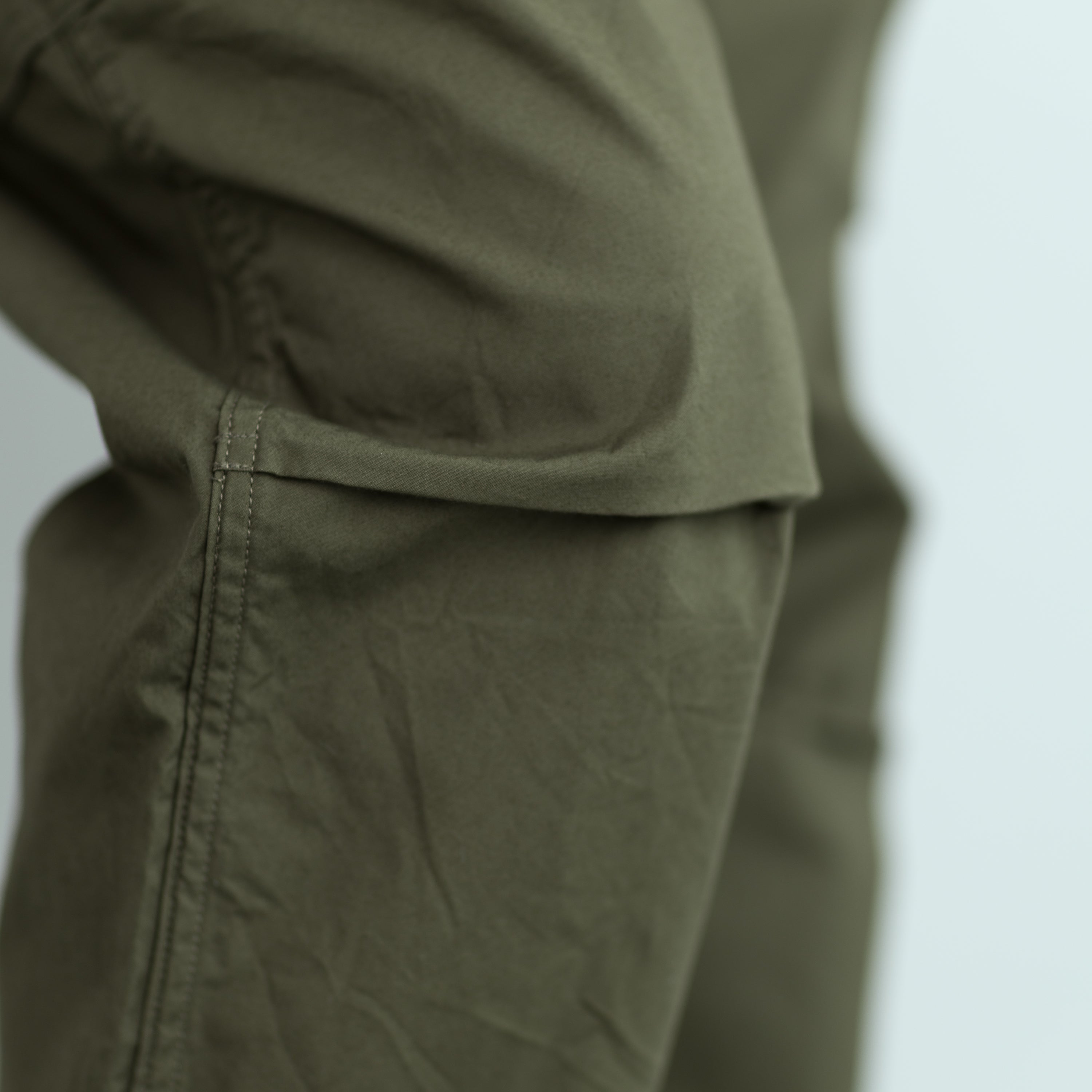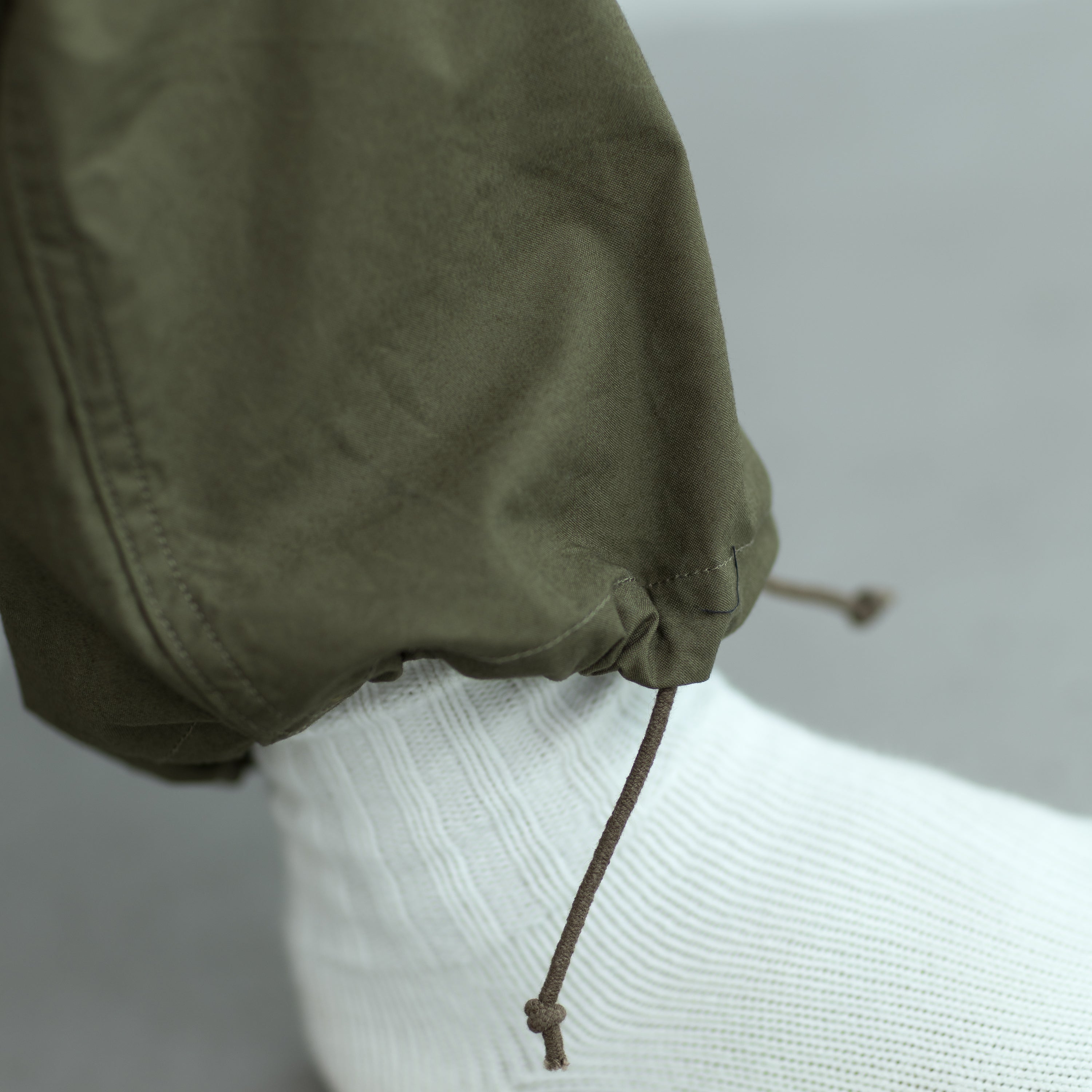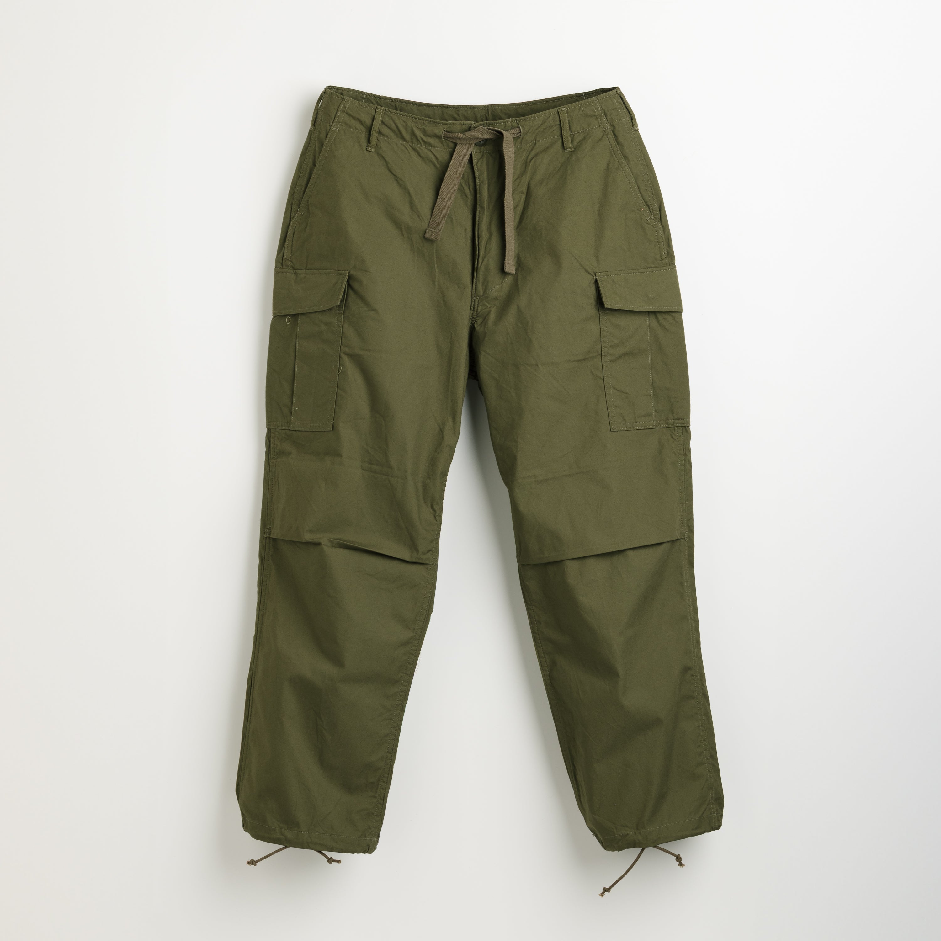 Based on the 1960s jungle fatigue pants, we created a TSL-style cargo pant by removing unnecessary parts and adding a drawcord for easy, everyday wear.