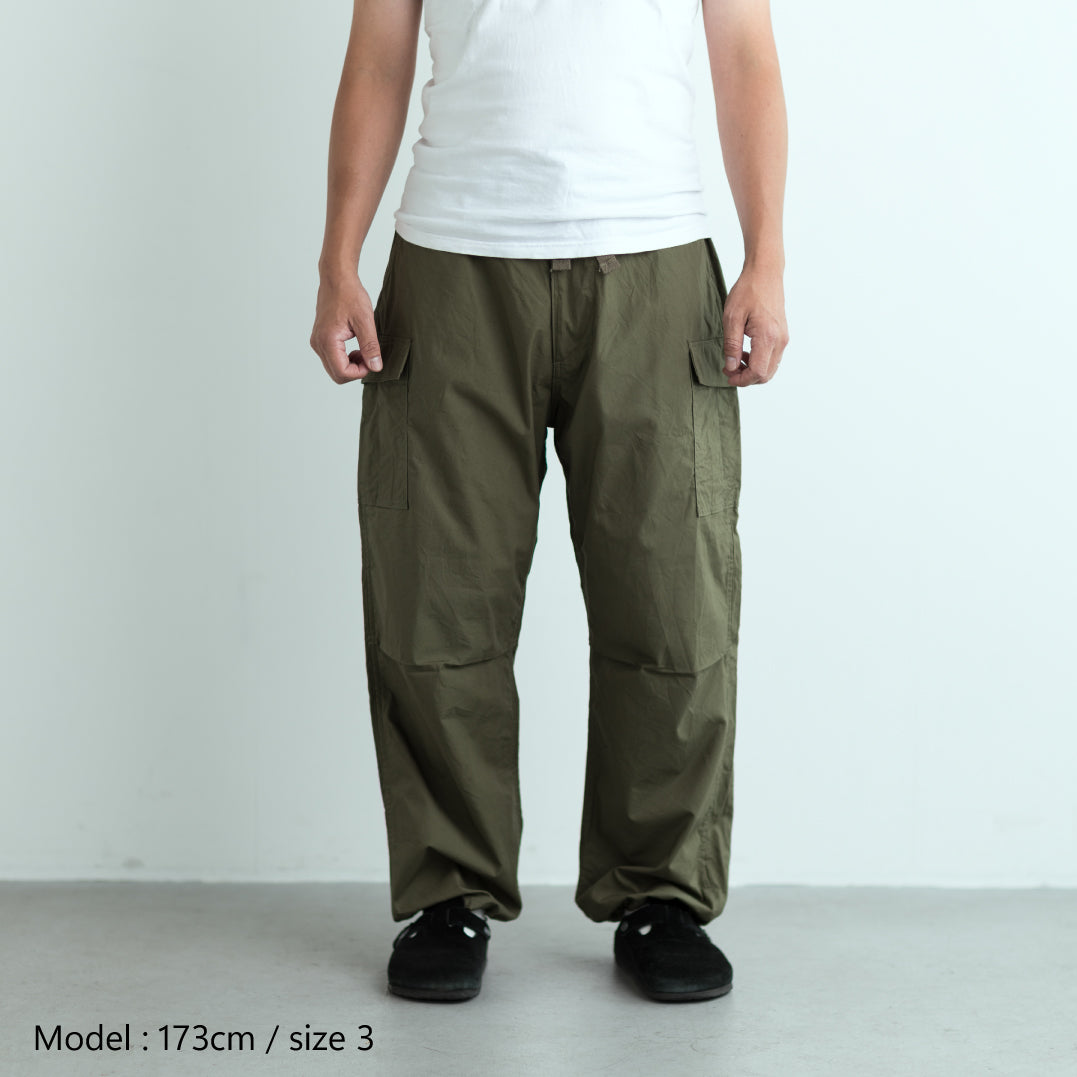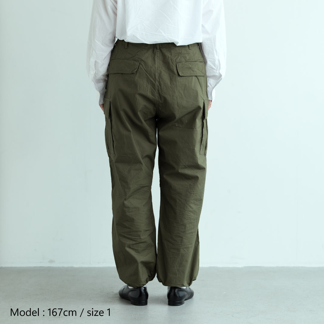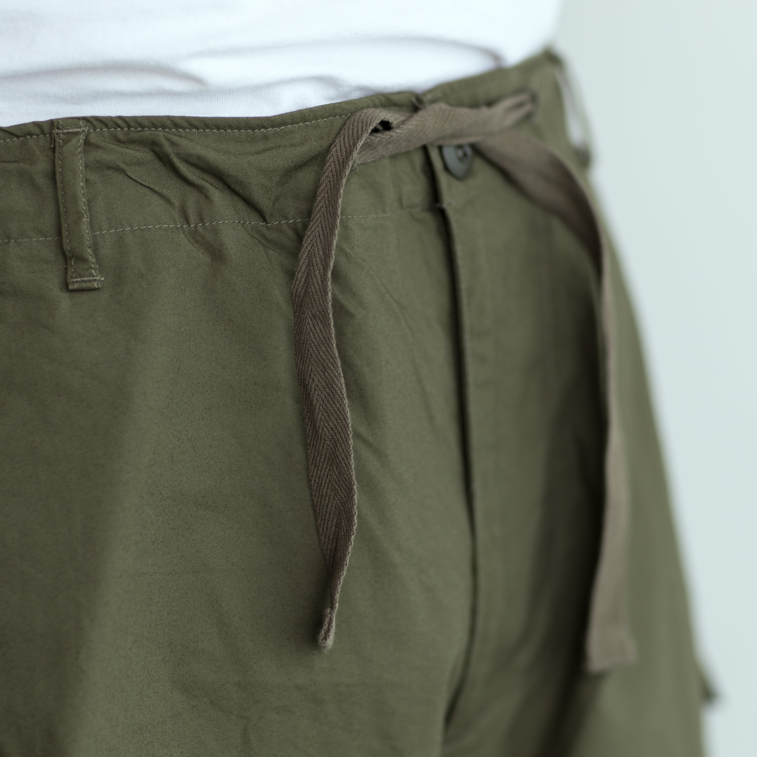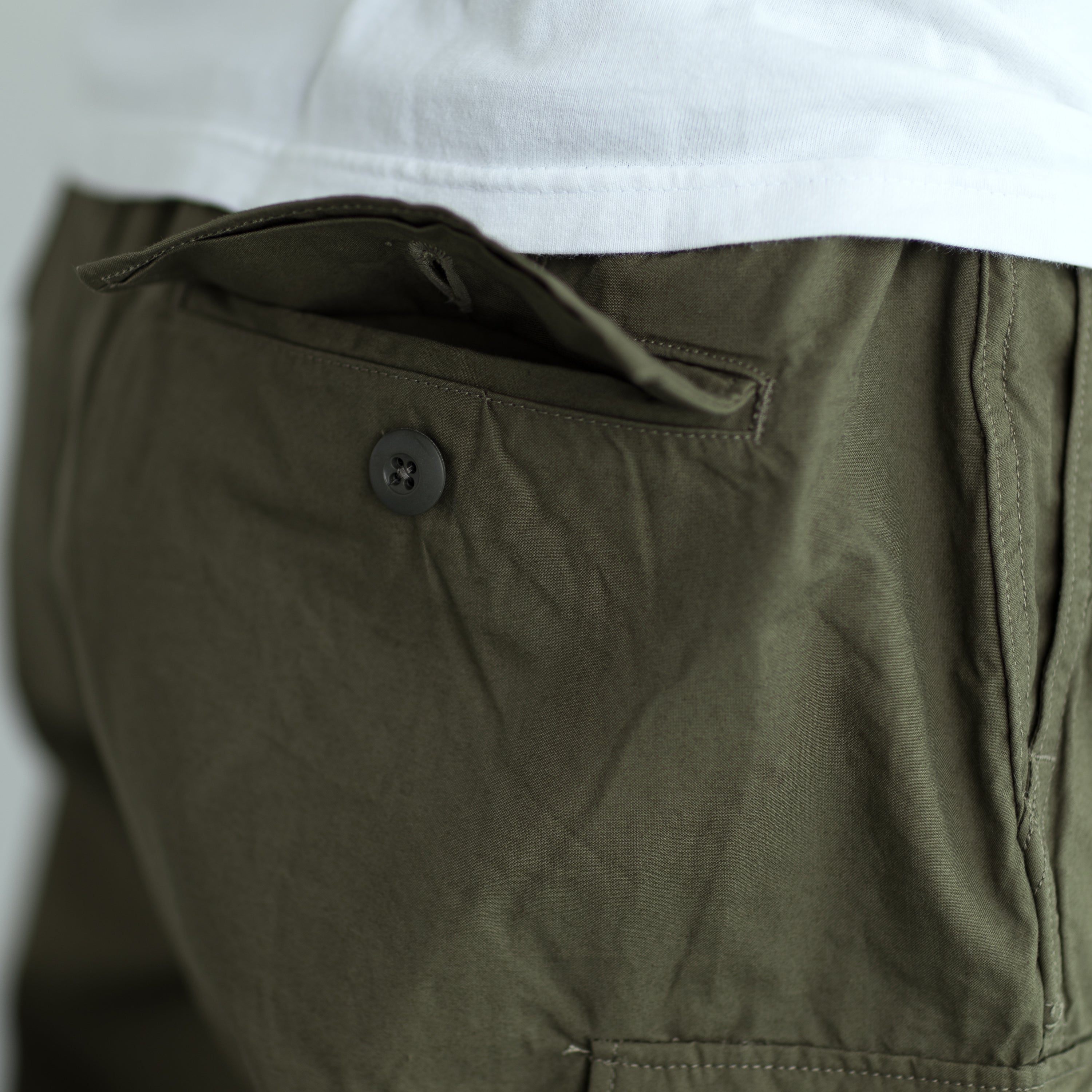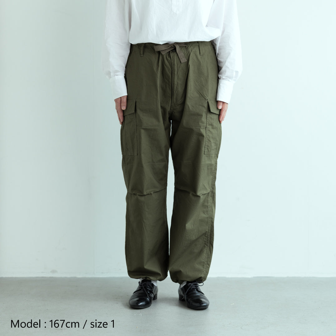 Based on the 1960s jungle fatigue pants, we created a TSL-style cargo pant by removing unnecessary parts and adding a drawcord for easy, everyday wear.