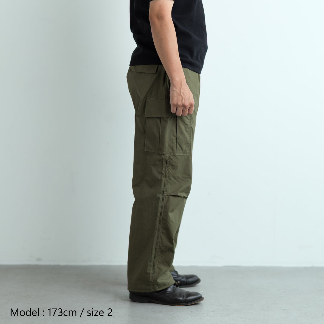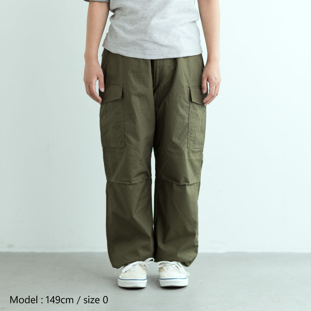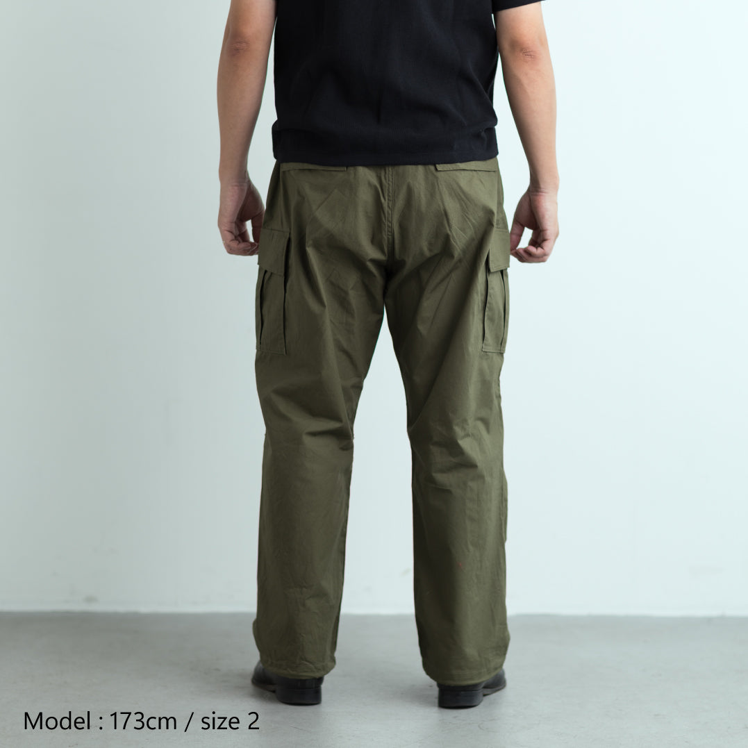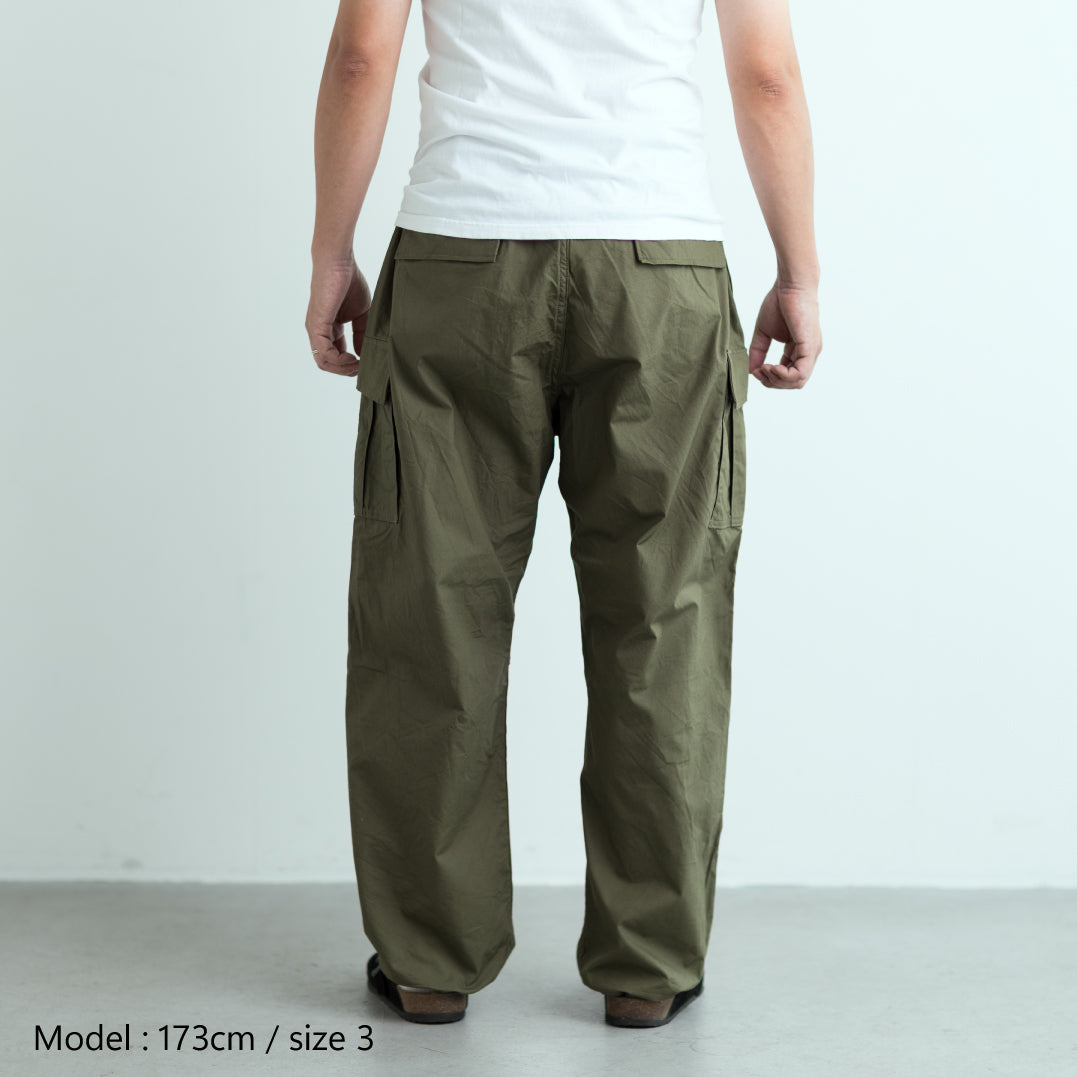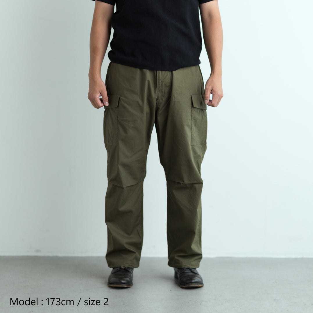 Based on the 1960s jungle fatigue pants, we created a TSL-style cargo pant by removing unnecessary parts and adding a drawcord for easy, everyday wear.