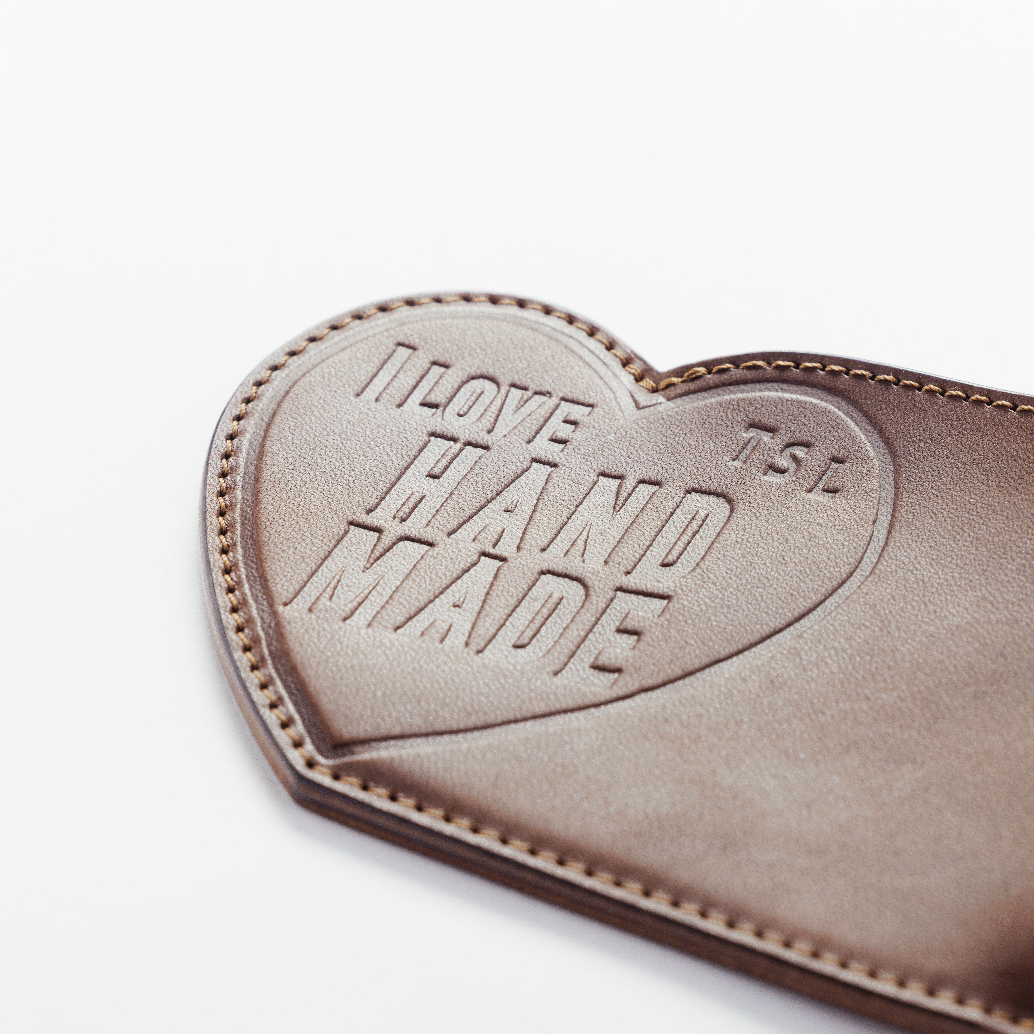 With a softly curved heart-shaped silhouette, a matching heart charm, and the stamped message “I LOVE HANDMADE,”this piece is a small expression of love for craftsmanship.