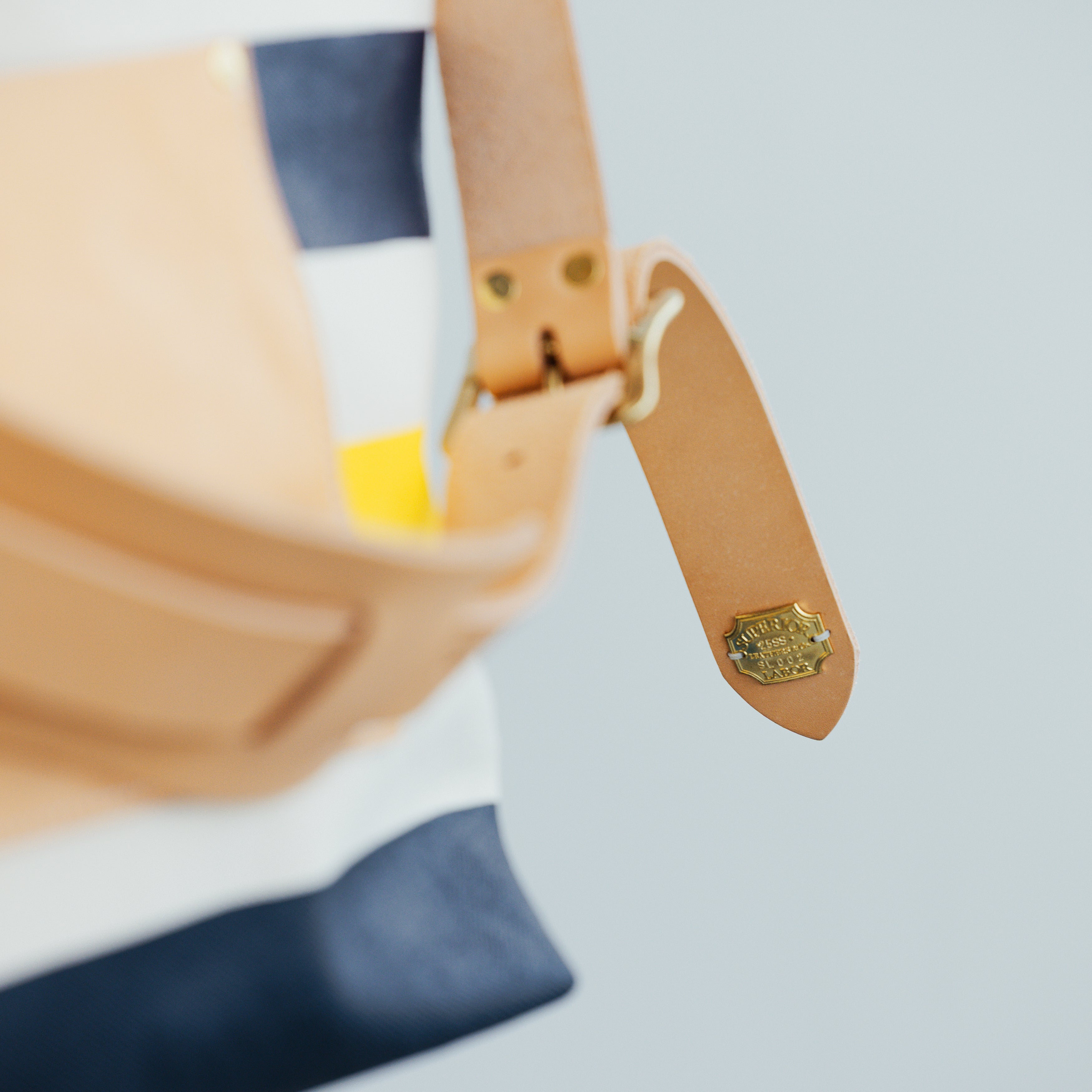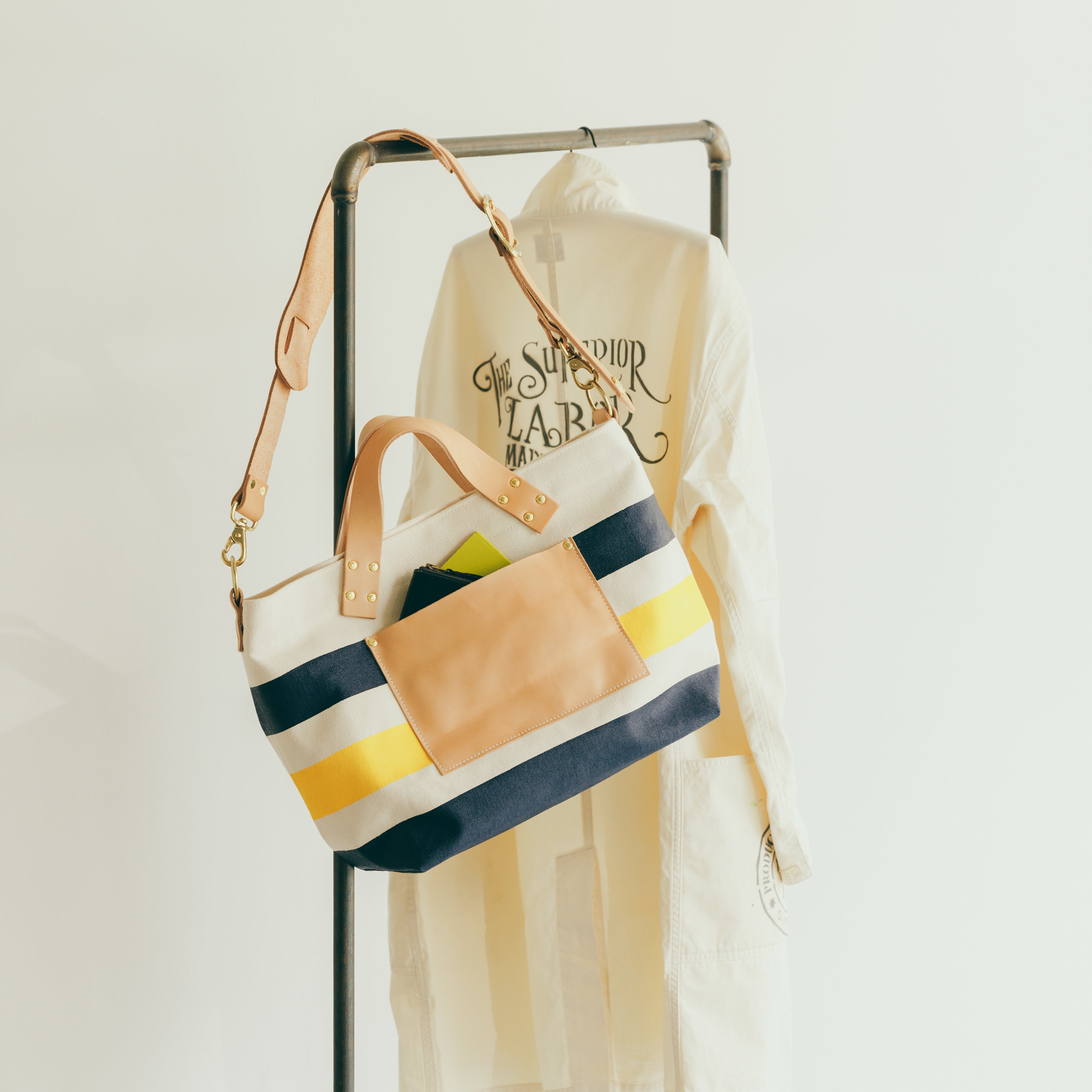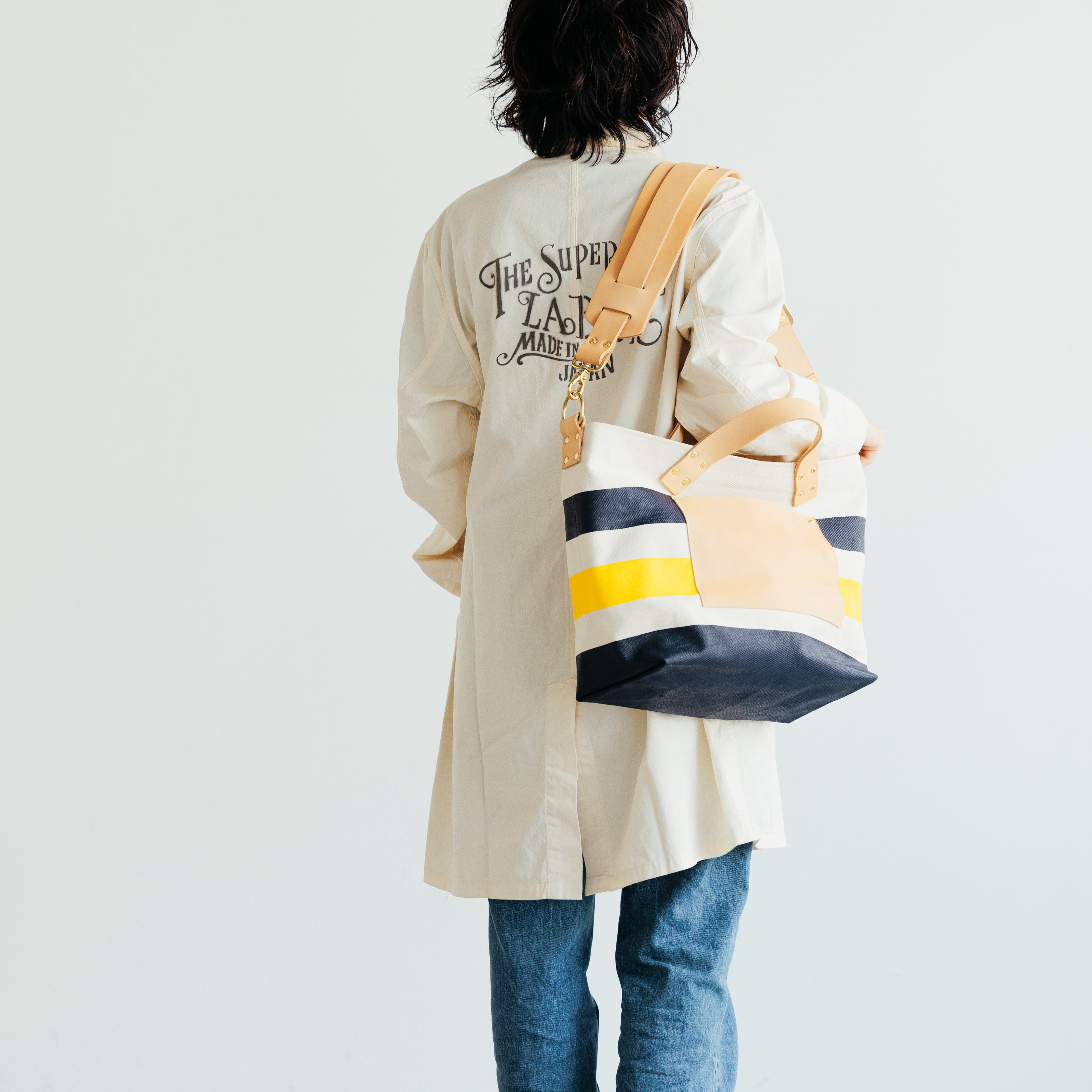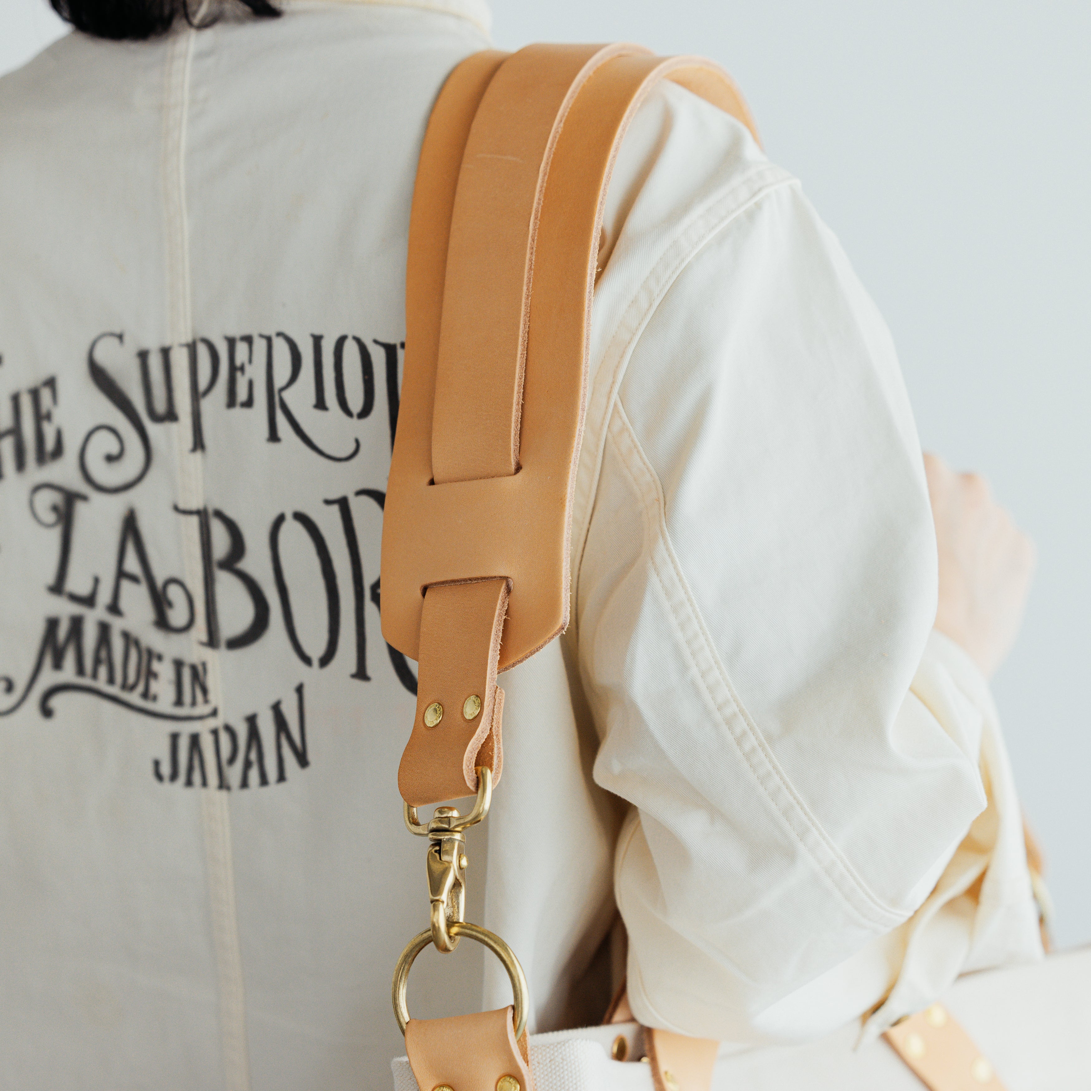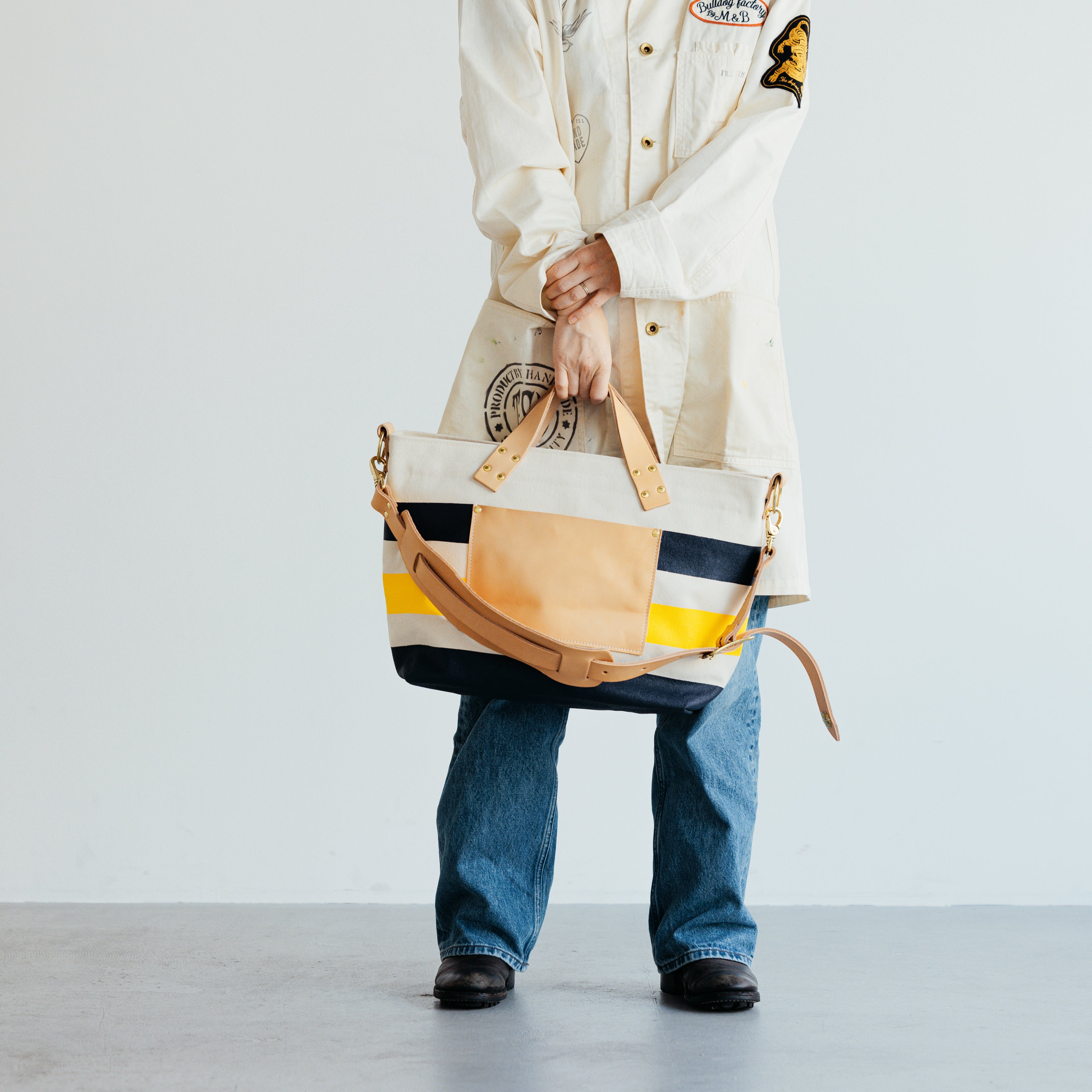 シャトル織機で一日2反しか織ることのできない倉敷産帆布や、東京下町の鋳物工場で作られた真鍮金具、そして、ミモザの樹皮から抽出されたタンニンでなめされた国産のヌメ革。