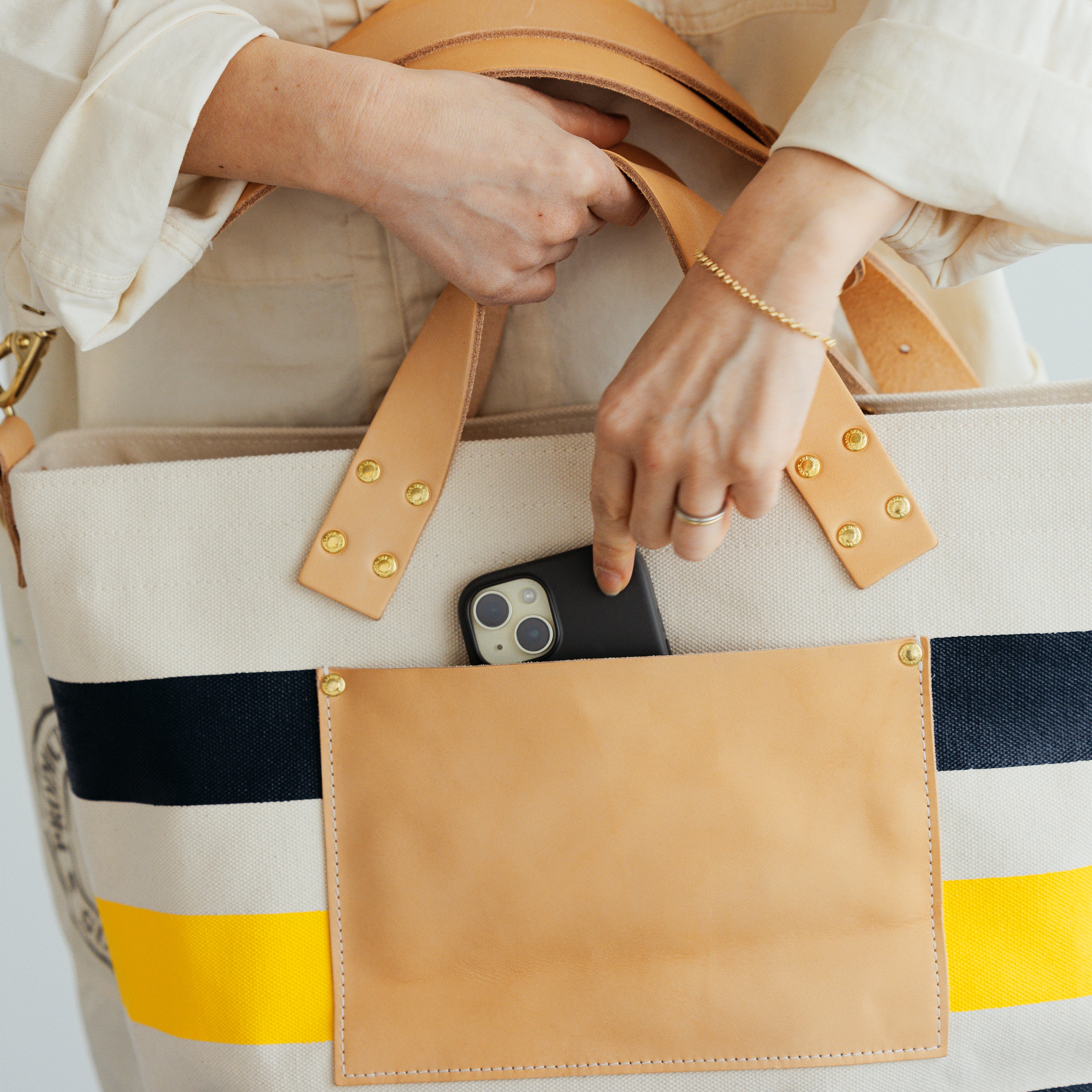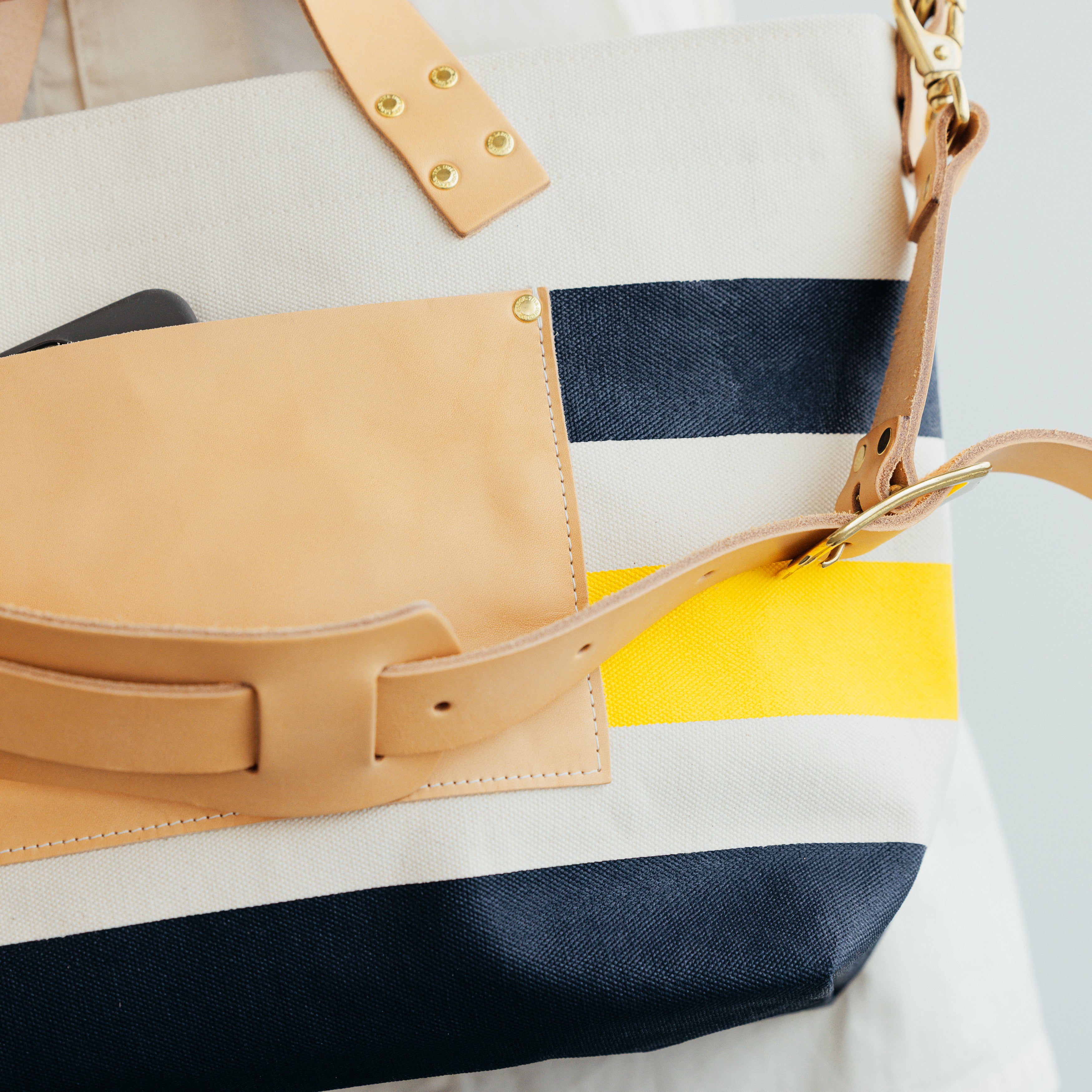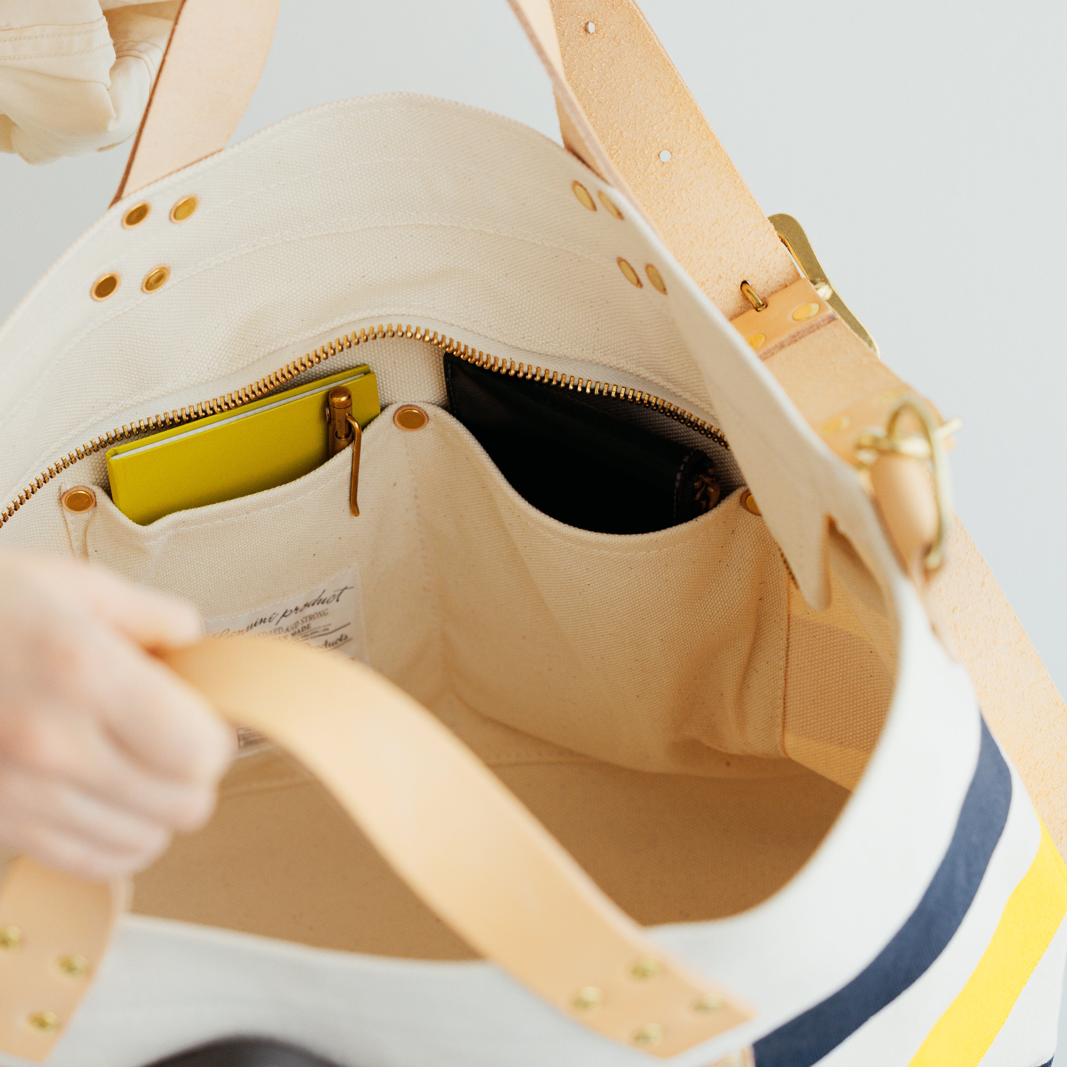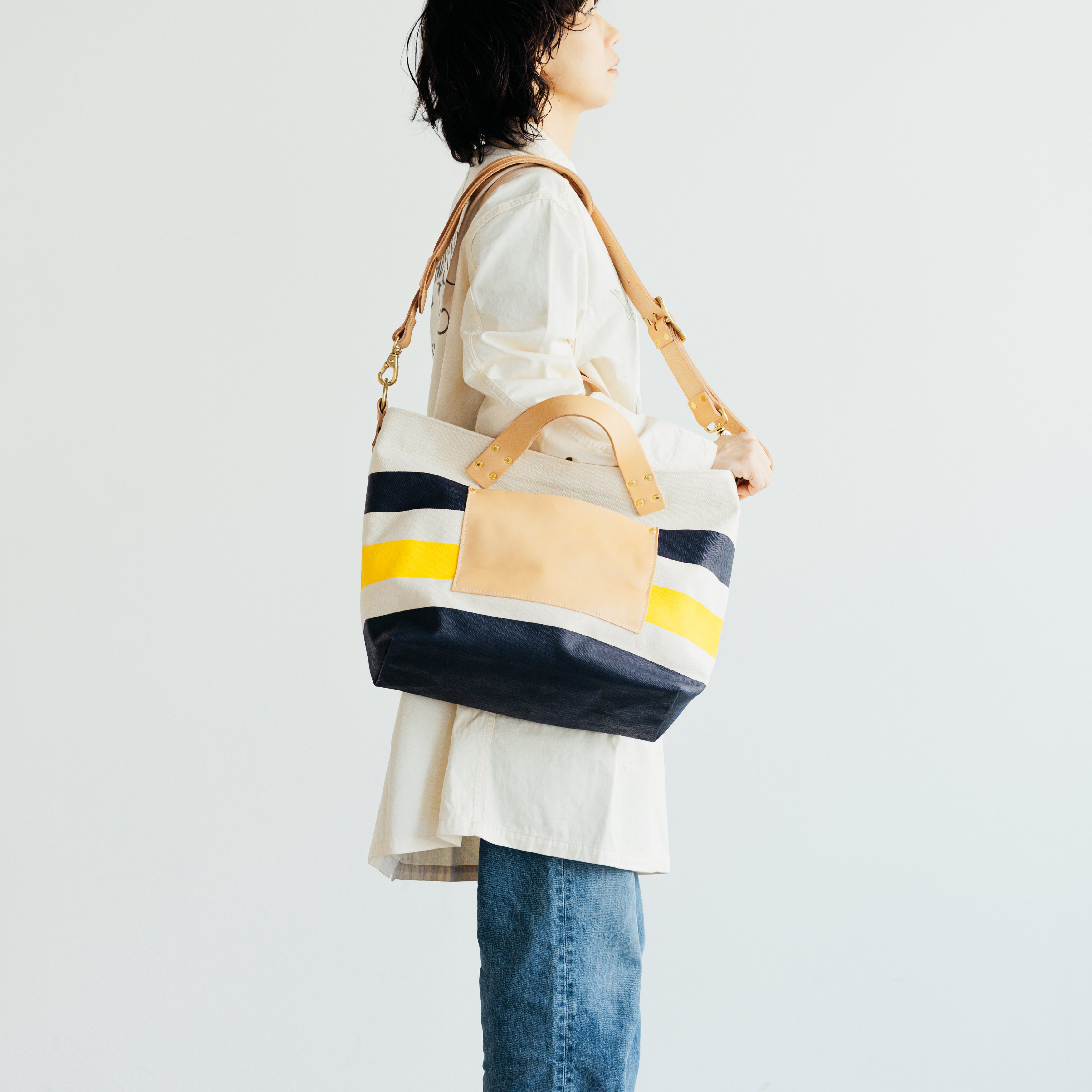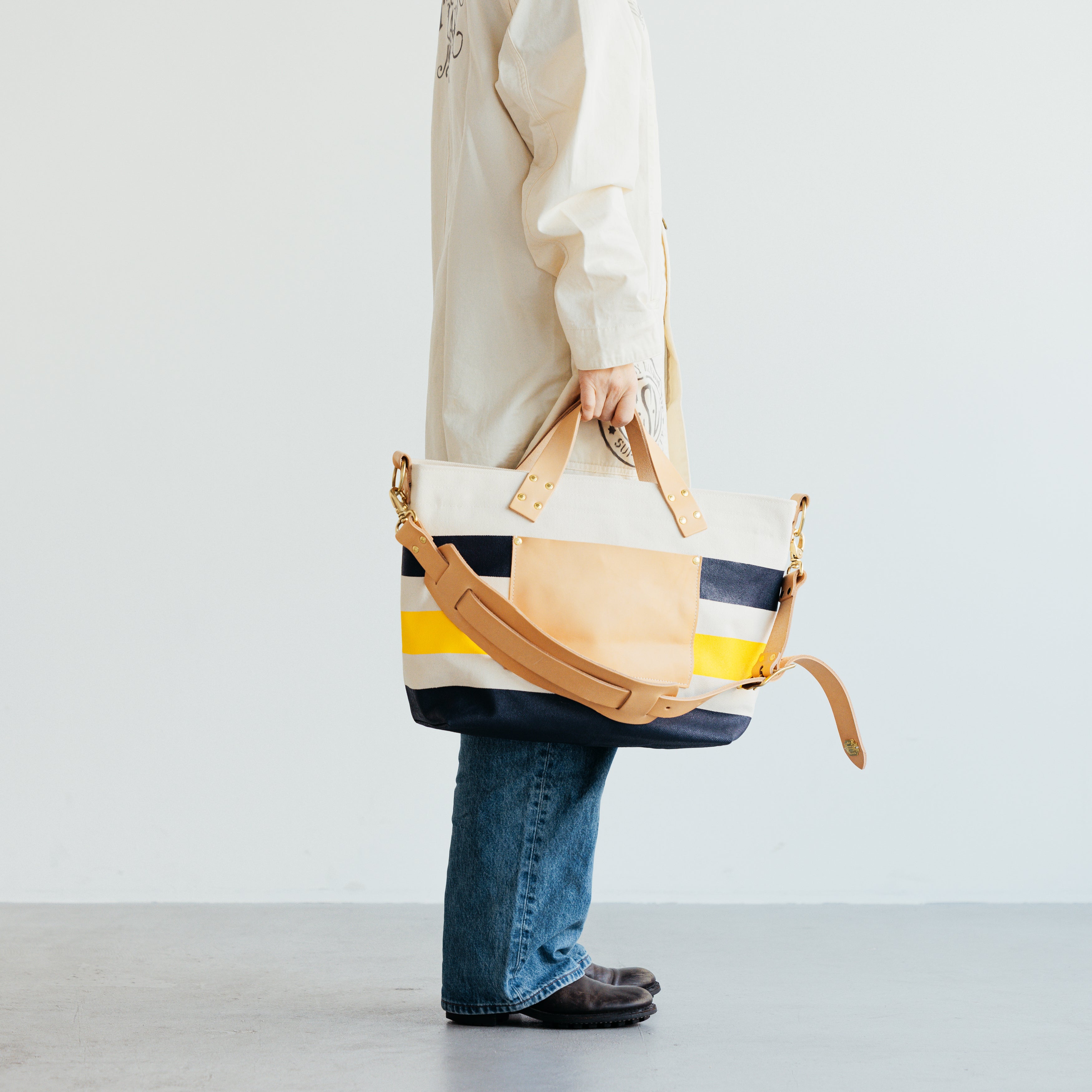 シャトル織機で一日2反しか織ることのできない倉敷産帆布や、東京下町の鋳物工場で作られた真鍮金具、そして、ミモザの樹皮から抽出されたタンニンでなめされた国産のヌメ革。