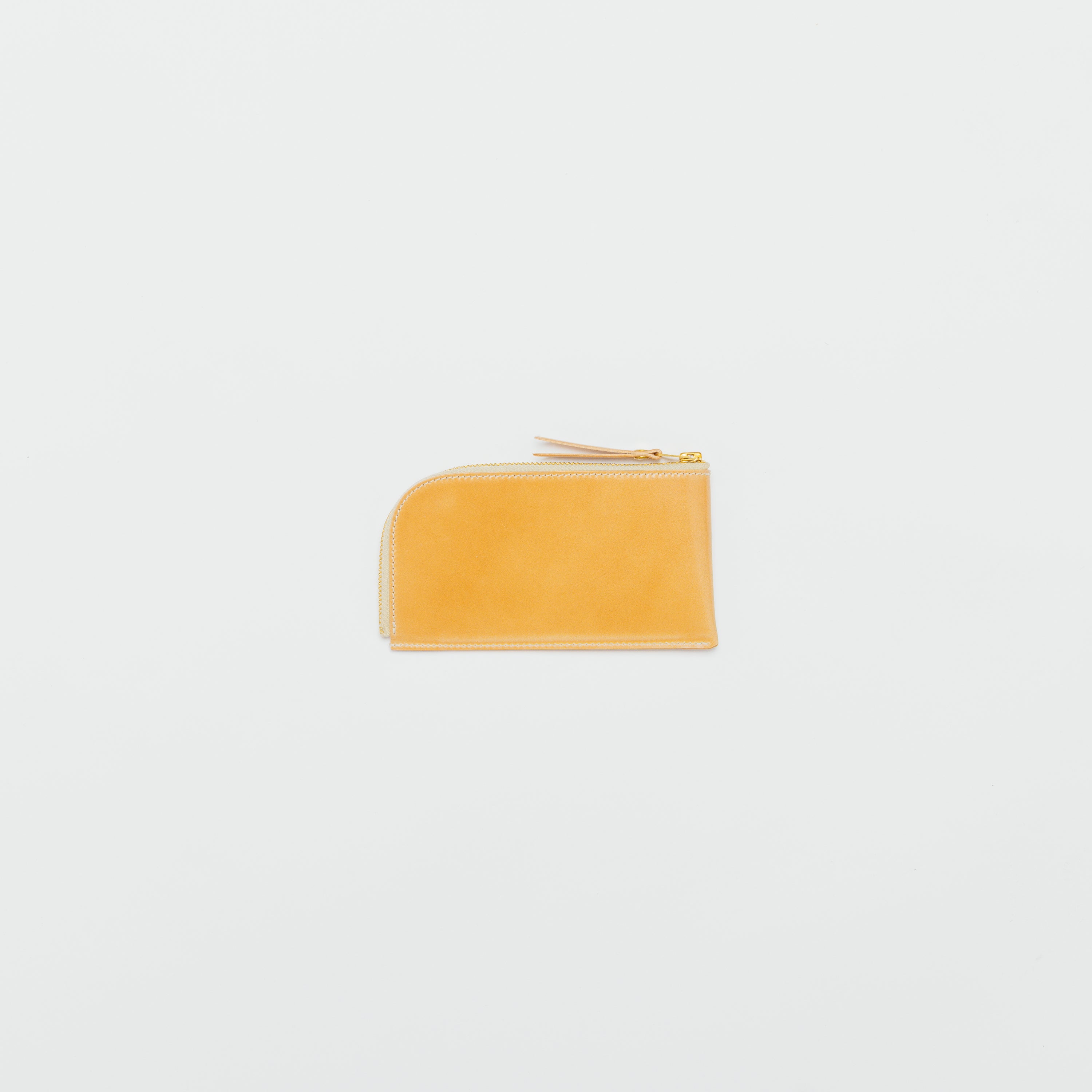 ゆるやかにカーブしたL字ファスナーは、大きく開いて中身がひと目で見渡せます。出し入れもスムーズ。
