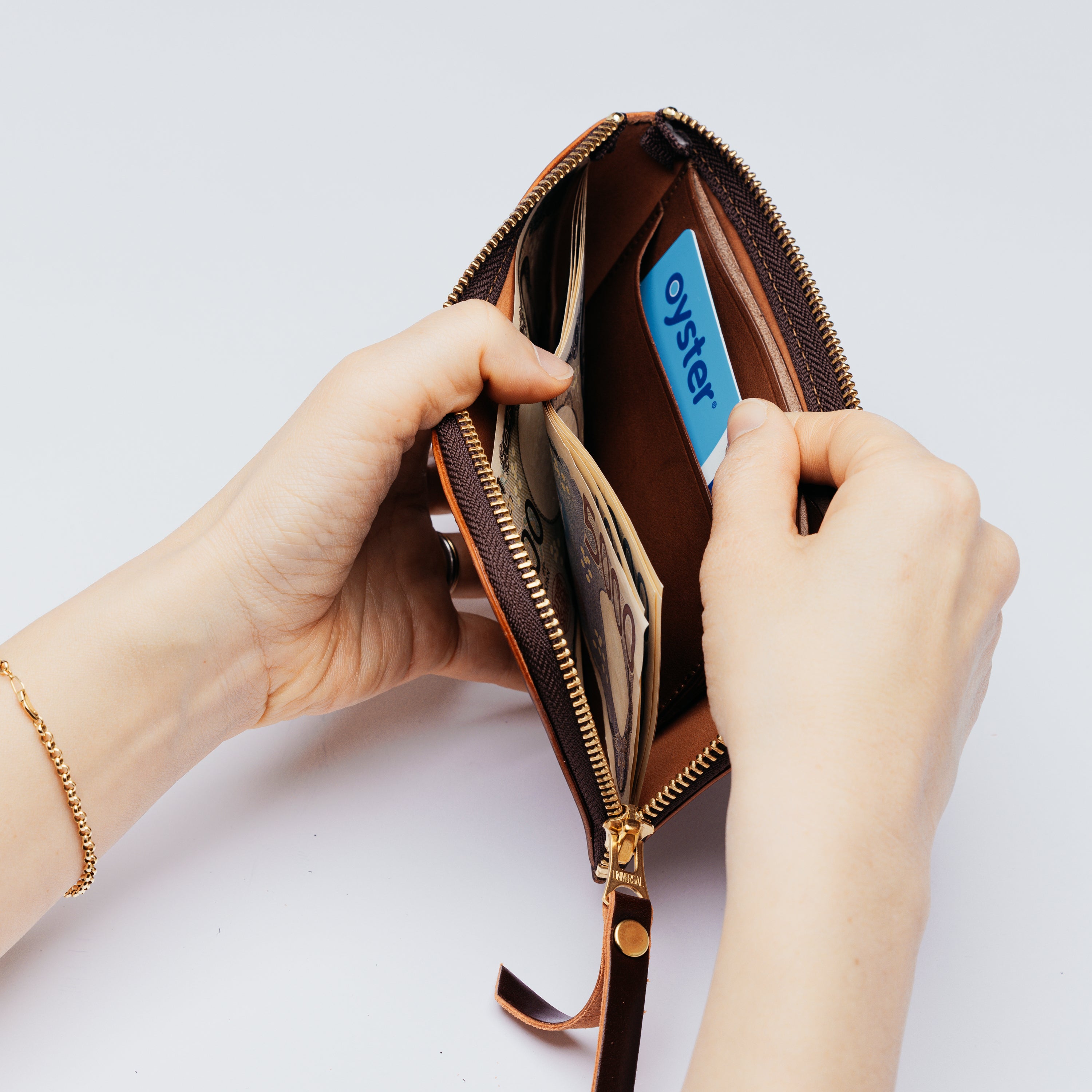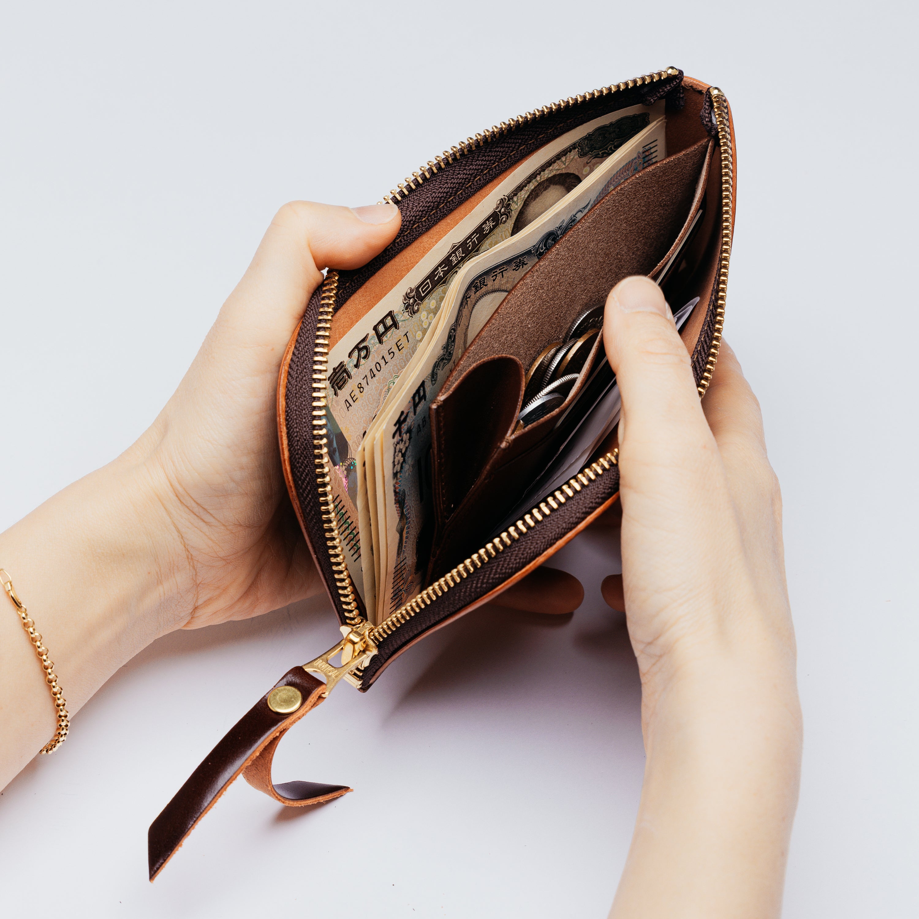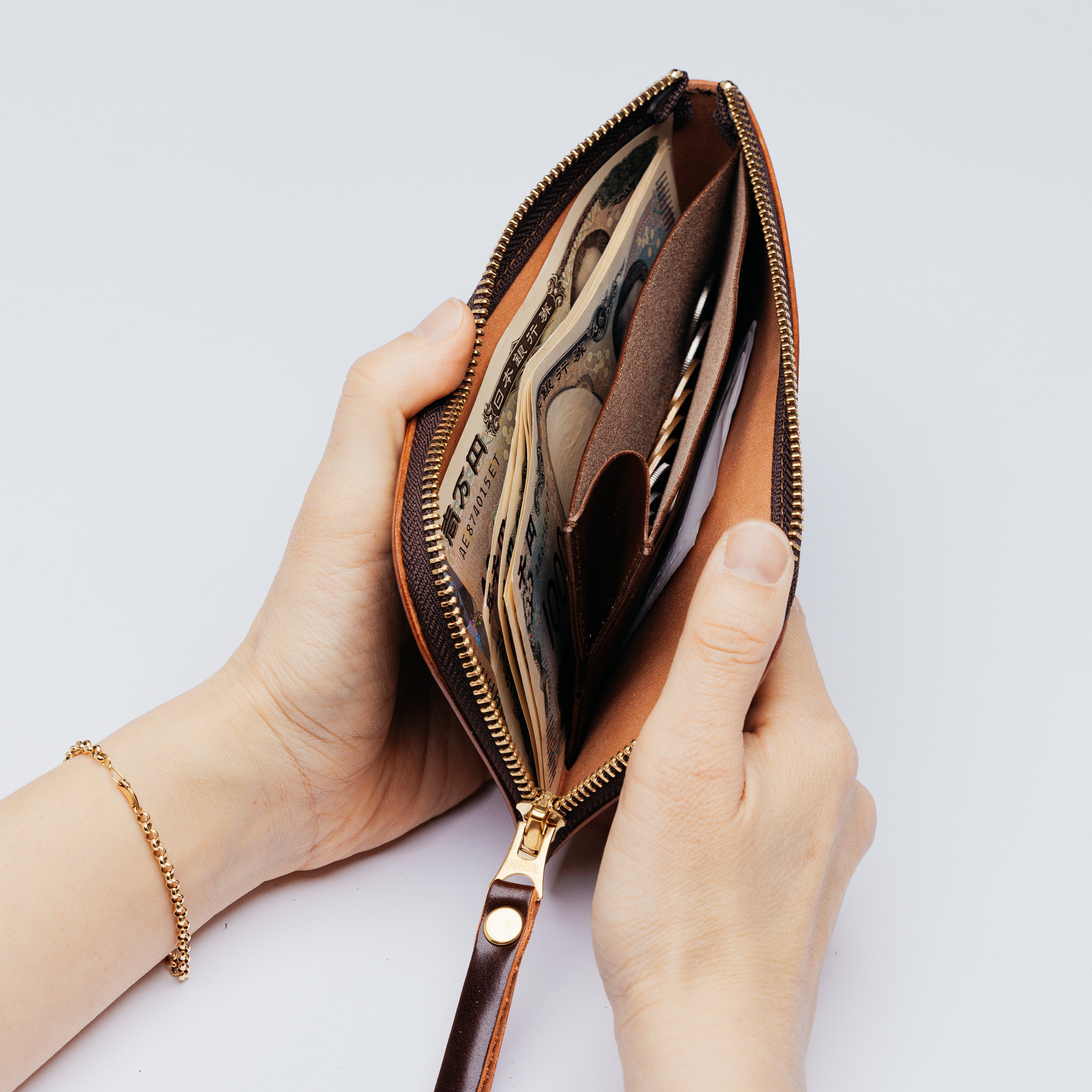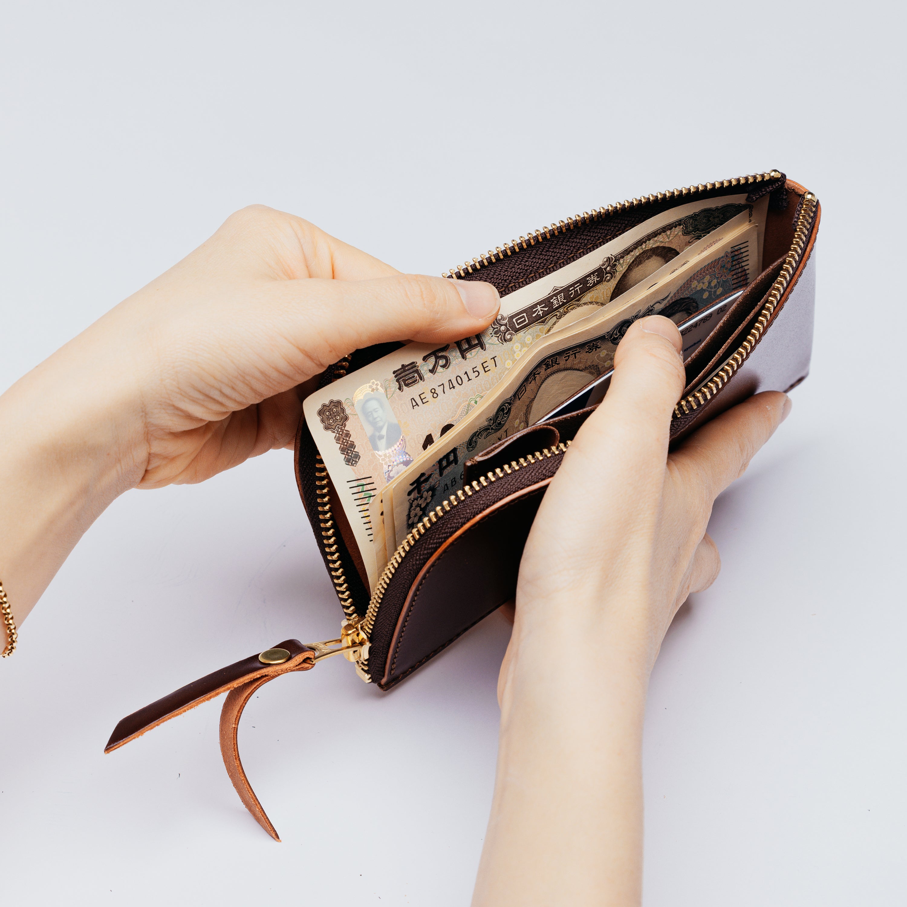 1万円札が折らずにぴったり収まる最小サイズに設計しました。
