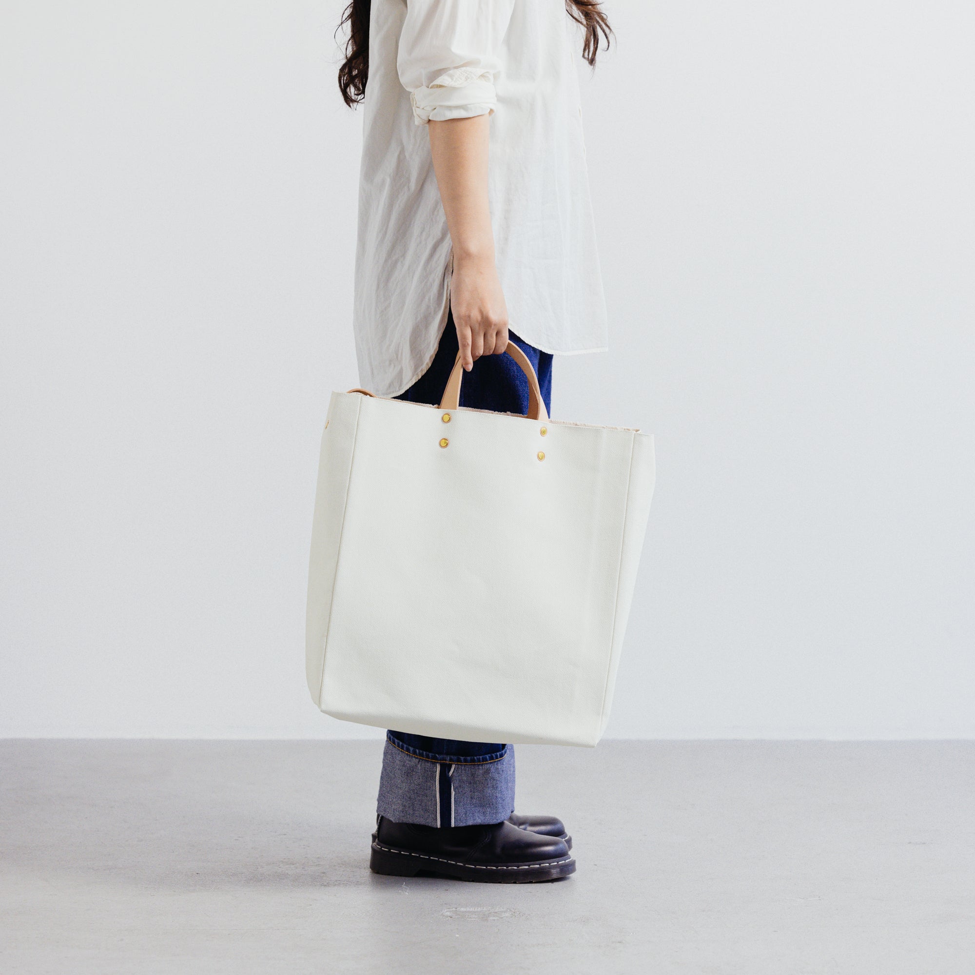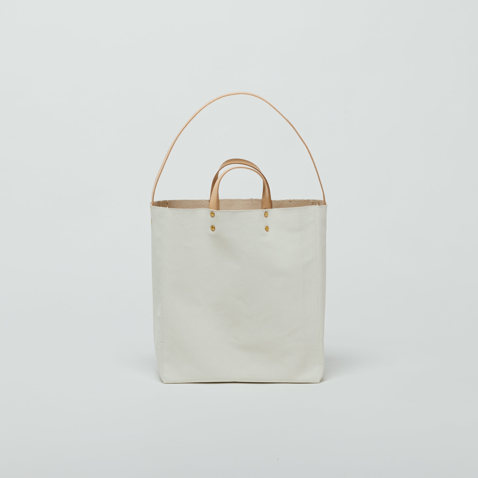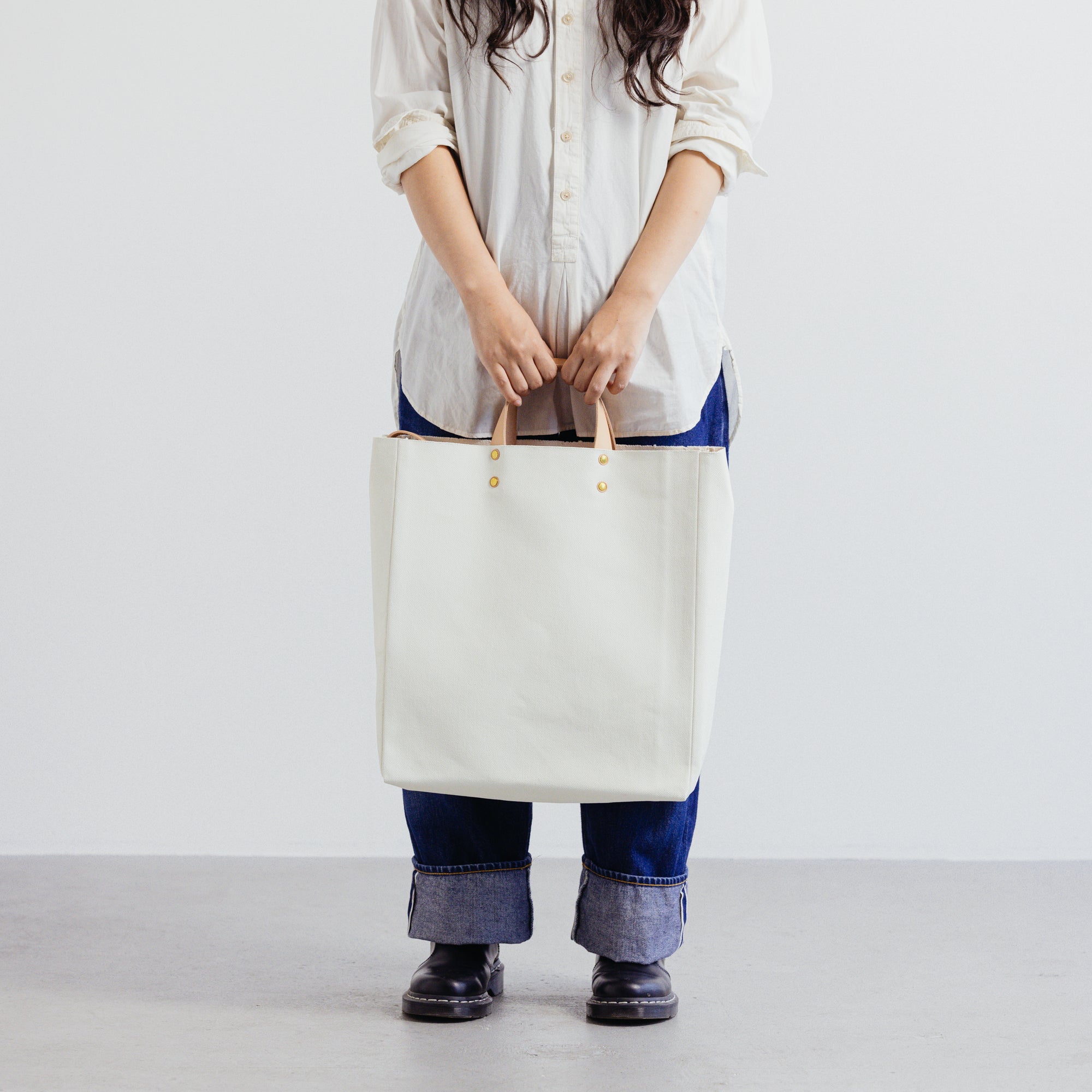 紙手提げ袋のようなストンと四角いかたちで、マチは太め。