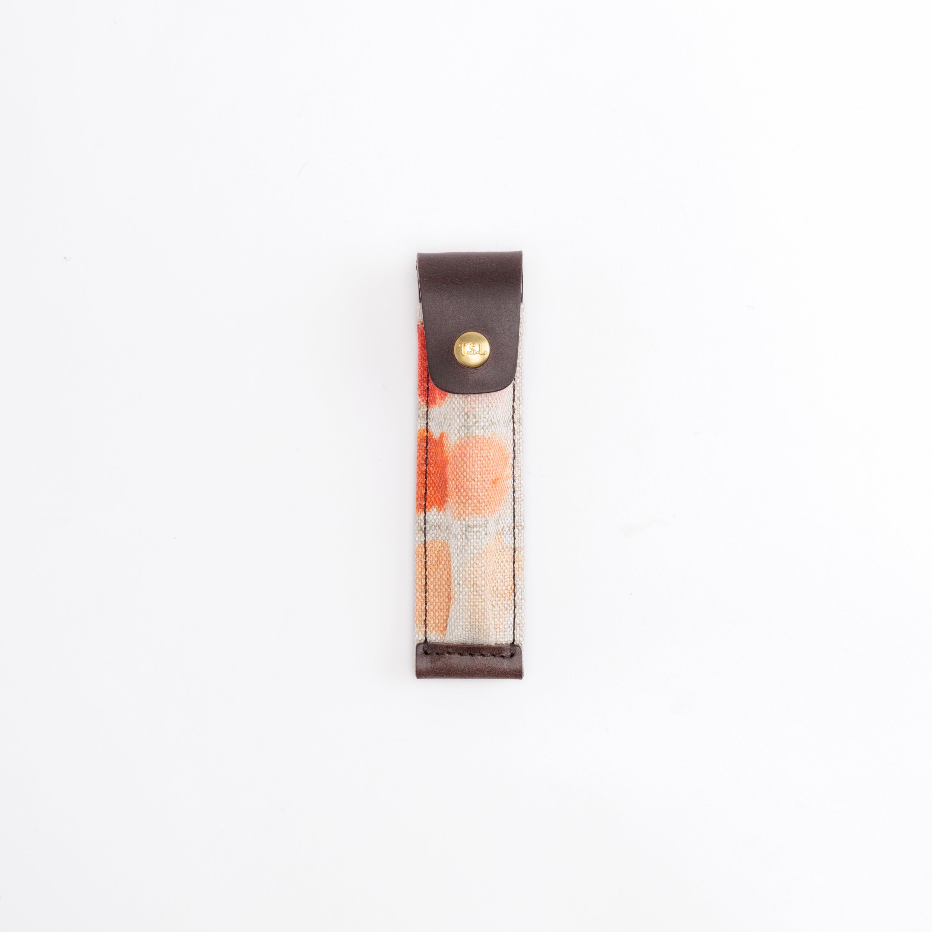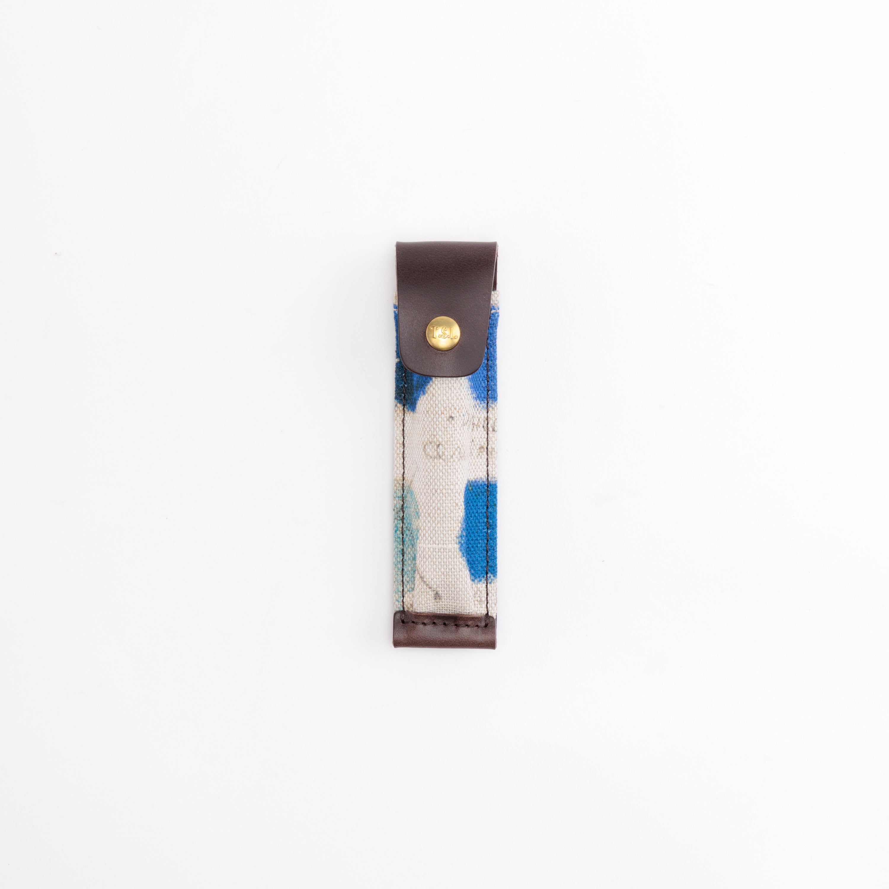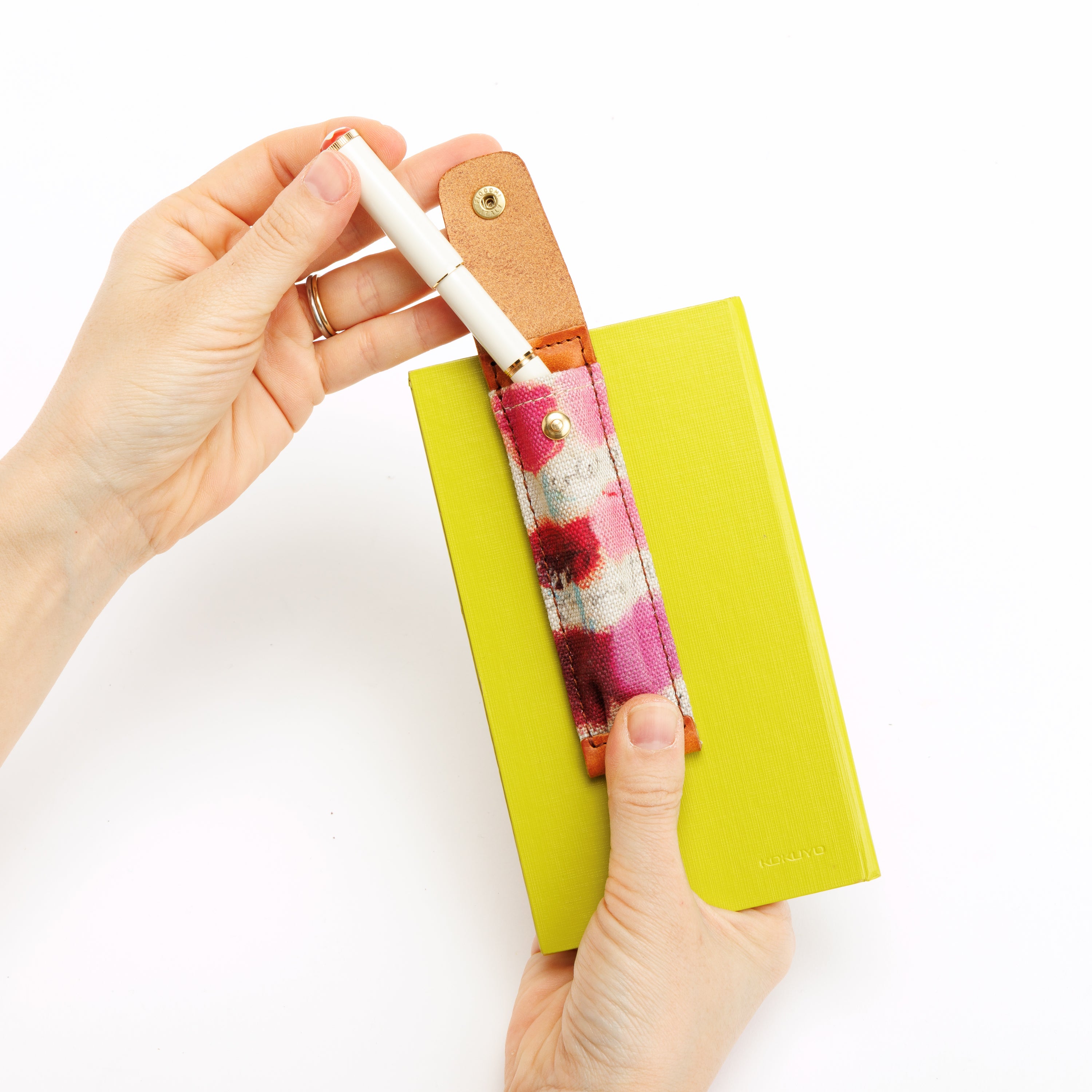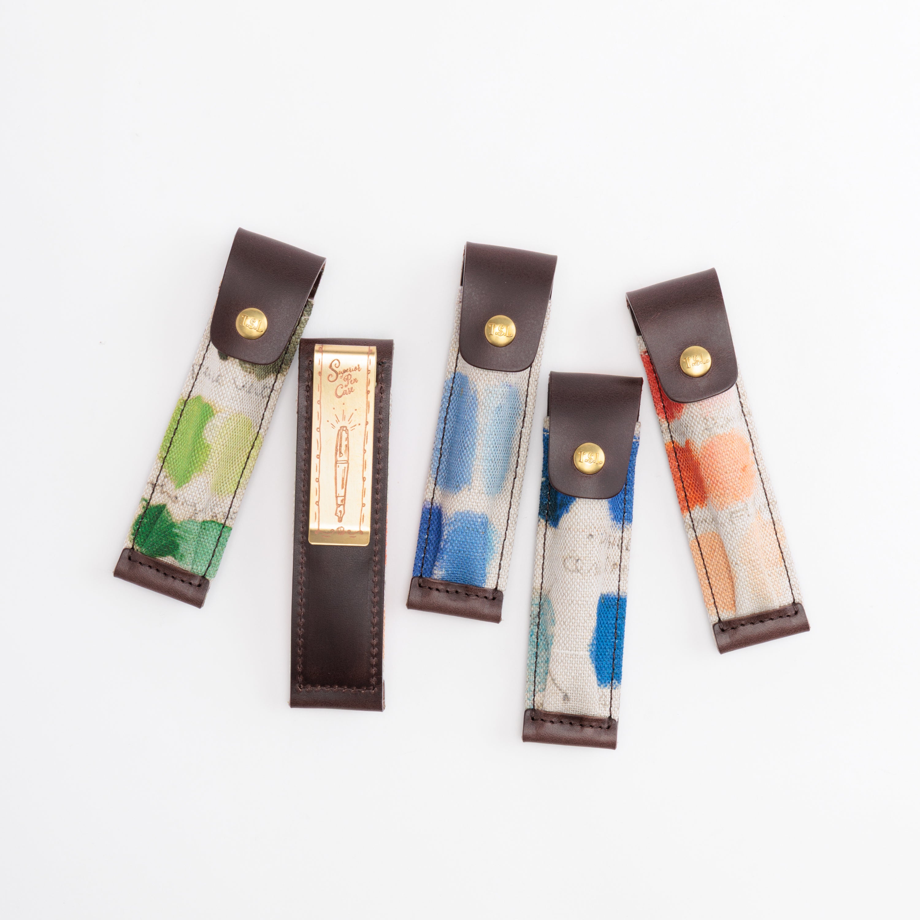 ボディにはJOHN DERIANデザインの生地を使用、裏のクリップには万年筆のイラストをエッチングで入れました。