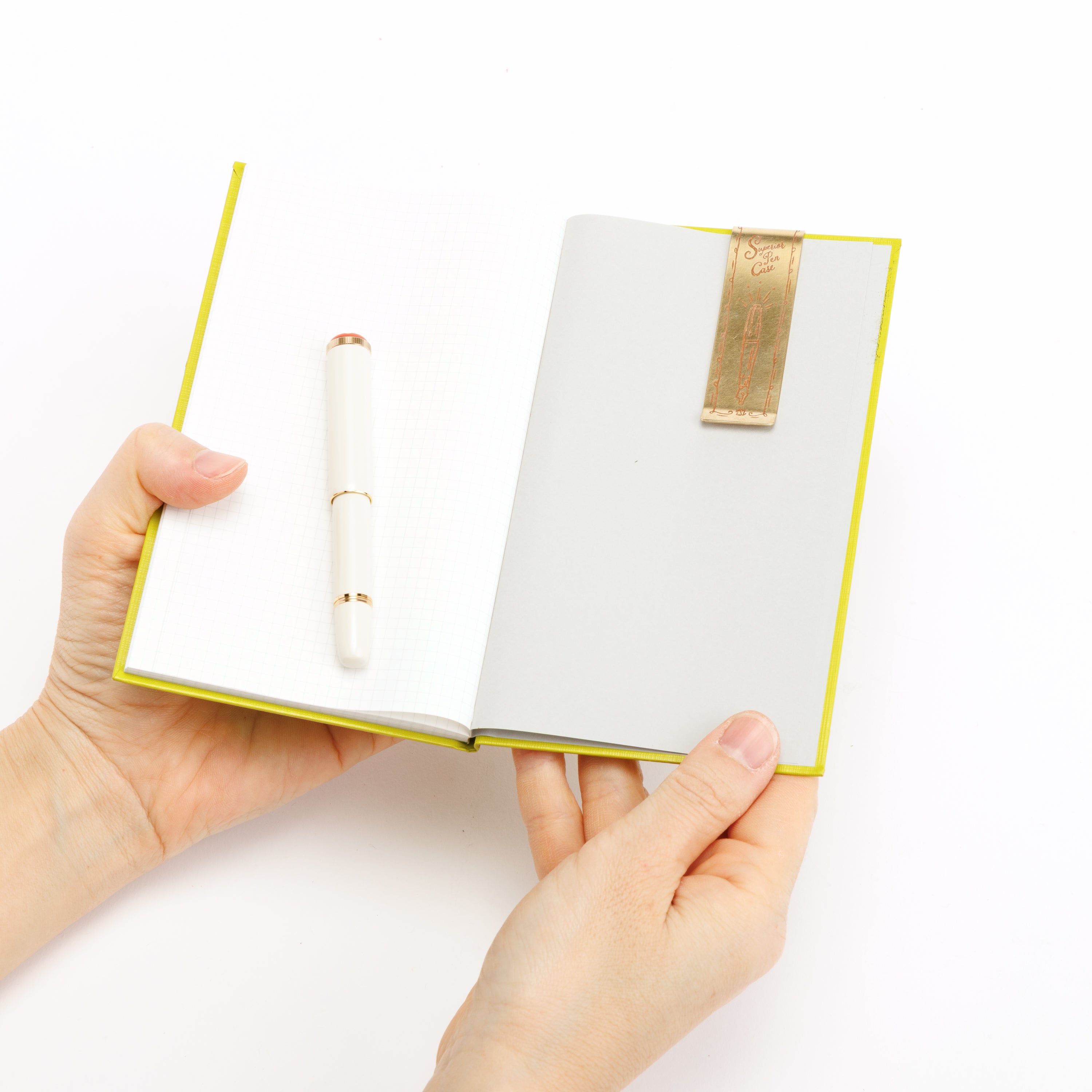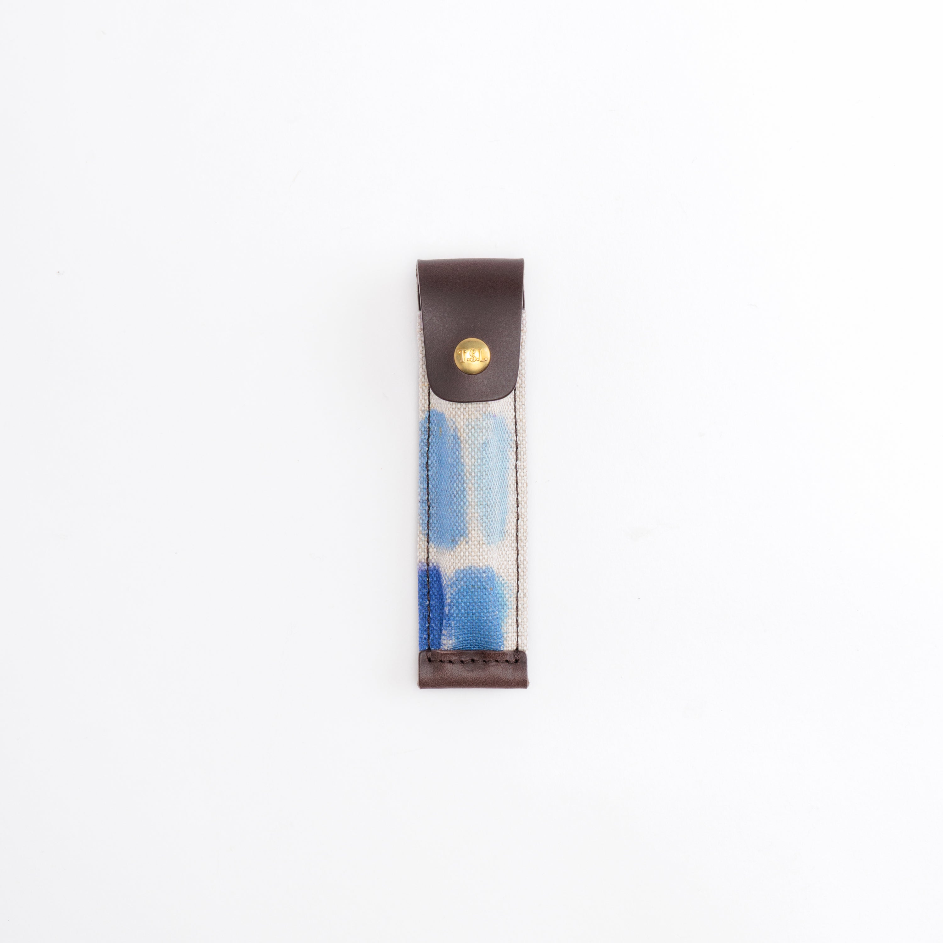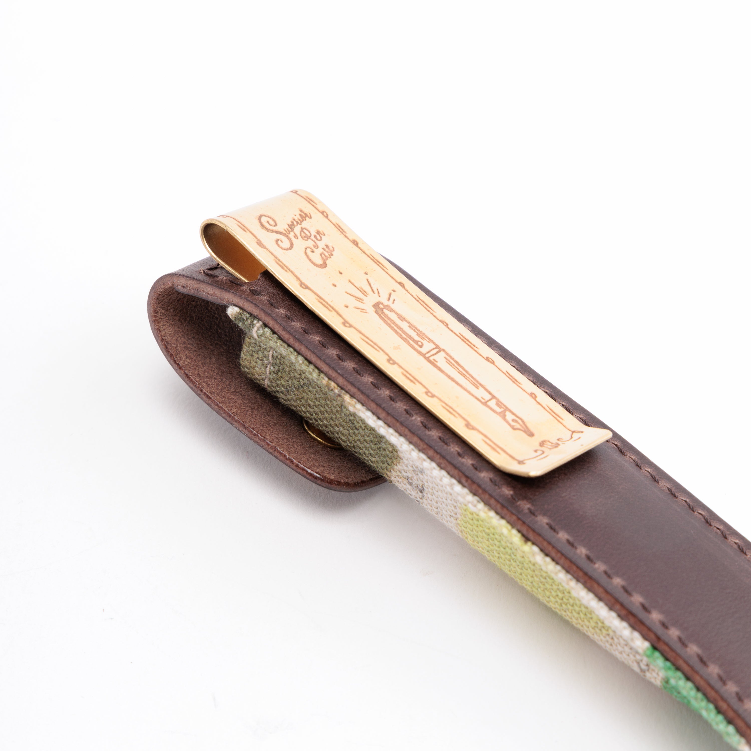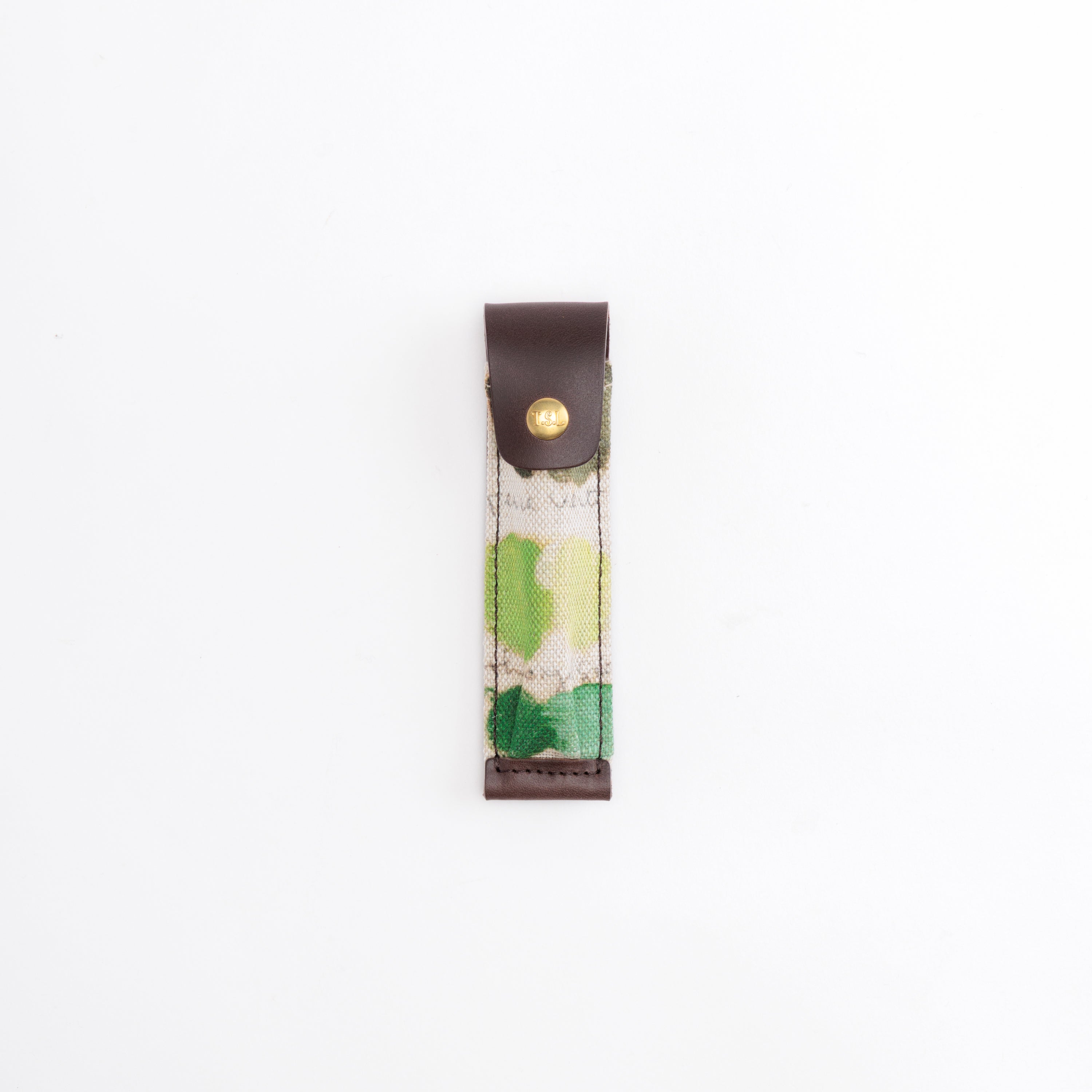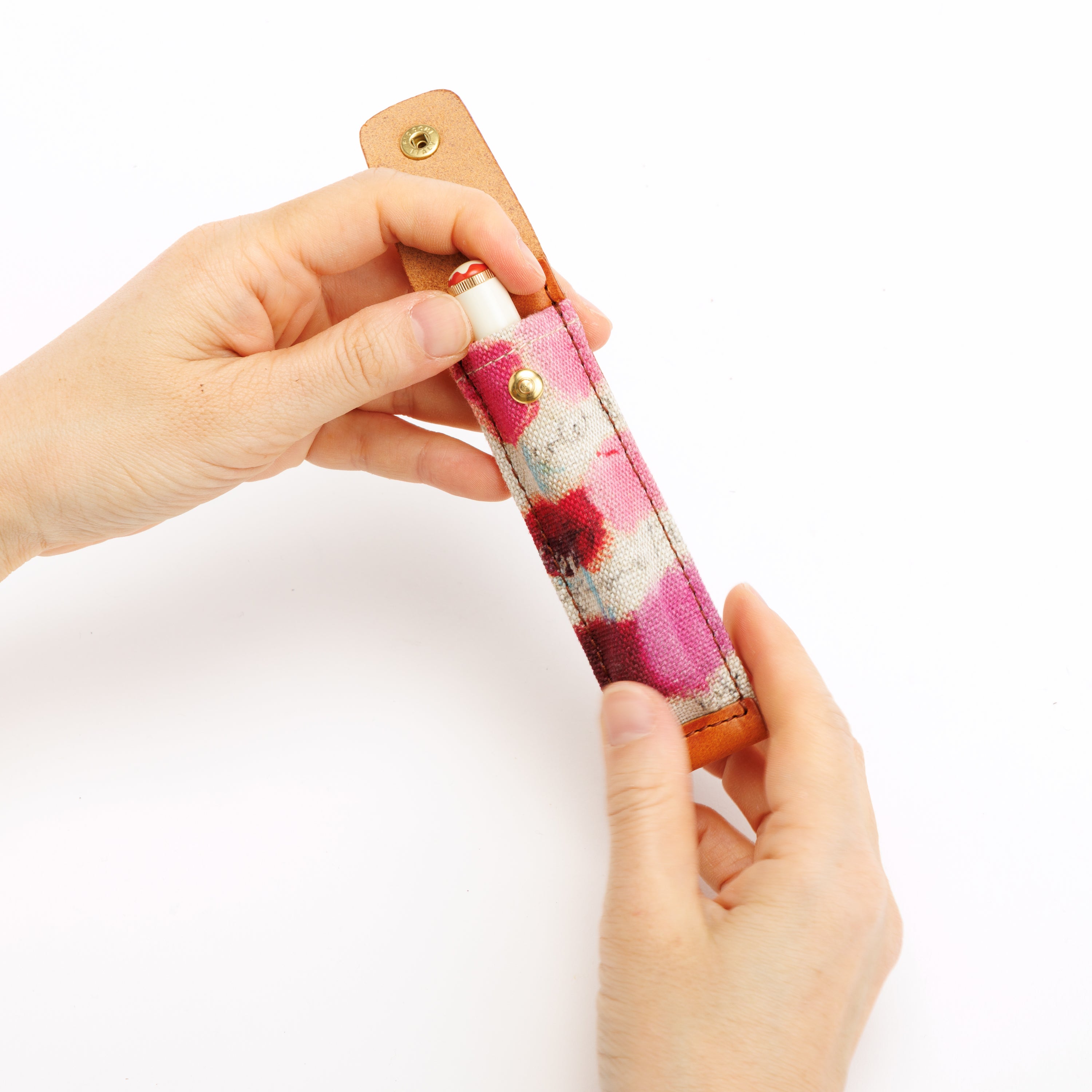 ボディにはJOHN DERIANデザインの生地を使用、裏のクリップには万年筆のイラストをエッチングで入れました。