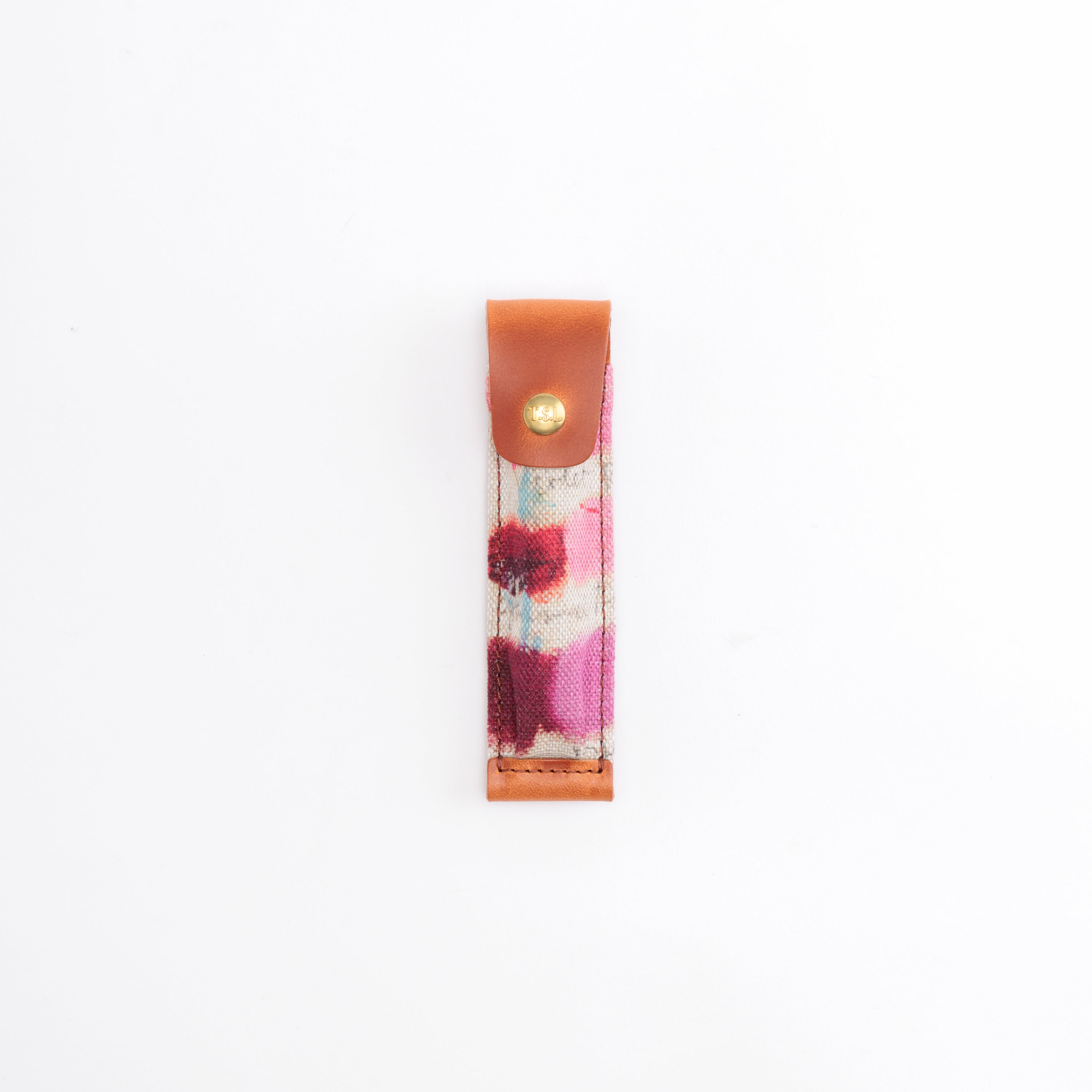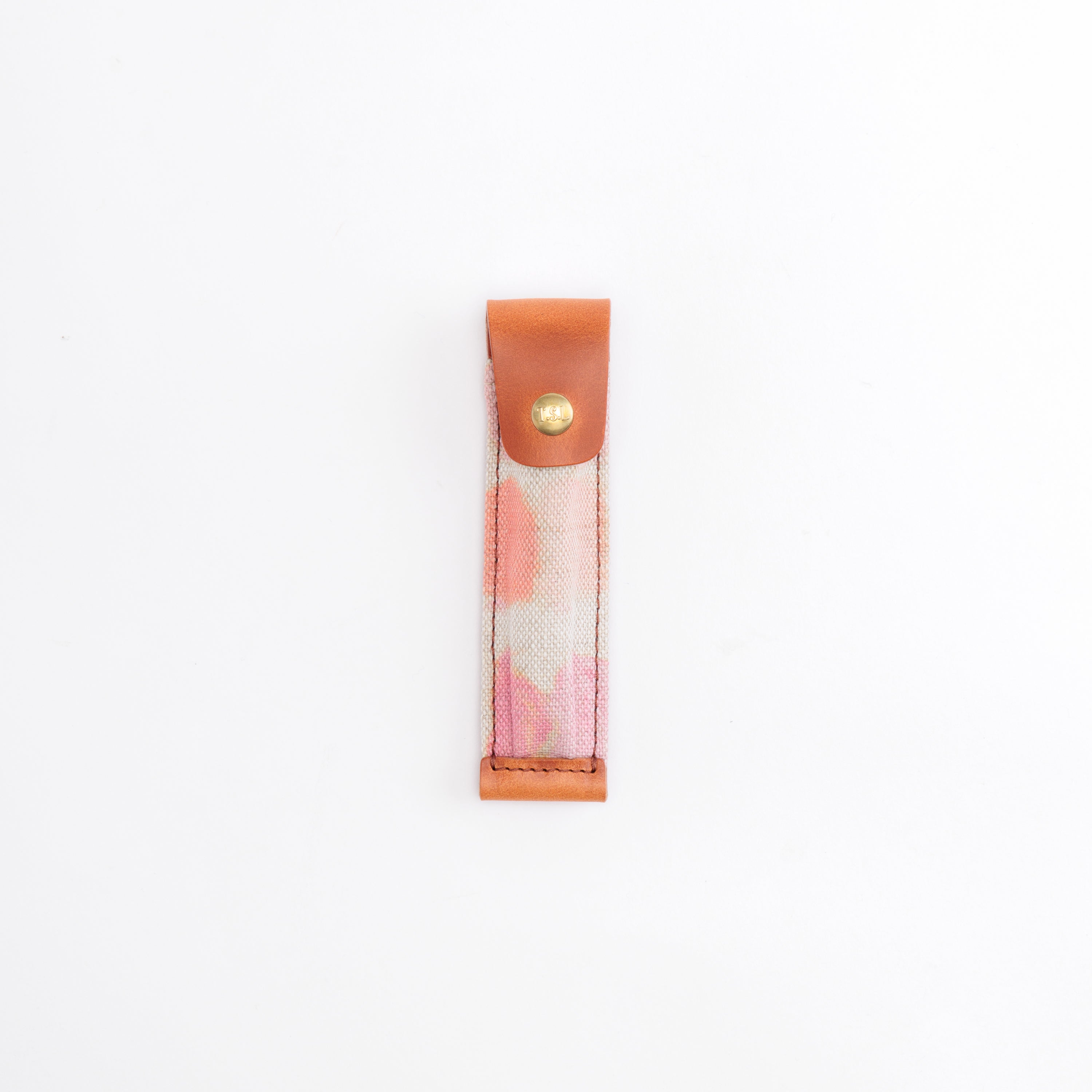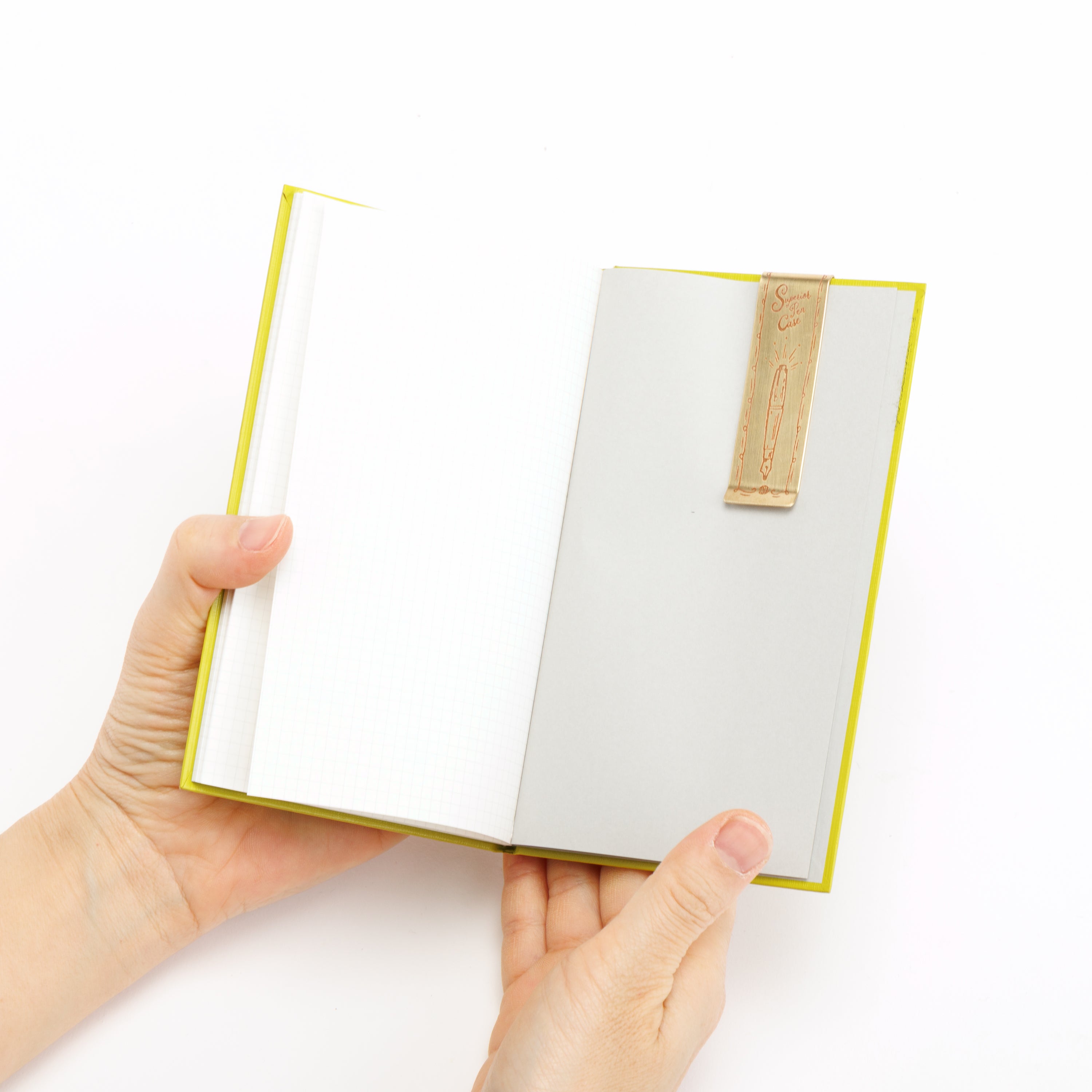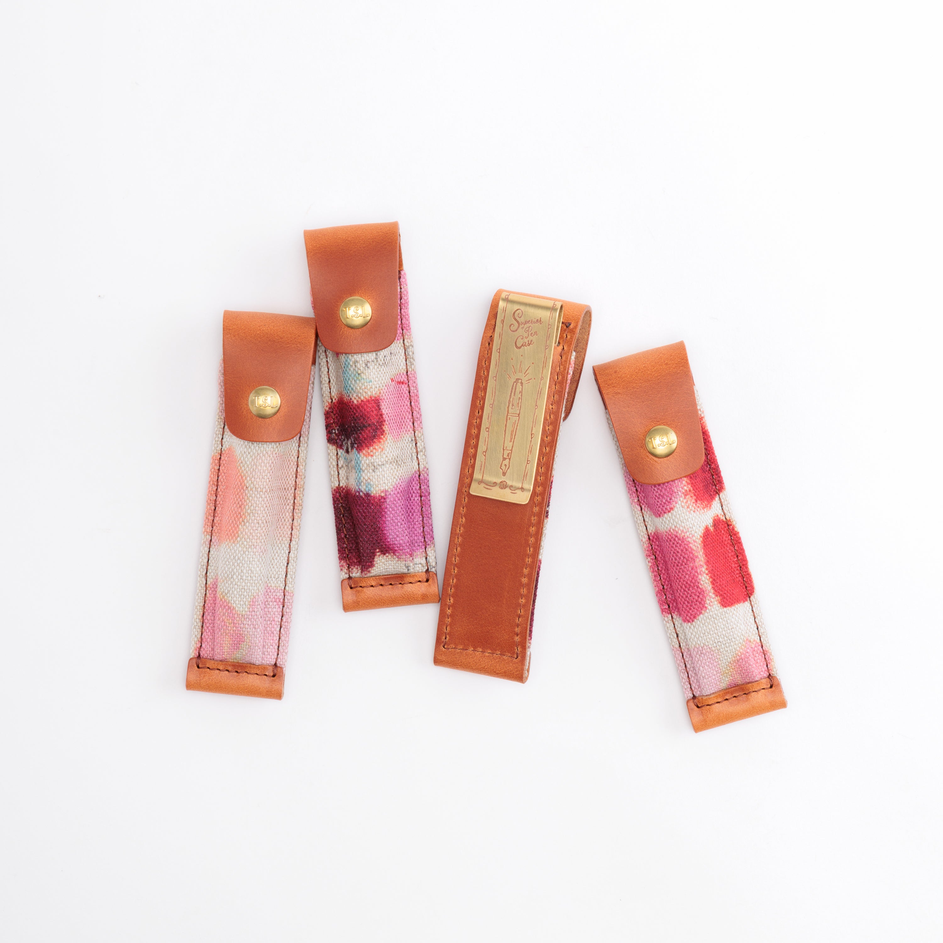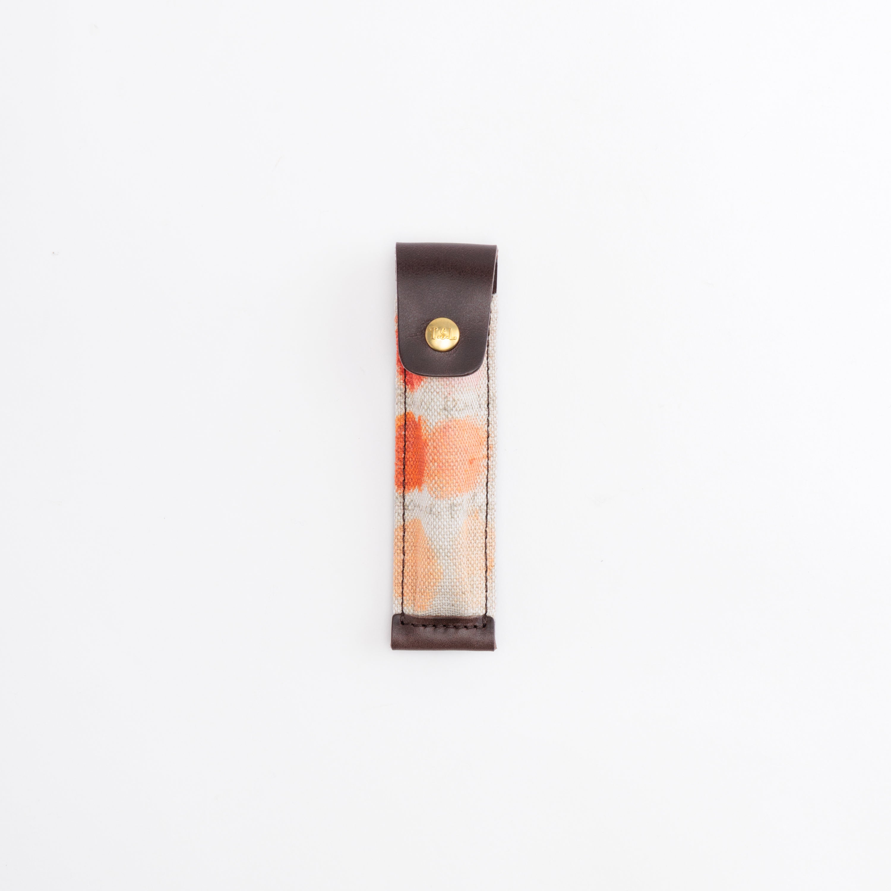 ボディにはJOHN DERIANデザインの生地を使用、裏のクリップには万年筆のイラストをエッチングで入れました。