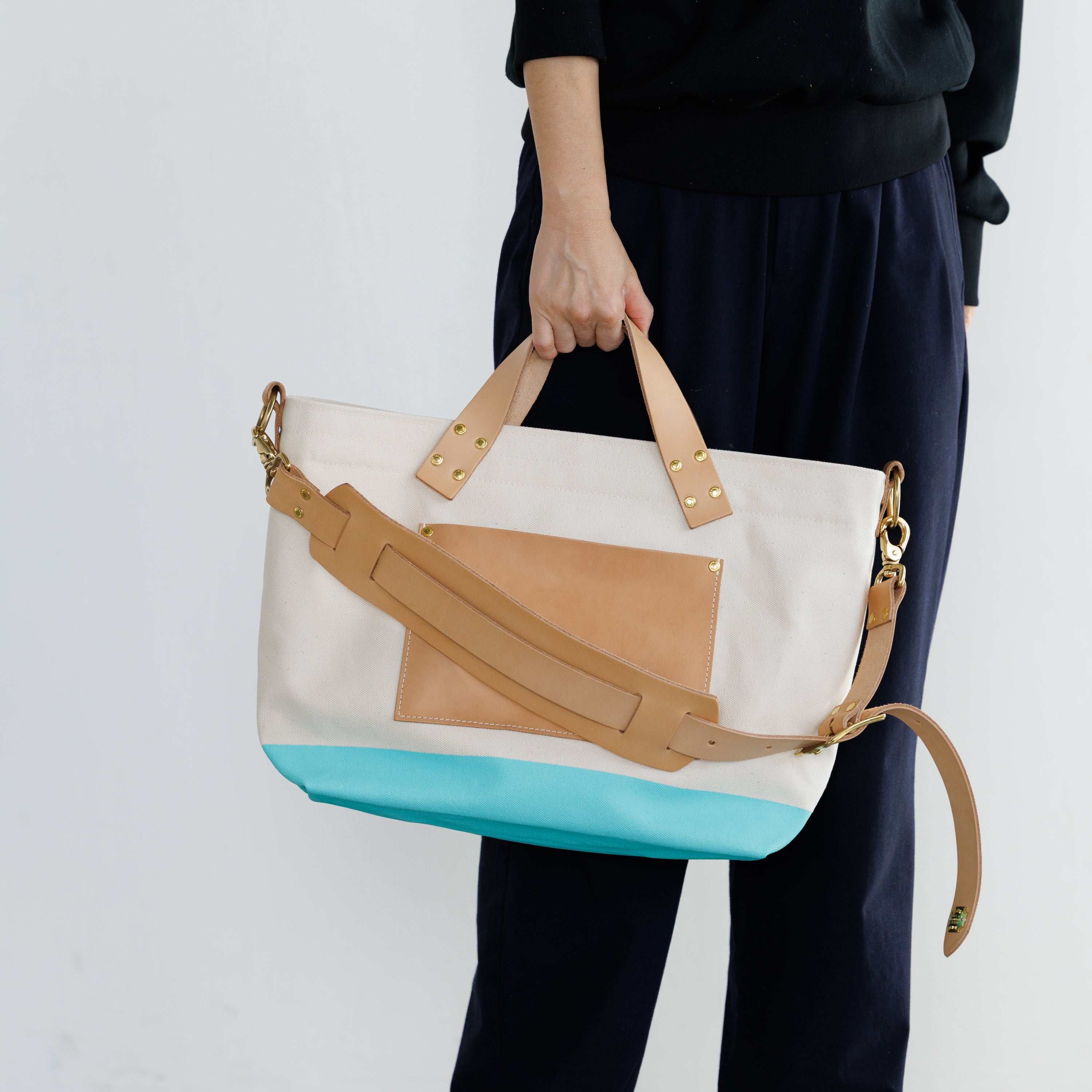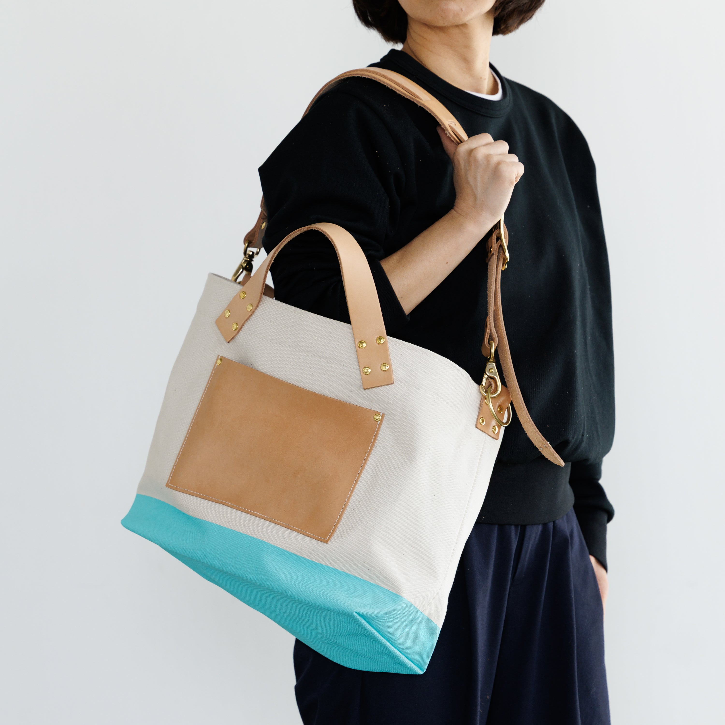 シャトル織機で一日2反しか織ることのできない倉敷産帆布や、東京下町の鋳物工場で作られた真鍮金具、そして、ミモザの樹皮から抽出されたタンニンでなめされた国産のヌメ革。