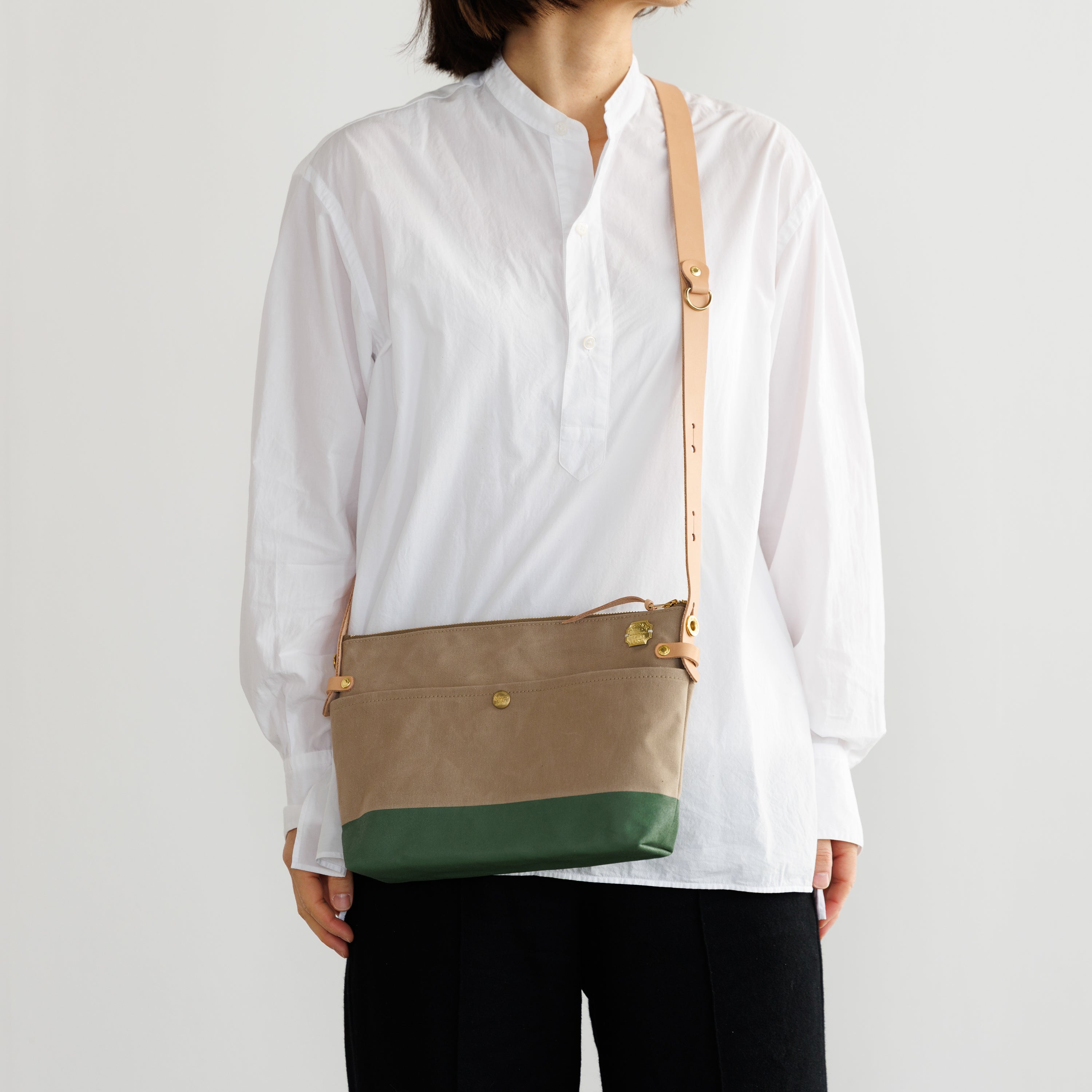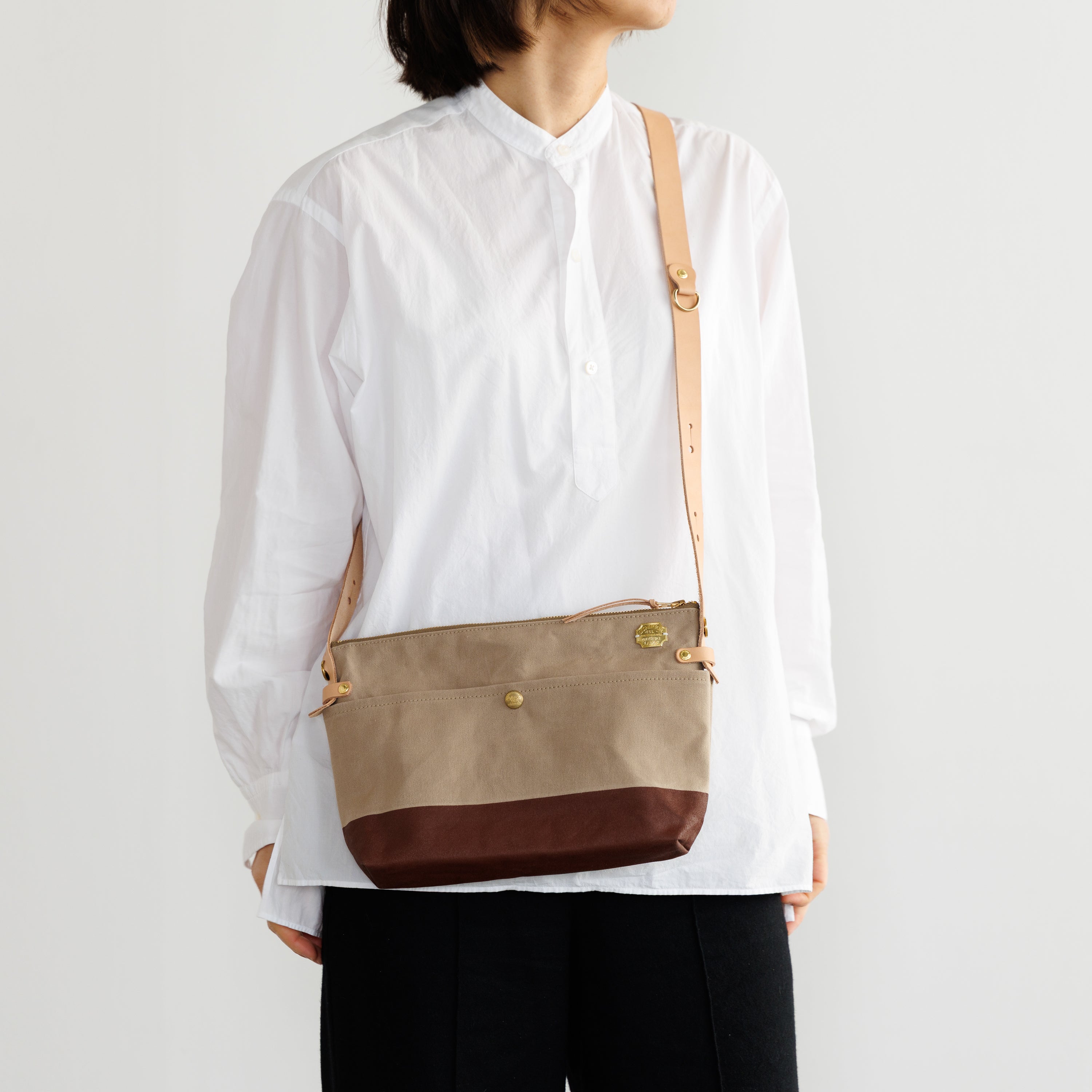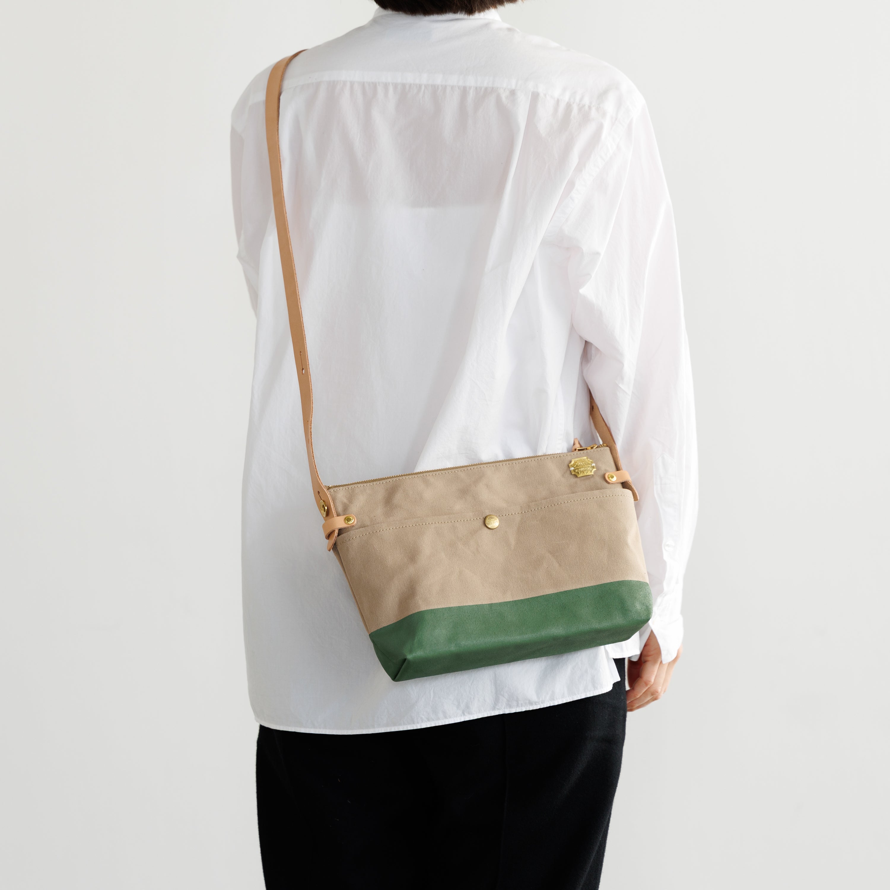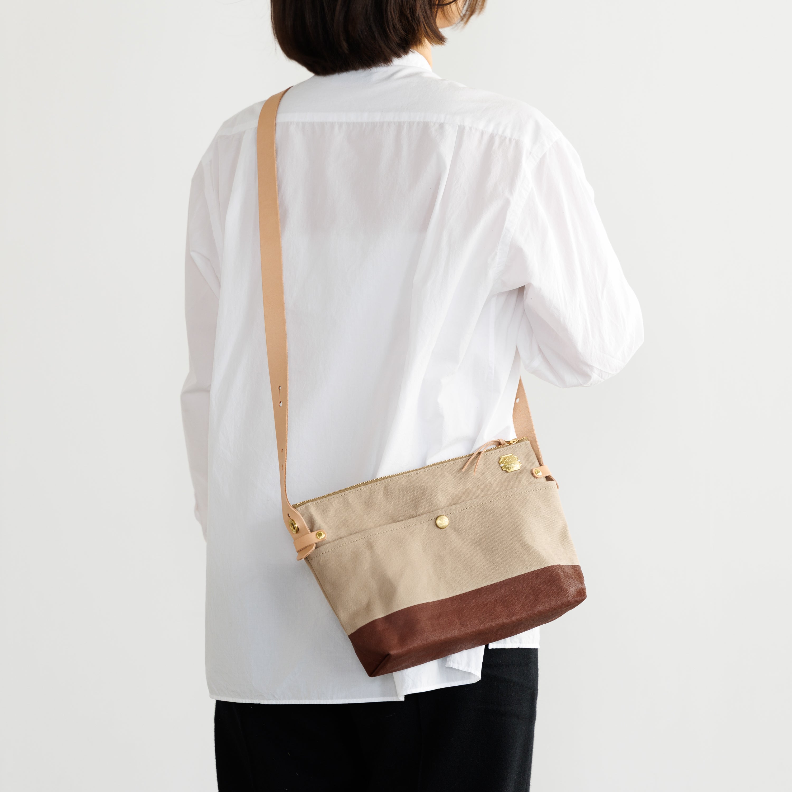 T.S.Lのショップ「T.S.L Kurashiki」でも人気の leather bottom shoulder bag L をアレンジした、ショップ限定デザインのショルダーバッグです。