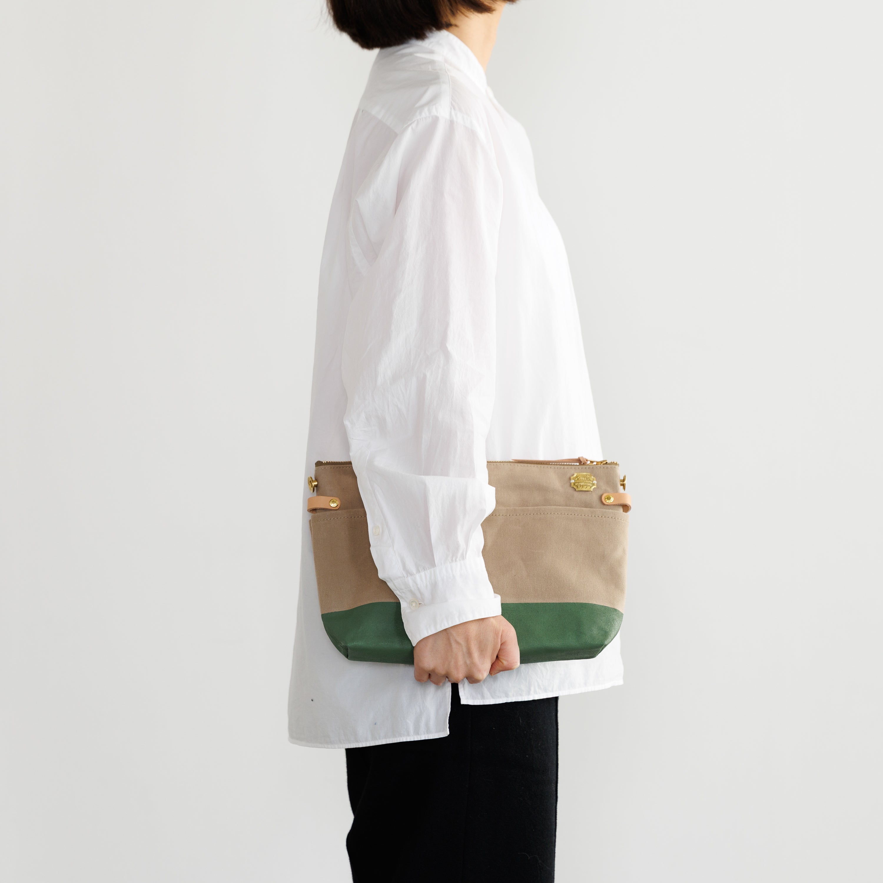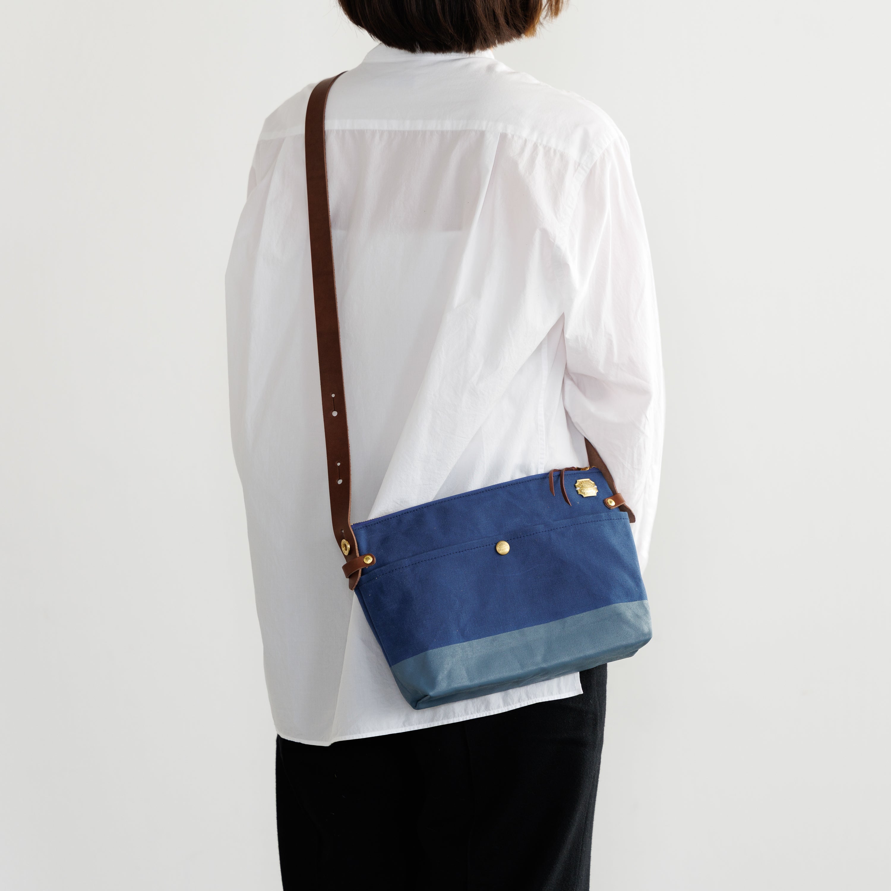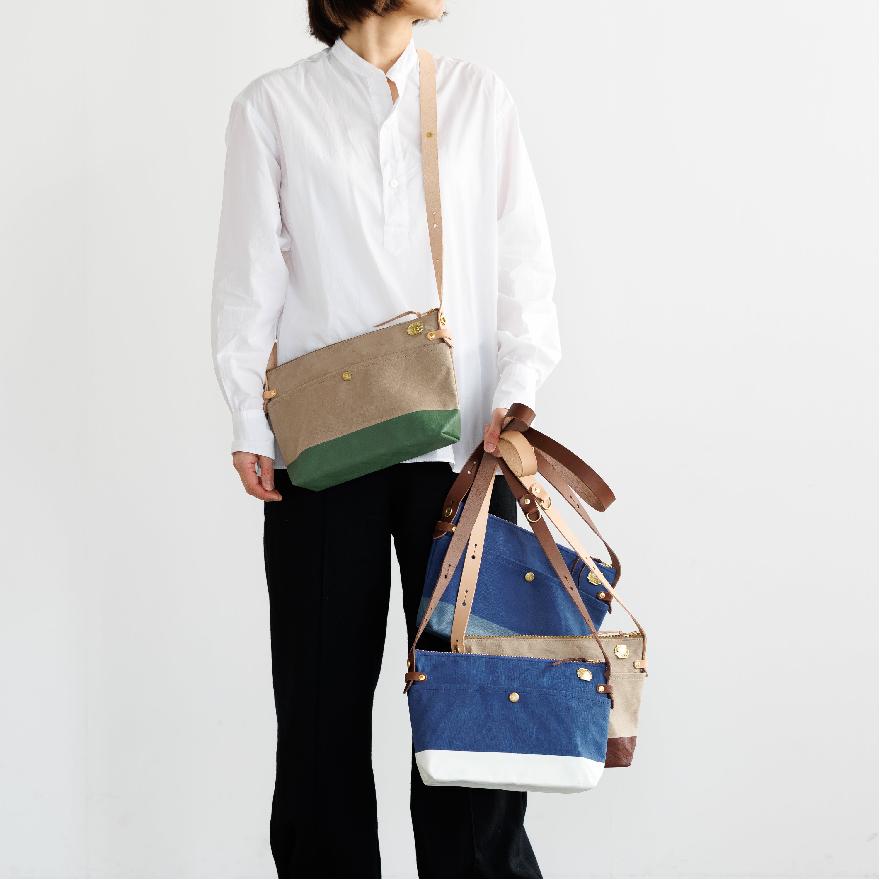 T.S.Lのショップ「T.S.L Kurashiki」でも人気の leather bottom shoulder bag L をアレンジした、ショップ限定デザインのショルダーバッグです。