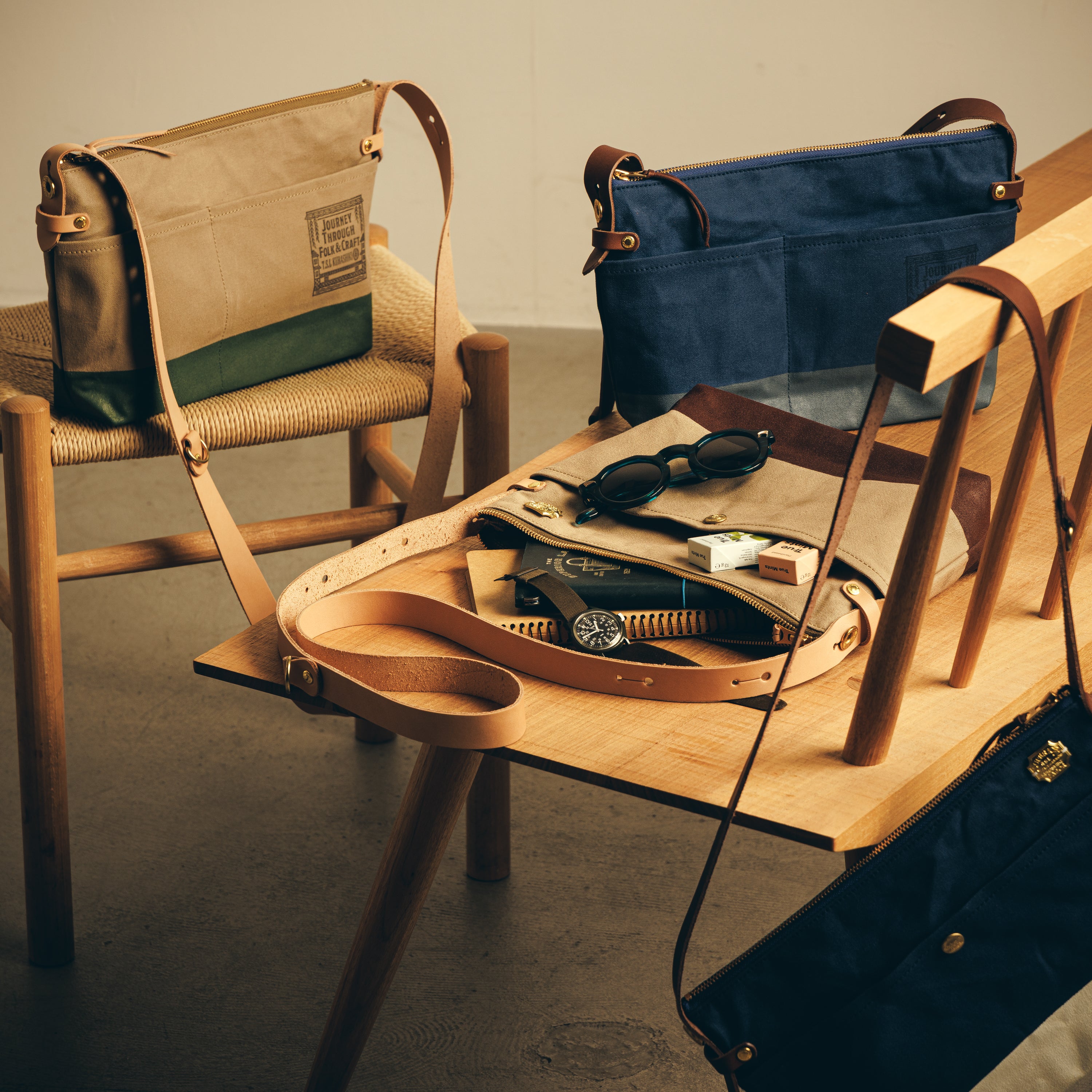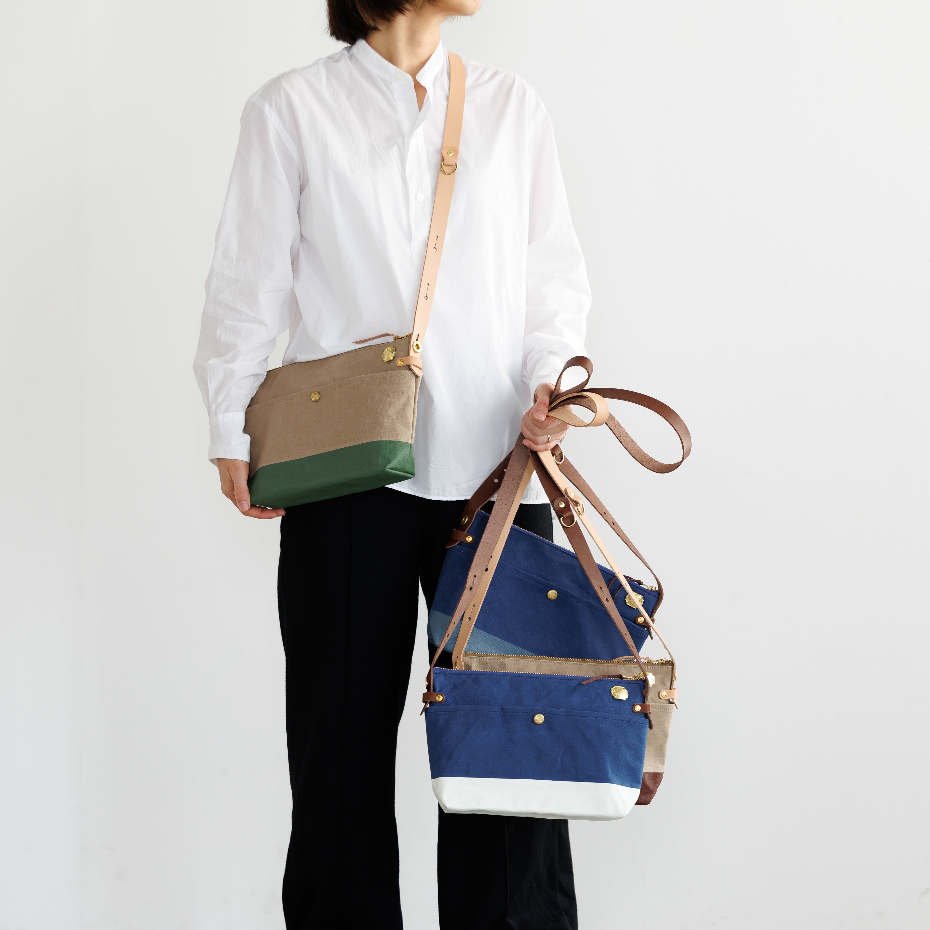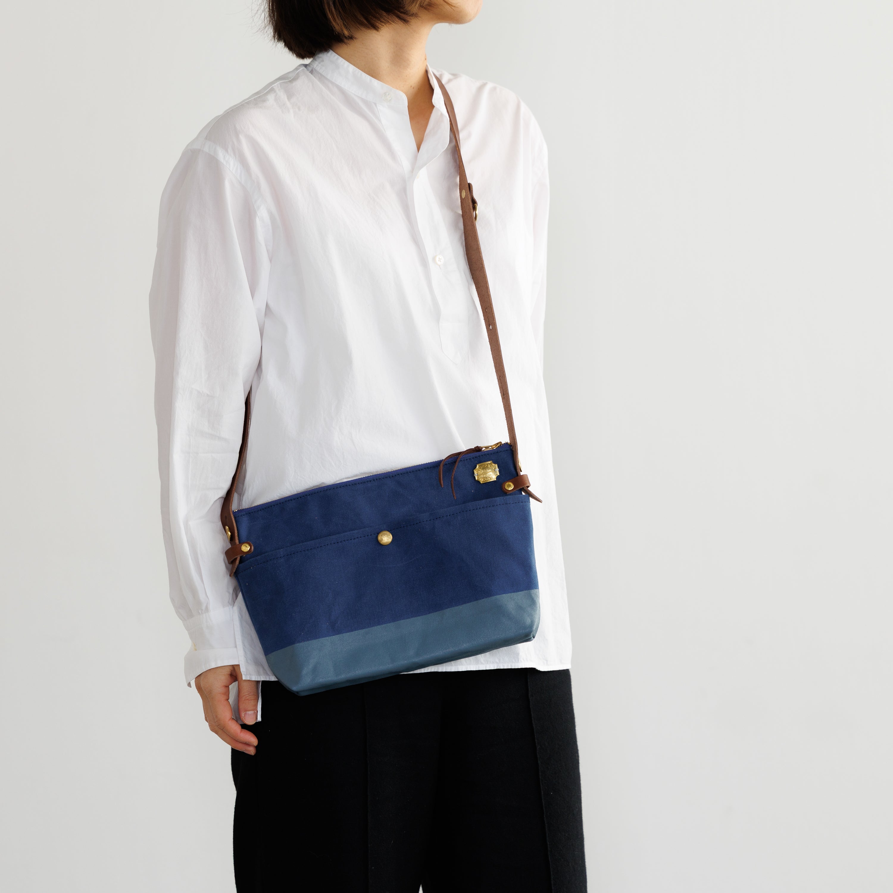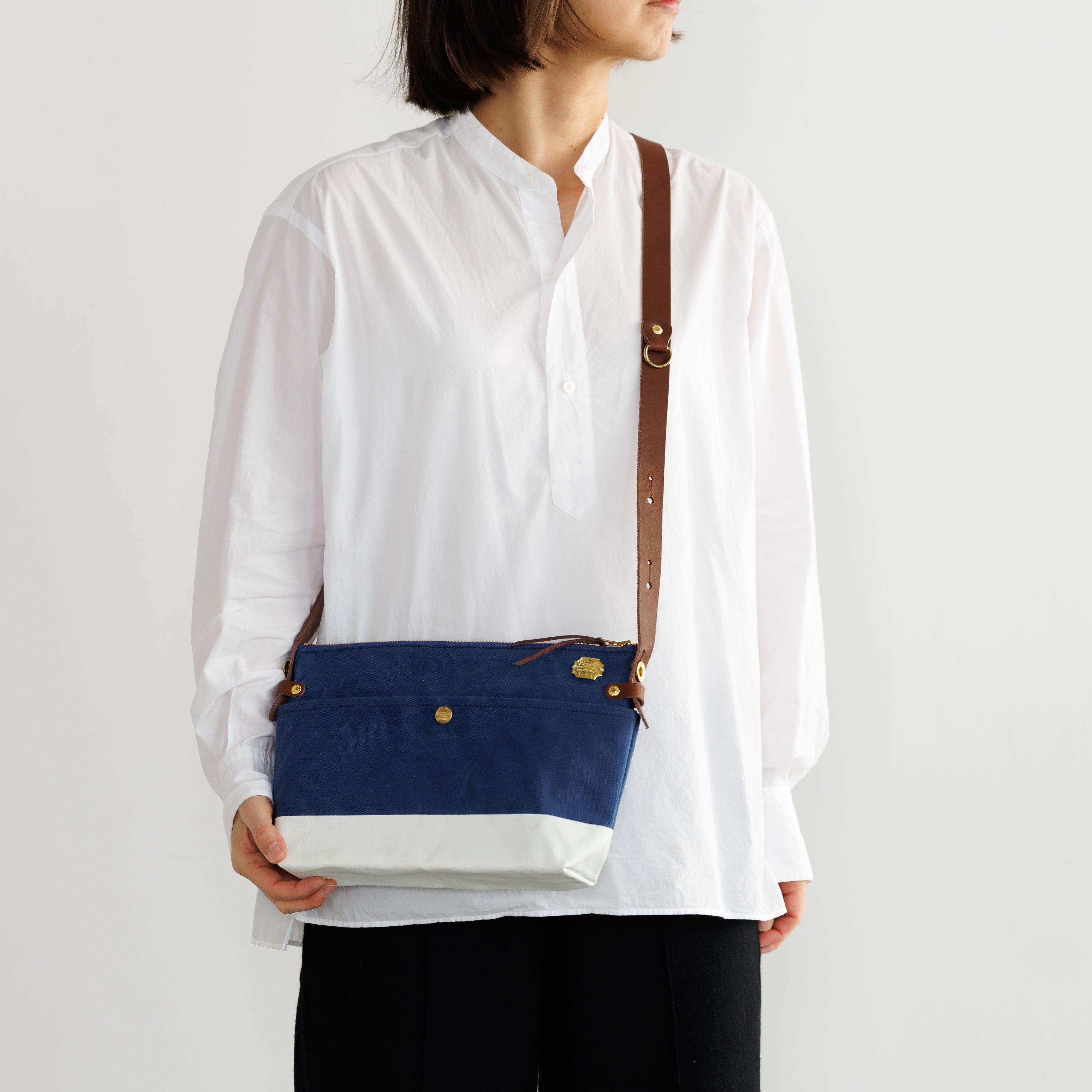 T.S.Lのショップ「T.S.L Kurashiki」でも人気の leather bottom shoulder bag L をアレンジした、ショップ限定デザインのショルダーバッグです。