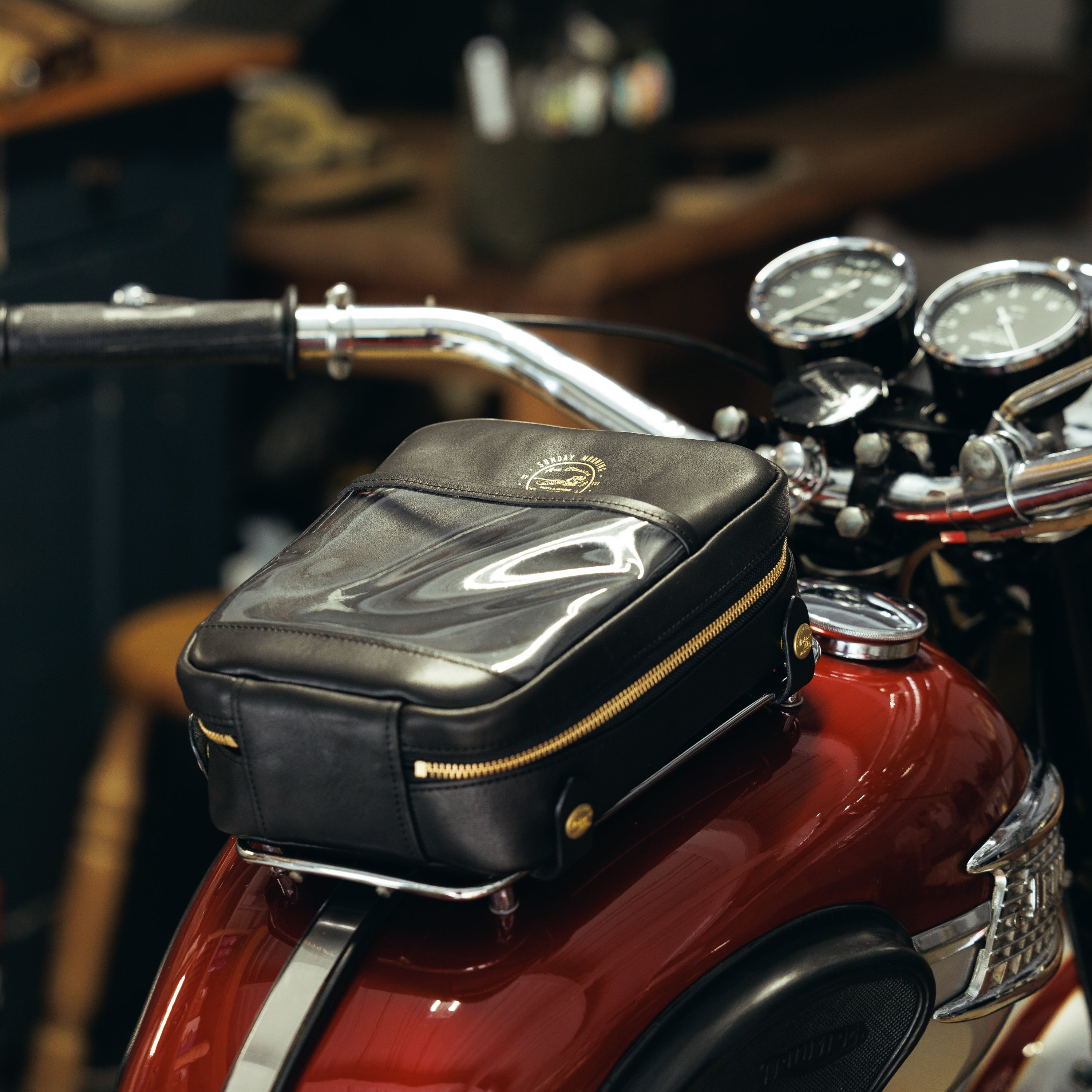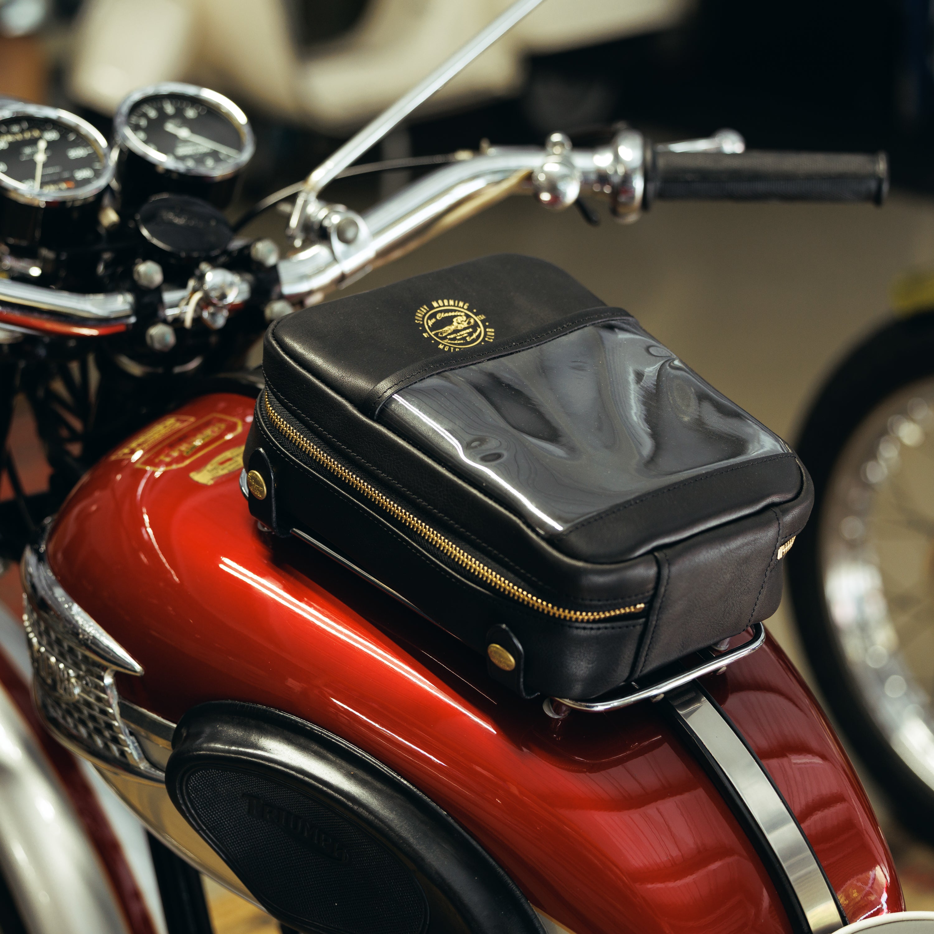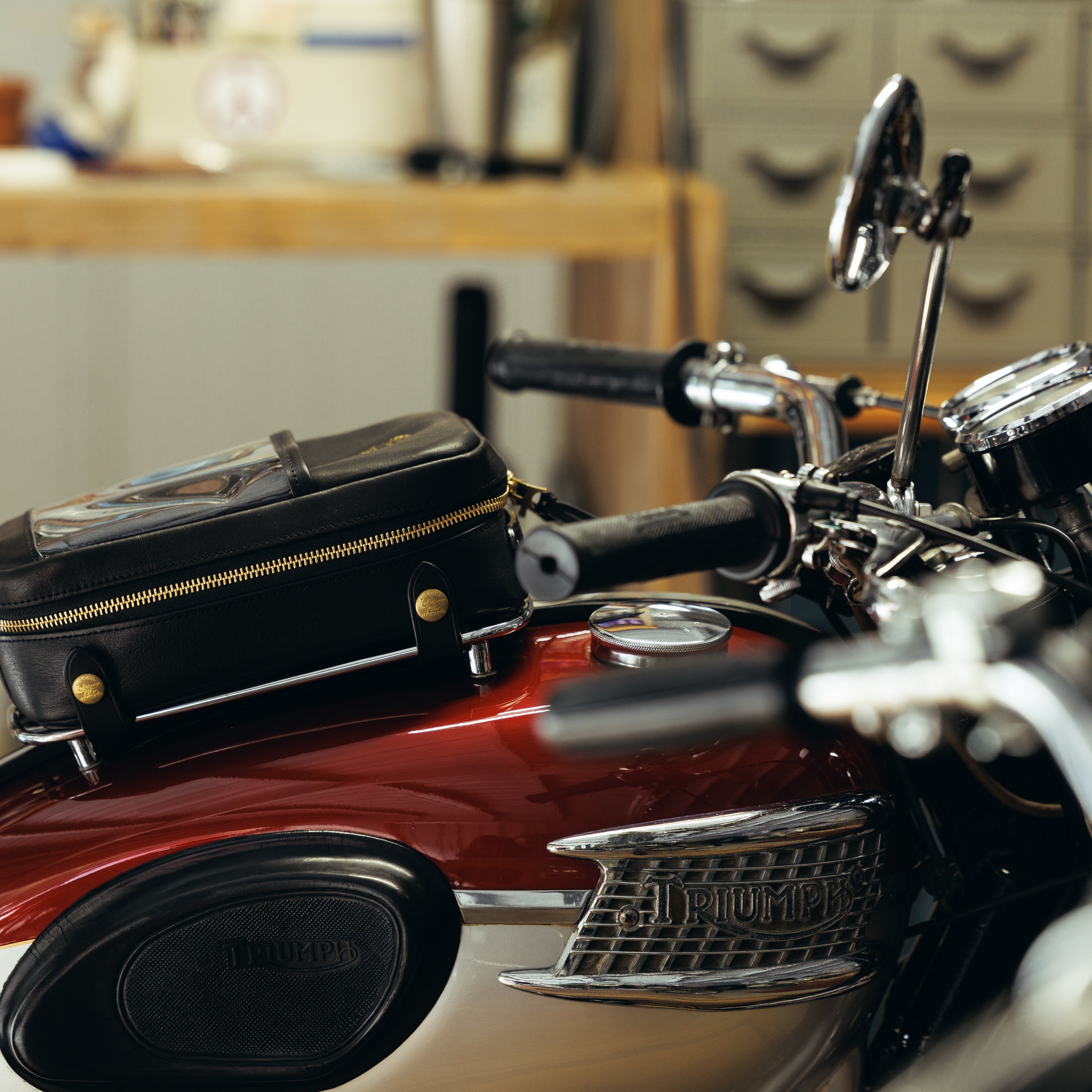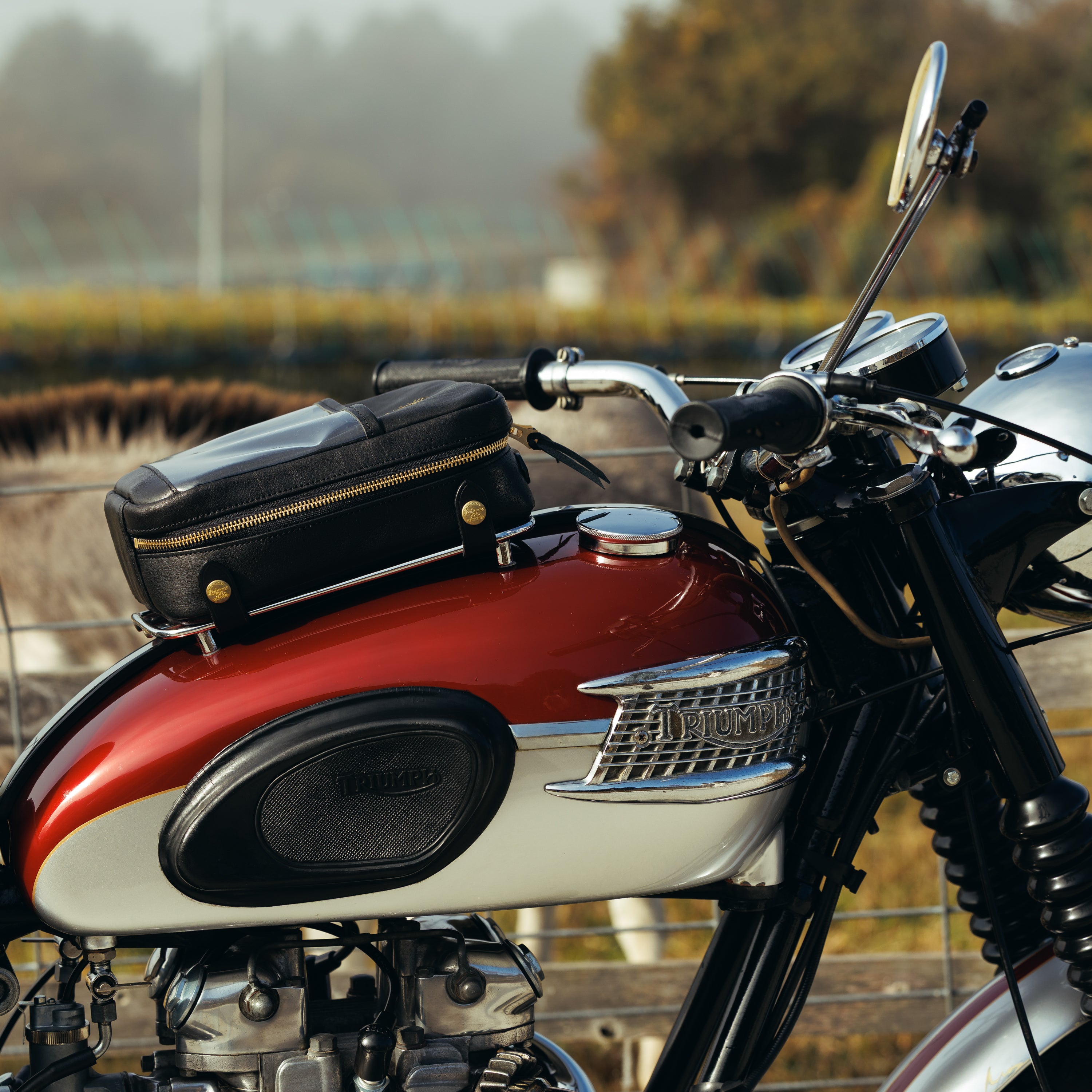 1940年代後半から60年代中頃のパーセルグリッド(タンクキャリア)が装備されたトライアンフ用のタンクバッグ。