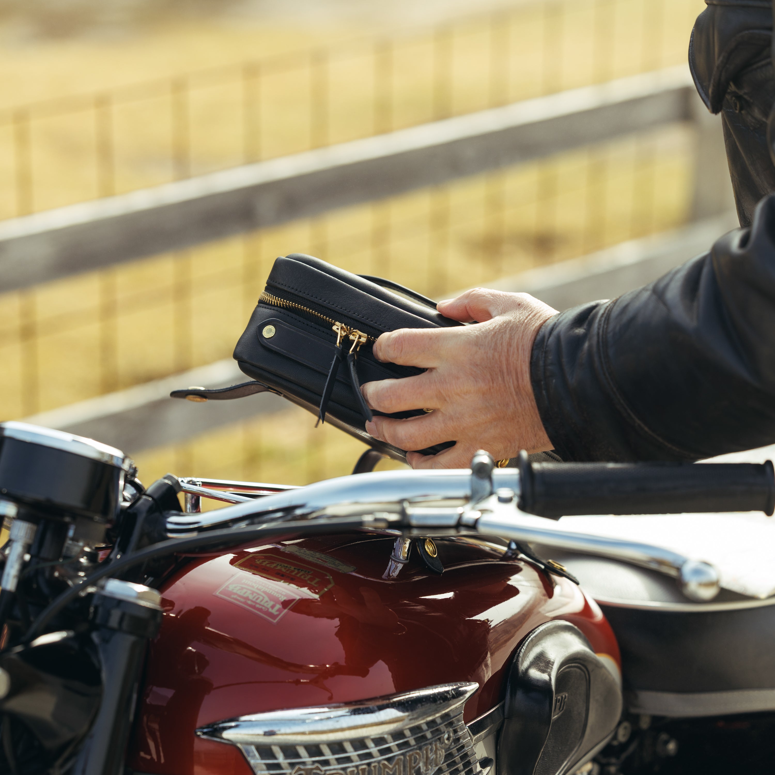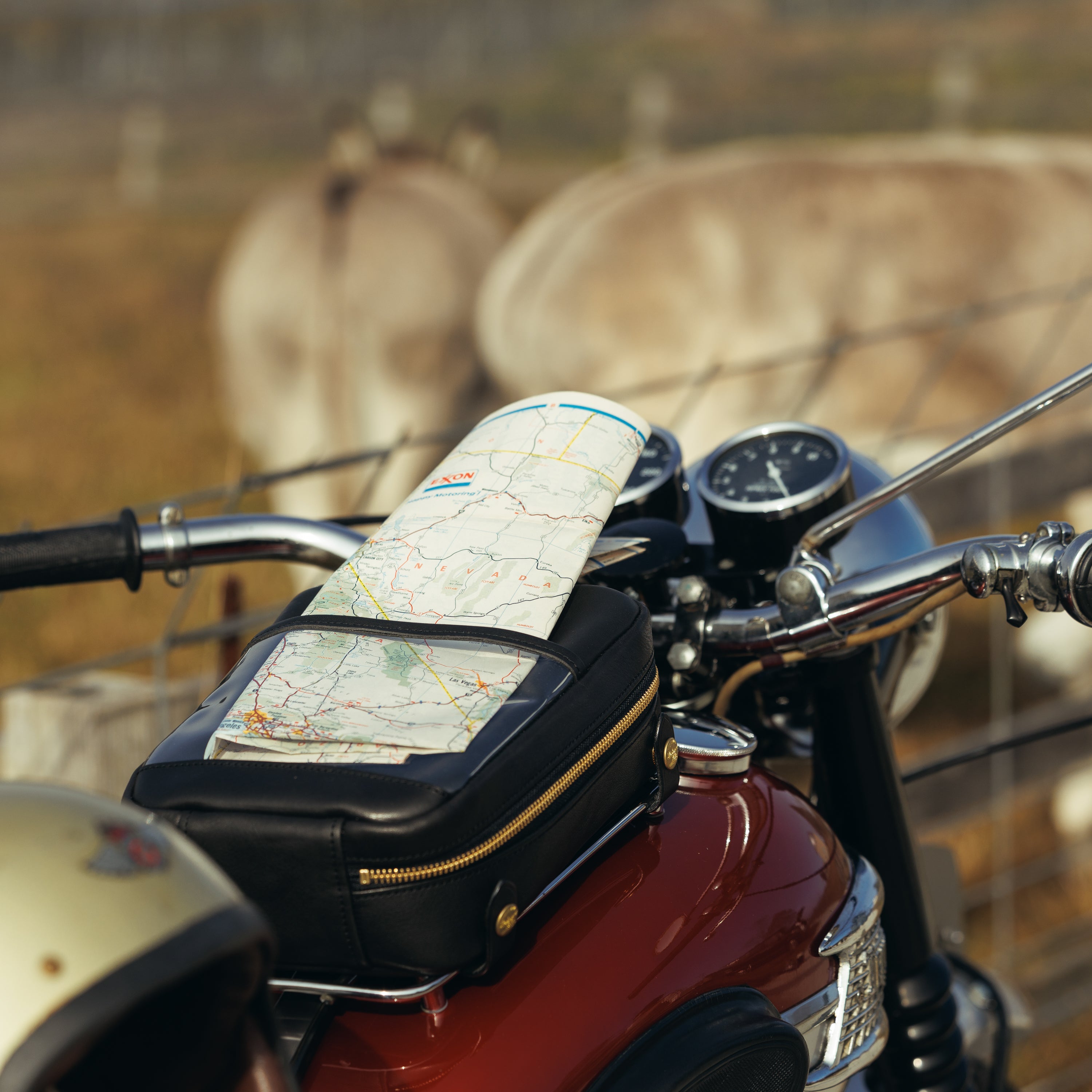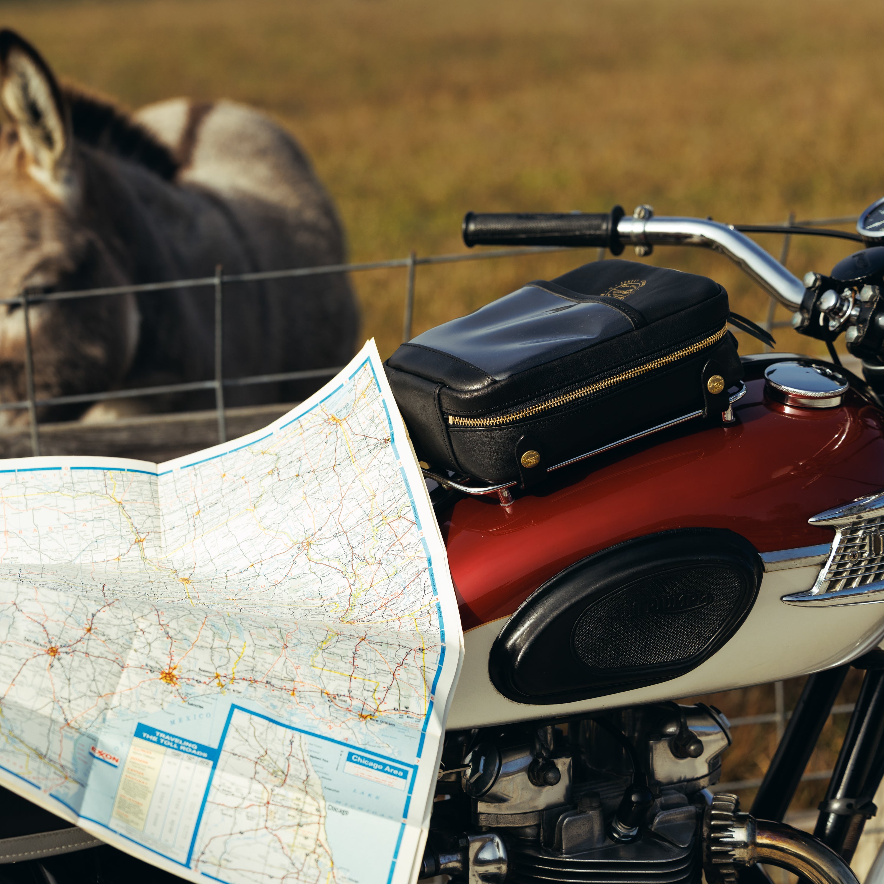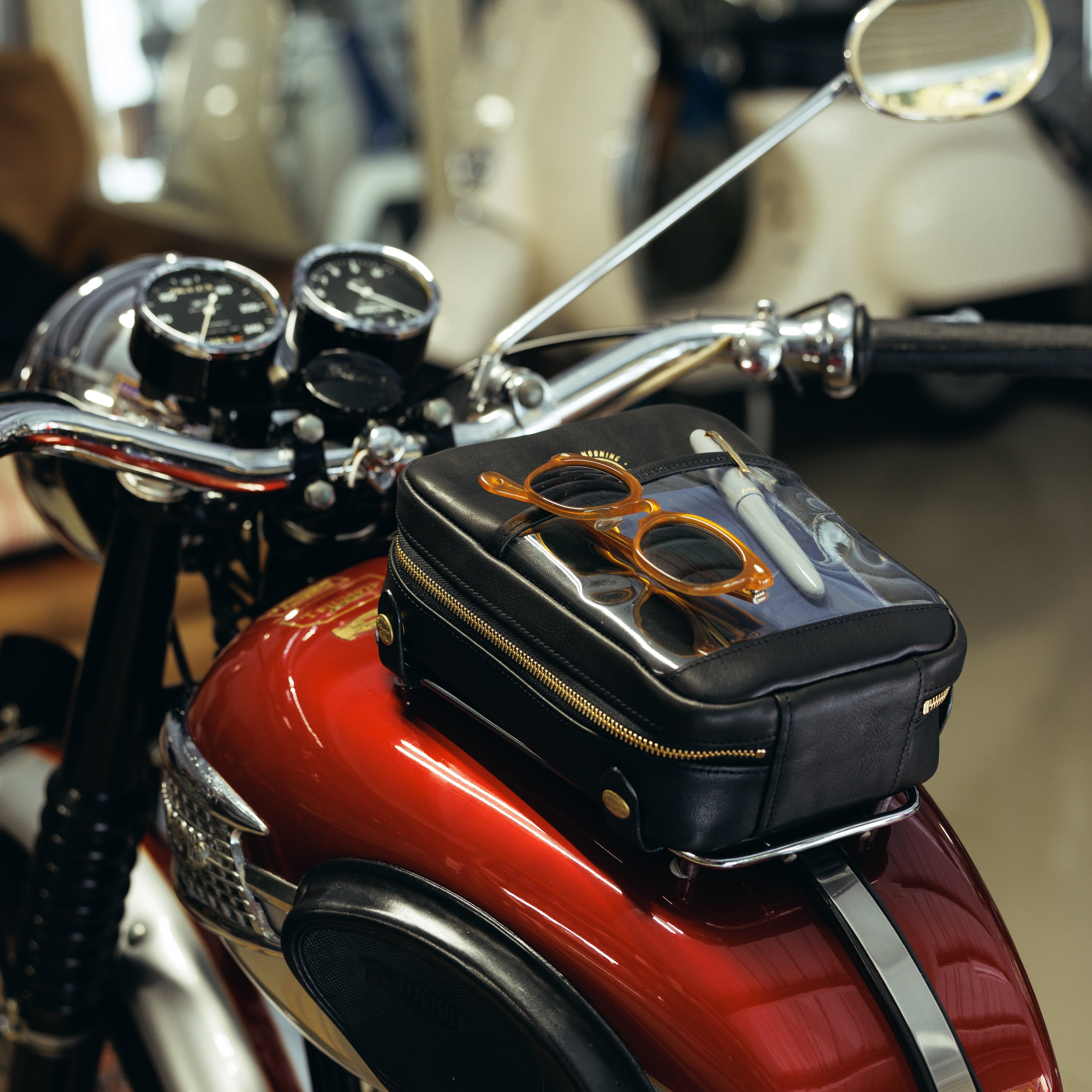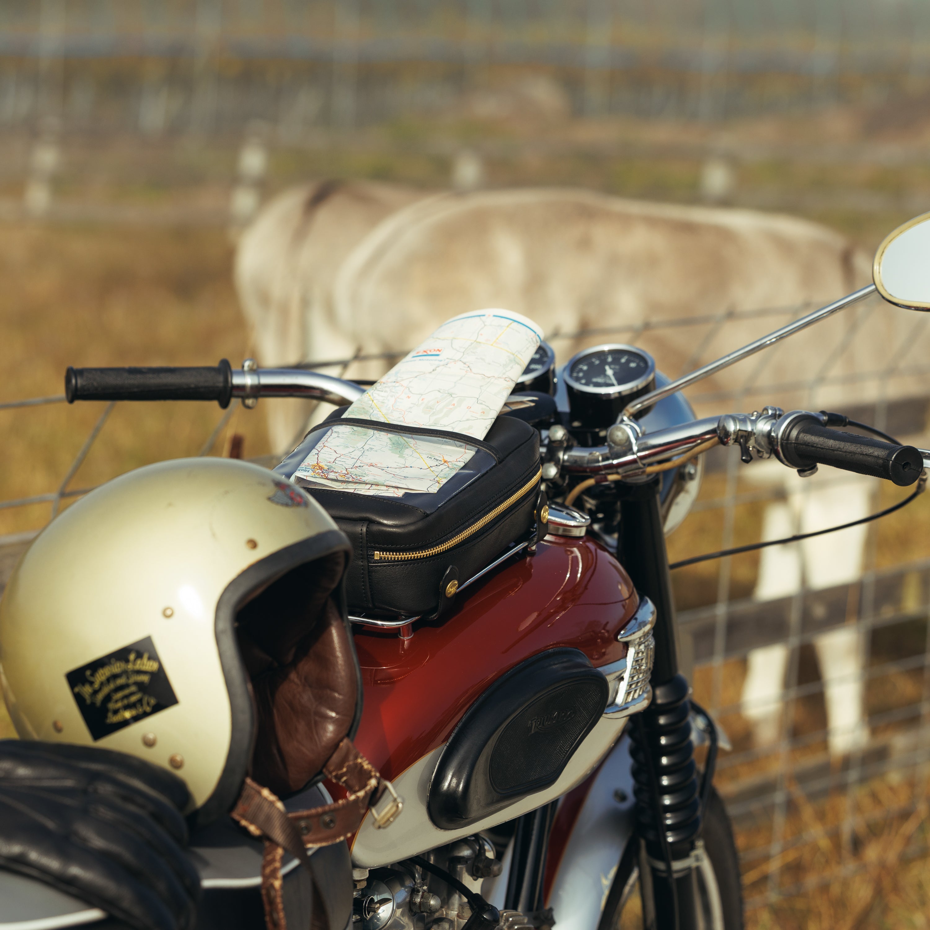 1940年代後半から60年代中頃のパーセルグリッド(タンクキャリア)が装備されたトライアンフ用のタンクバッグ。