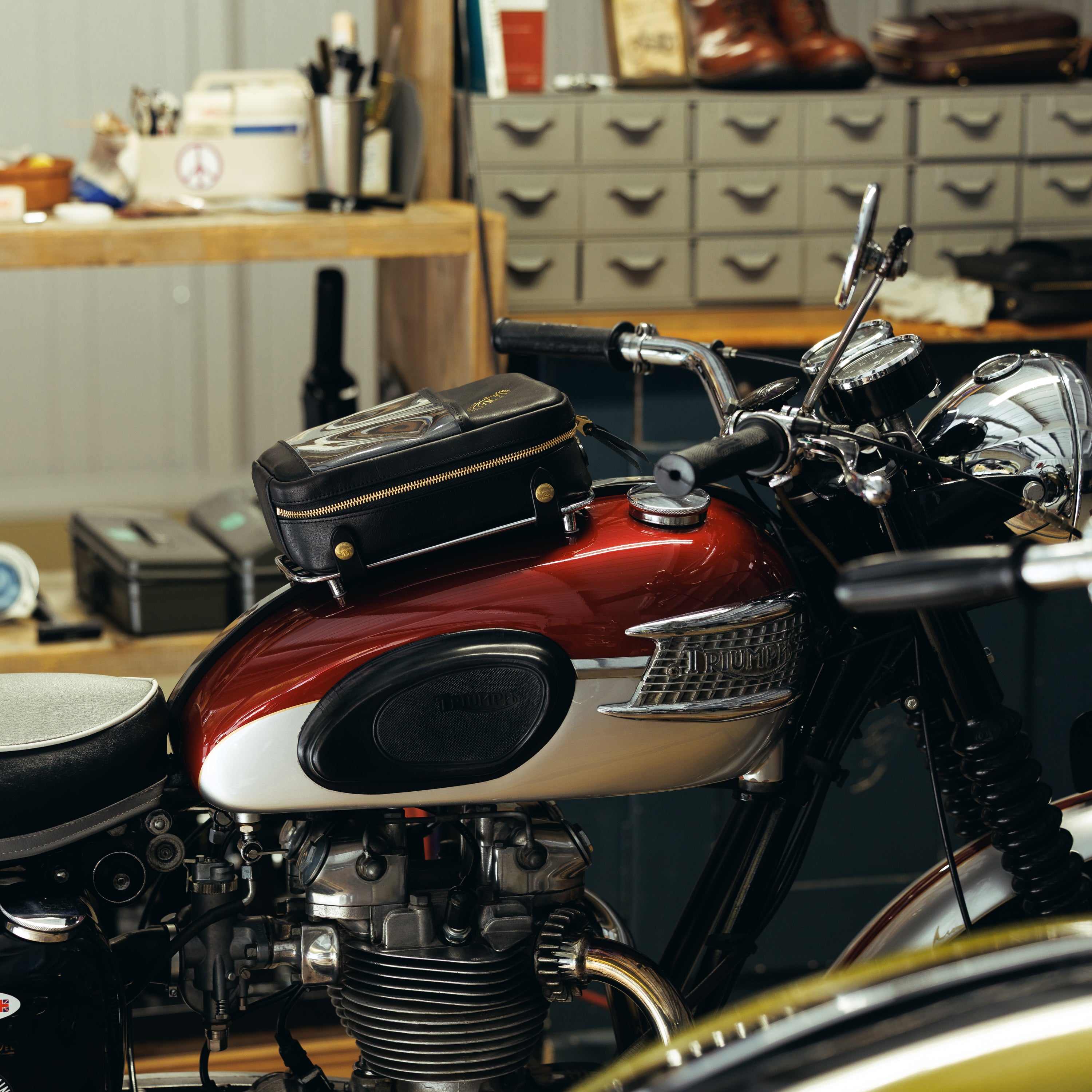 バッグの中身を保護すると同時に、工具などによってタンクを傷つけにくい構造にしています。