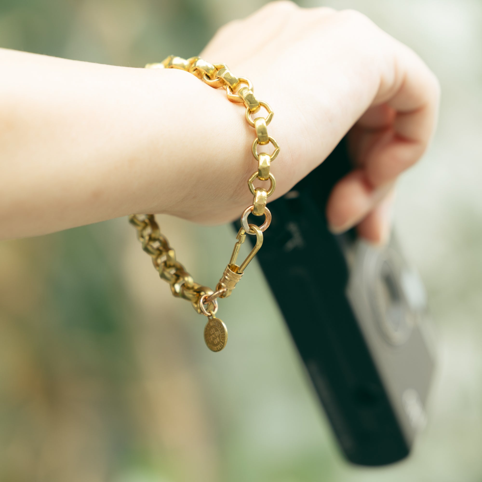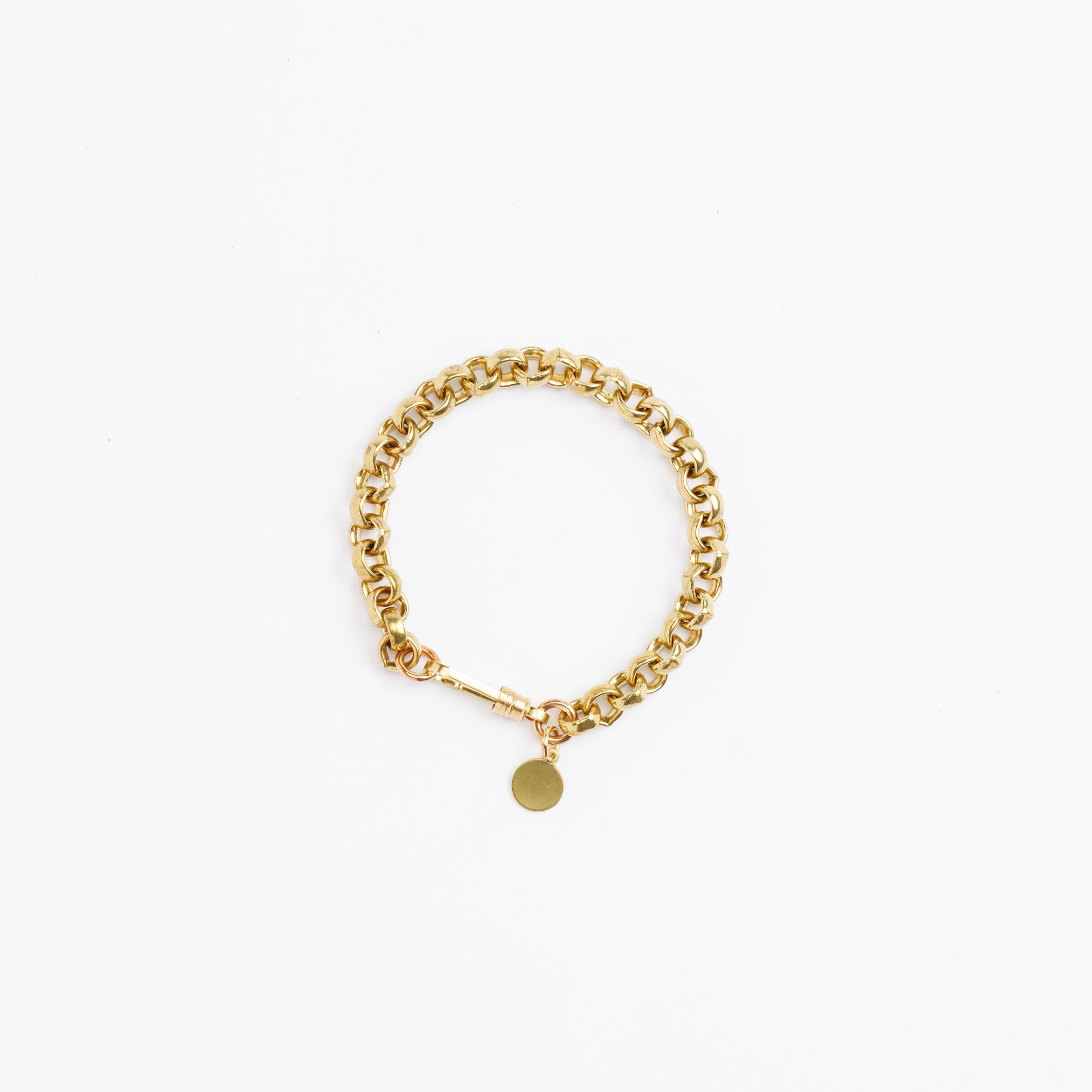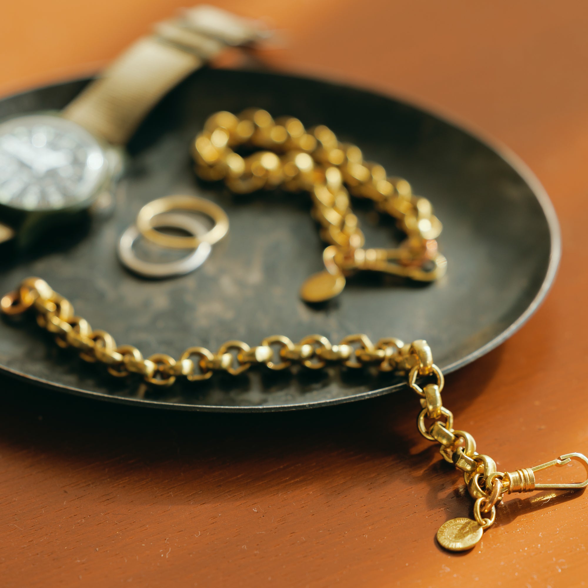 小さなメダルをあしらったブラスチェーンブレスレット。