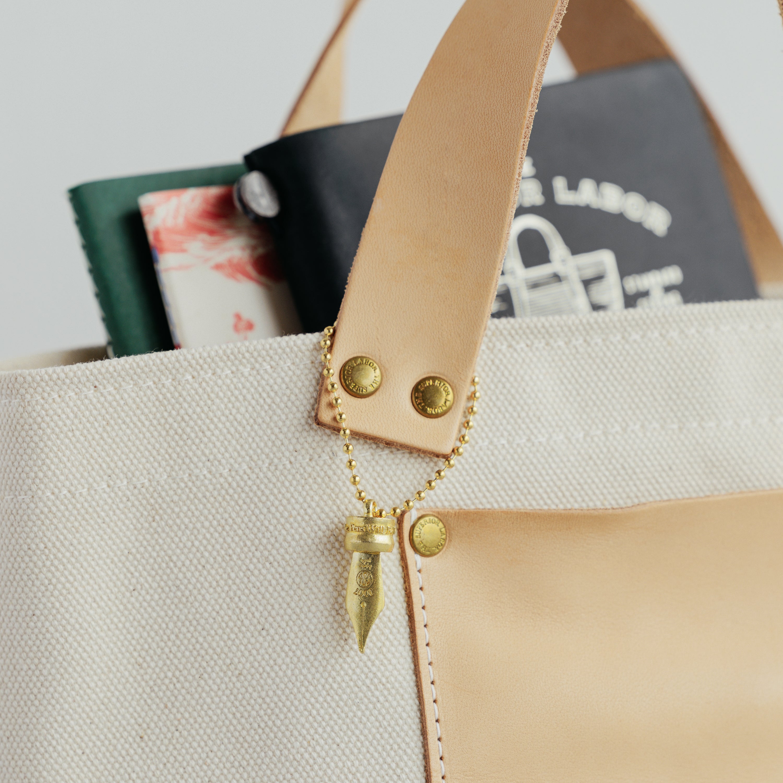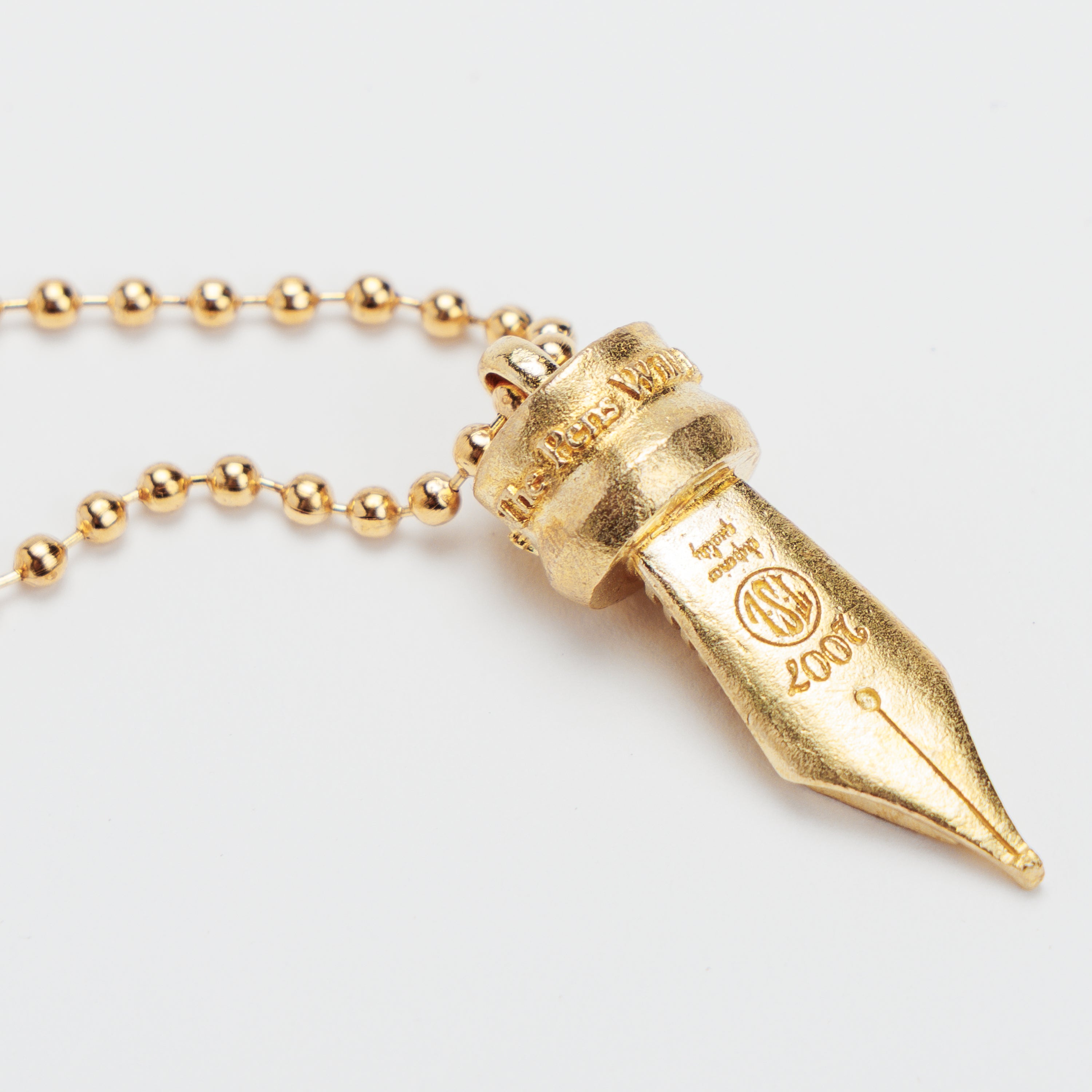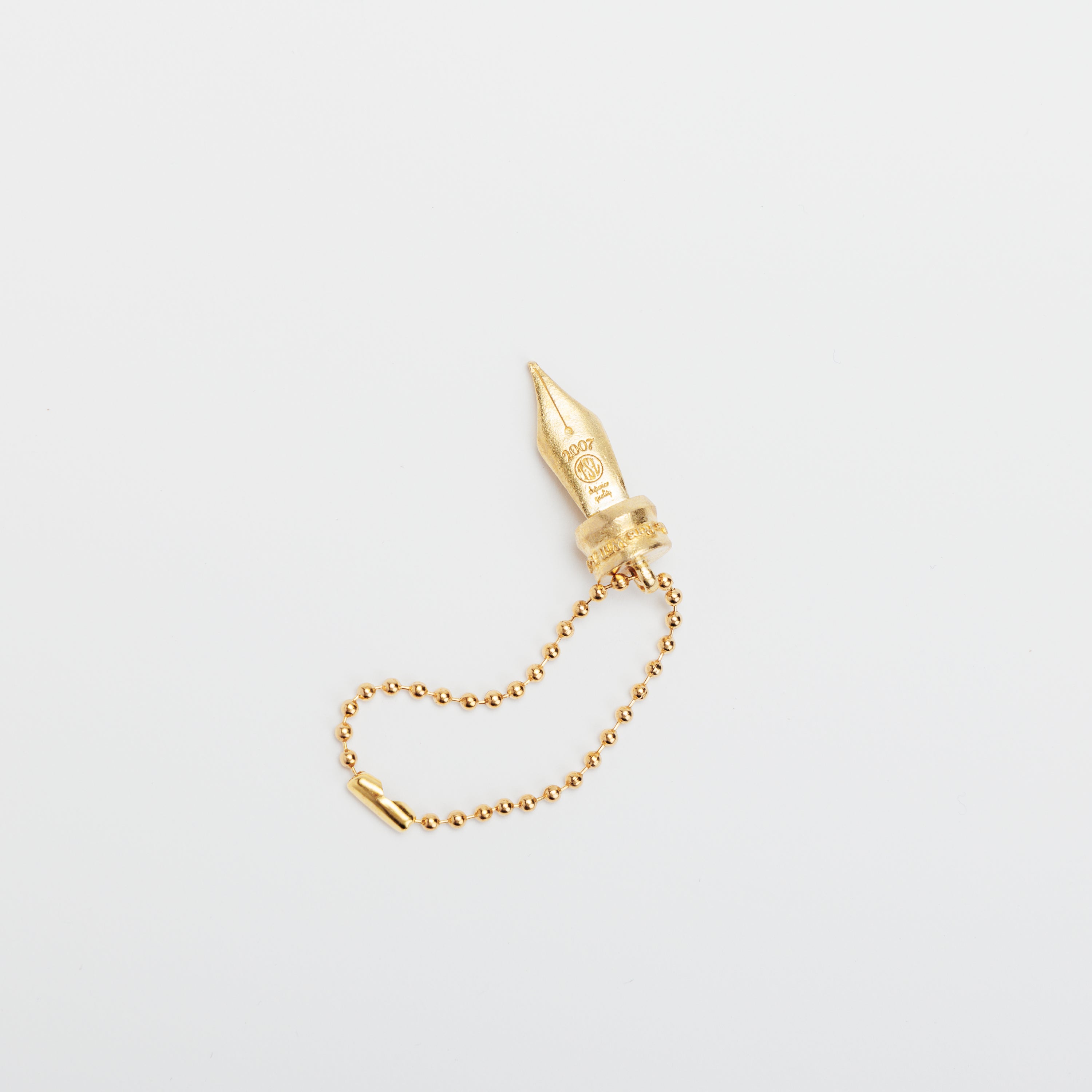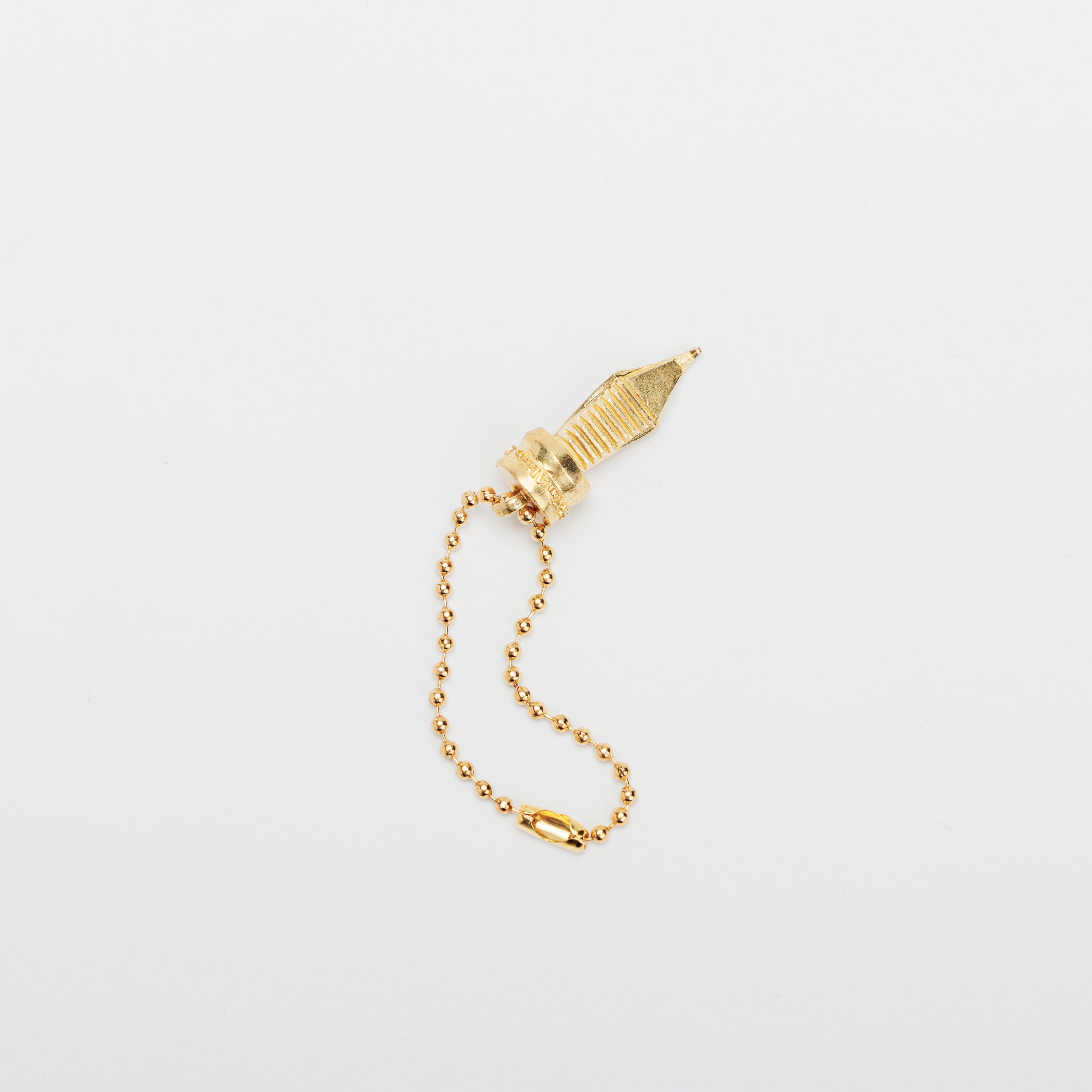万年筆のペン先(ニブ)をかたどった、真鍮製のチャーム。