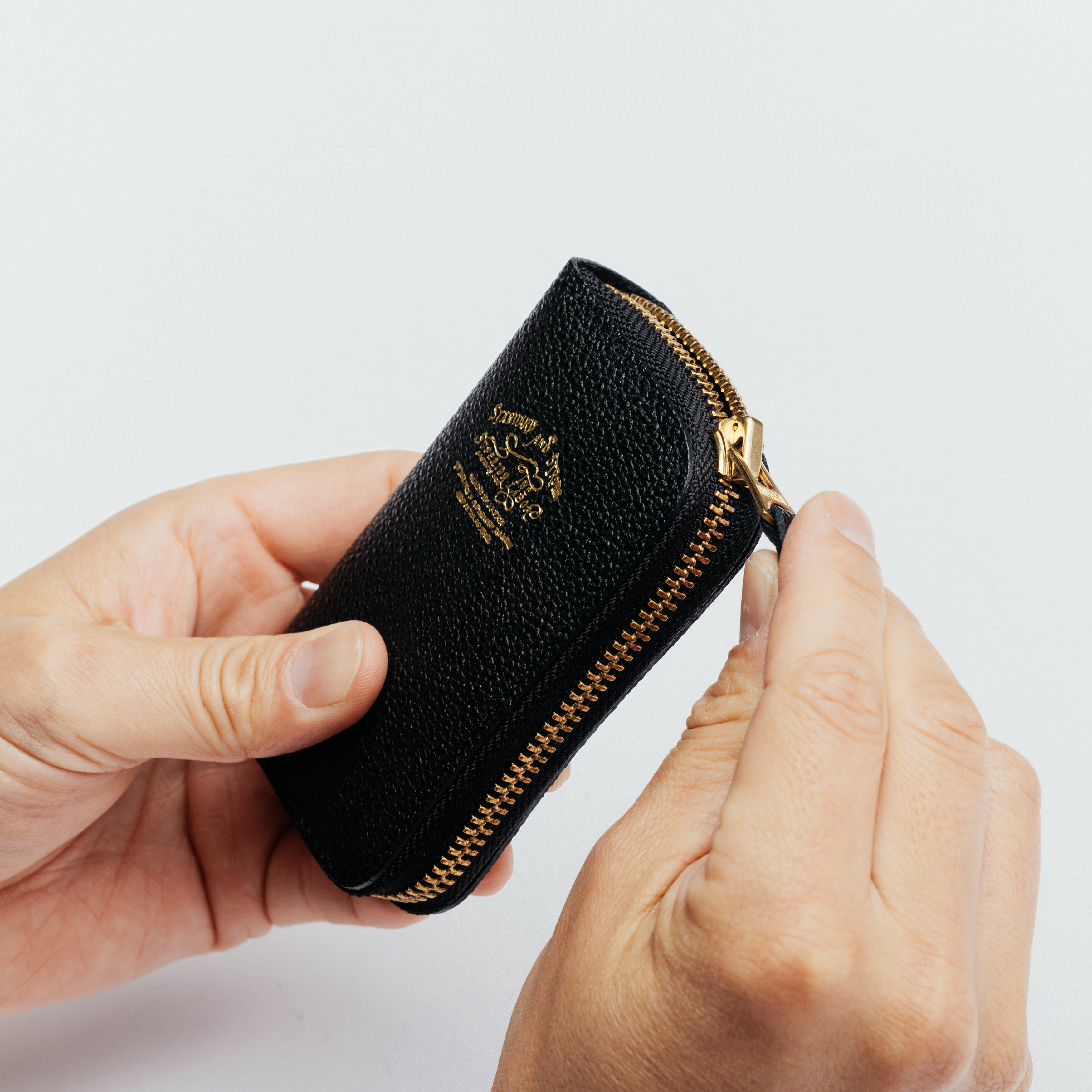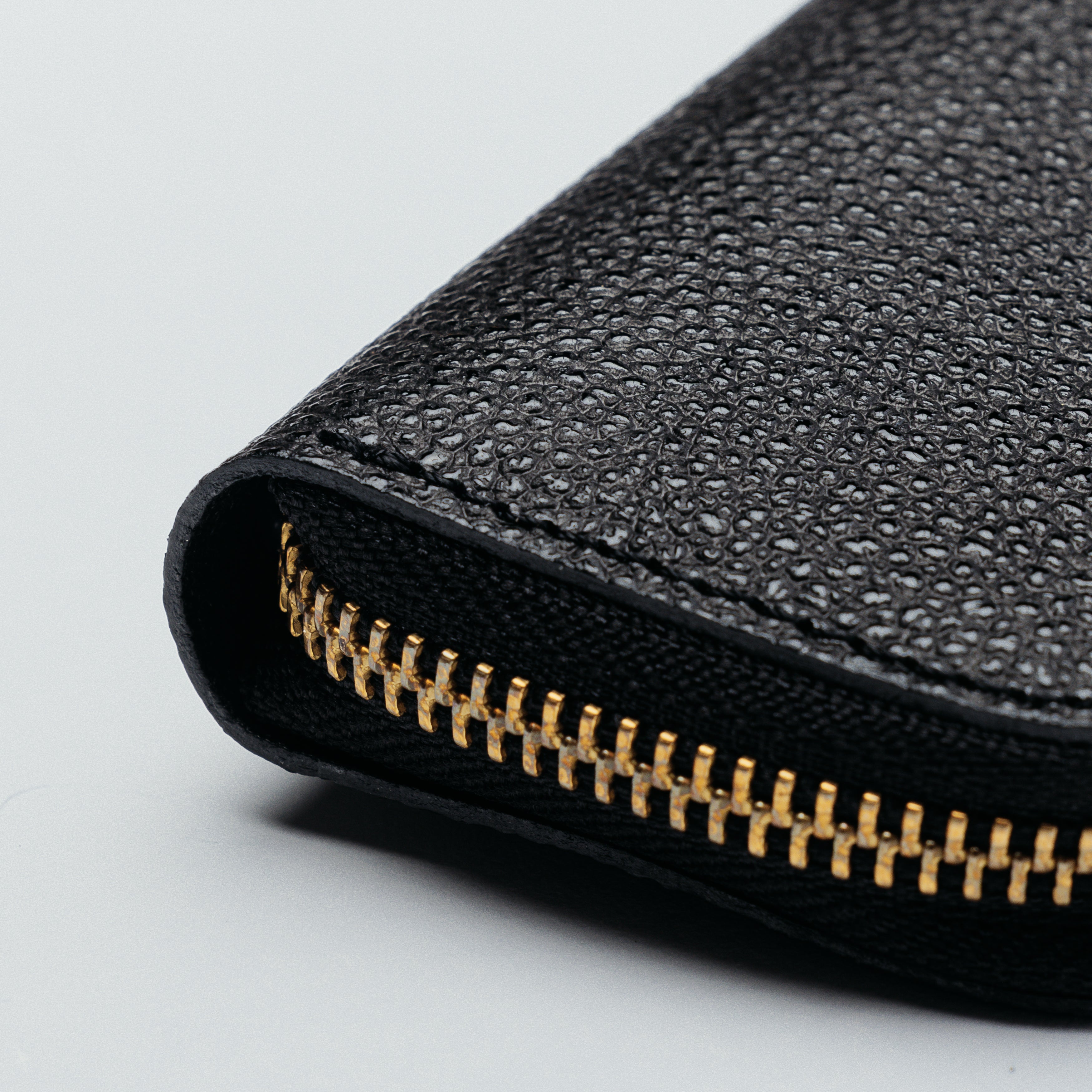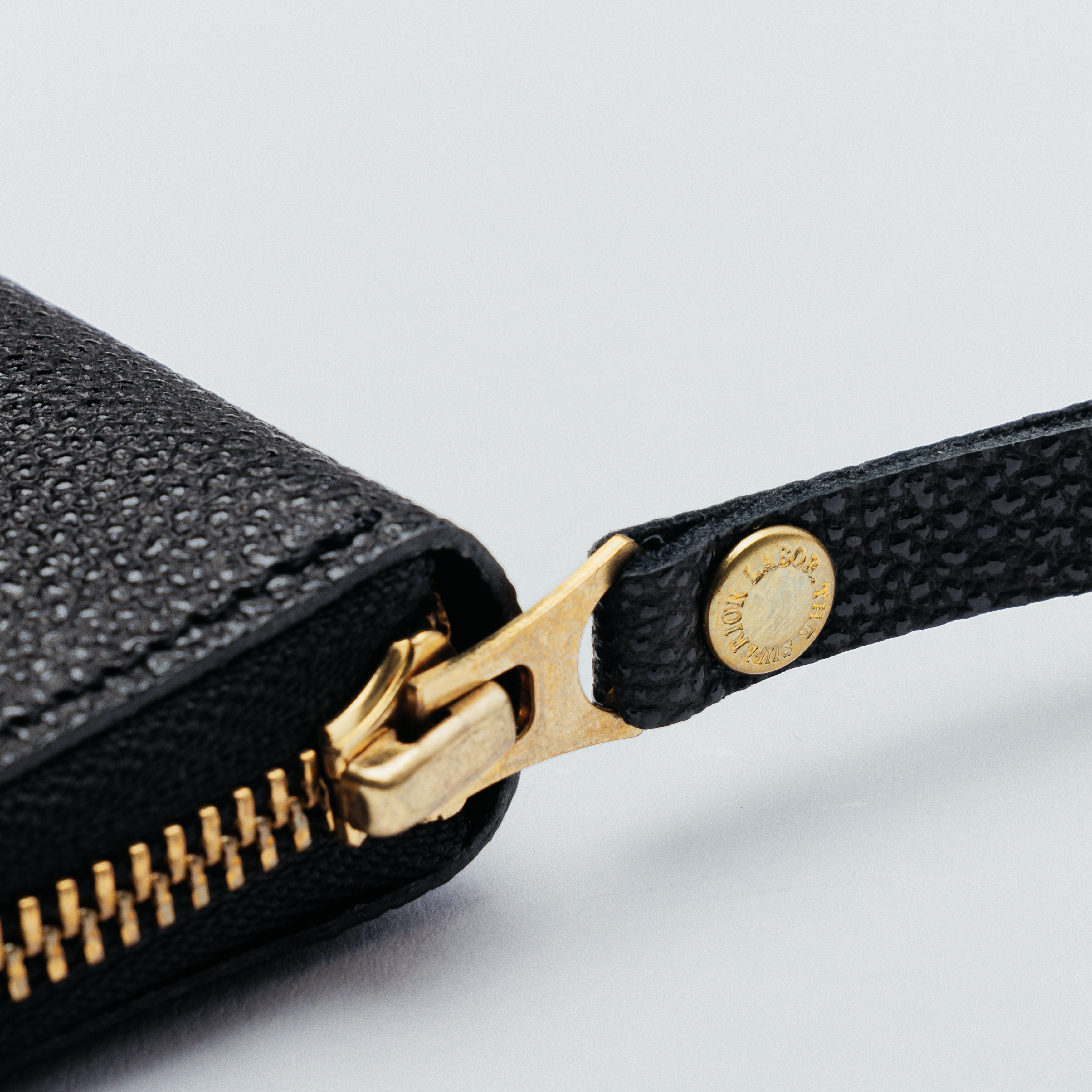 国産黒毛和牛の皮を使用し、伝統的な白鞣しと漆塗りで仕上げた、革の黒ダイヤと称される日本の伝統技術が詰まった革。
