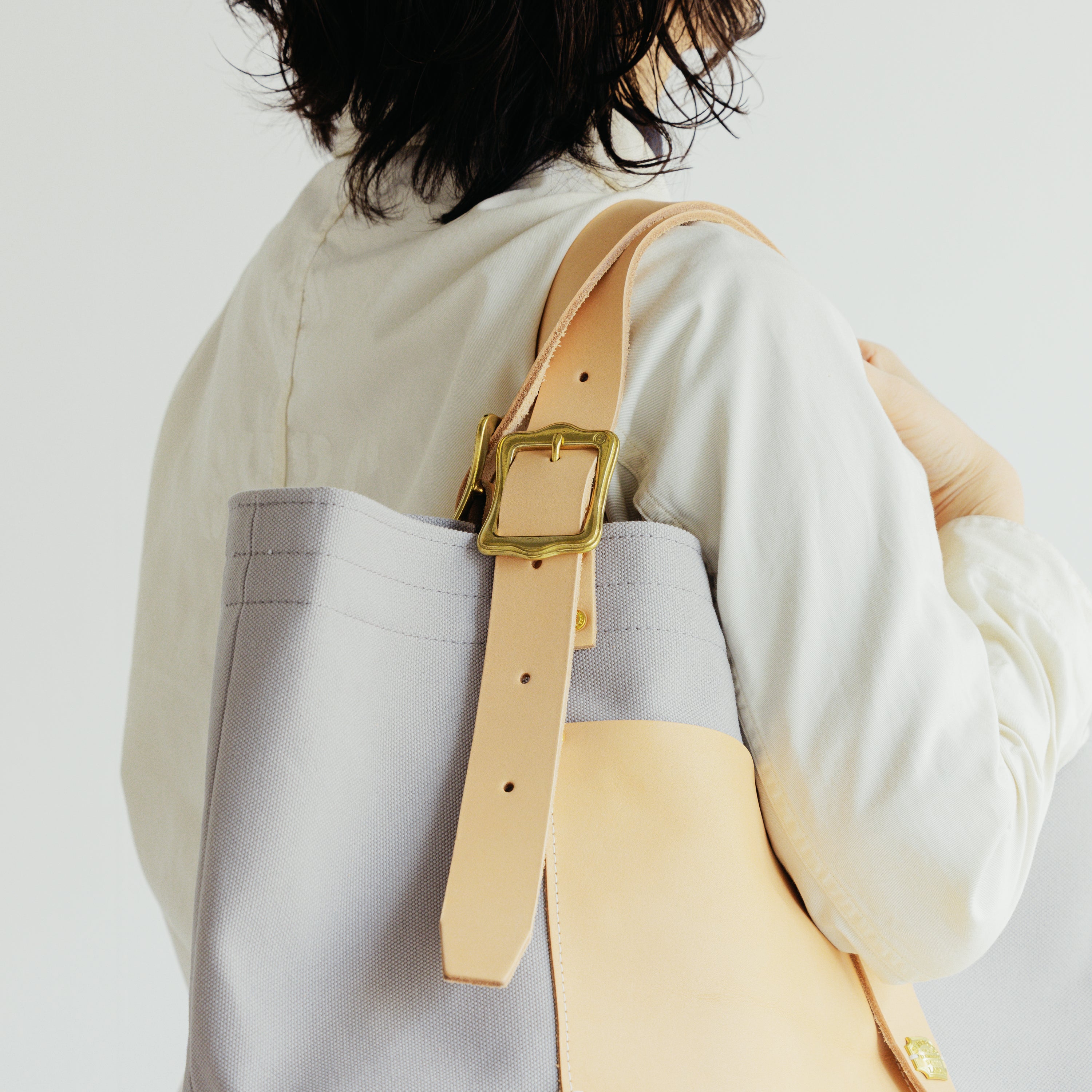 帆布は、国産の4号帆布を、金具は東京下町の鋳物工場から、革は国産のヌメ革をミモザの樹皮から抽出されたタンニンでなめしたものを使っています。
