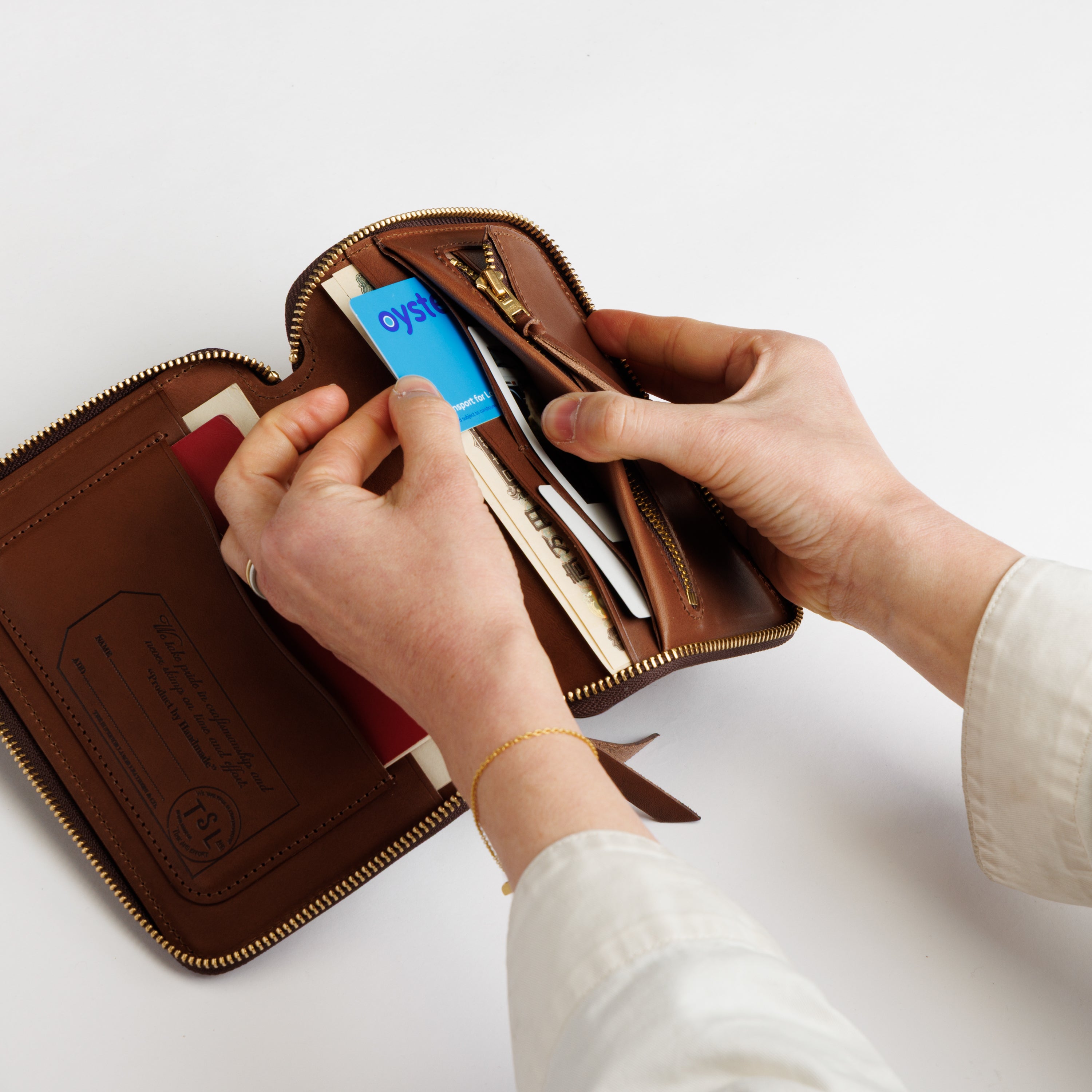 内装はカードやコインを細かく整理できるつくりでステーショナリーケース兼財布という使い方ができます。